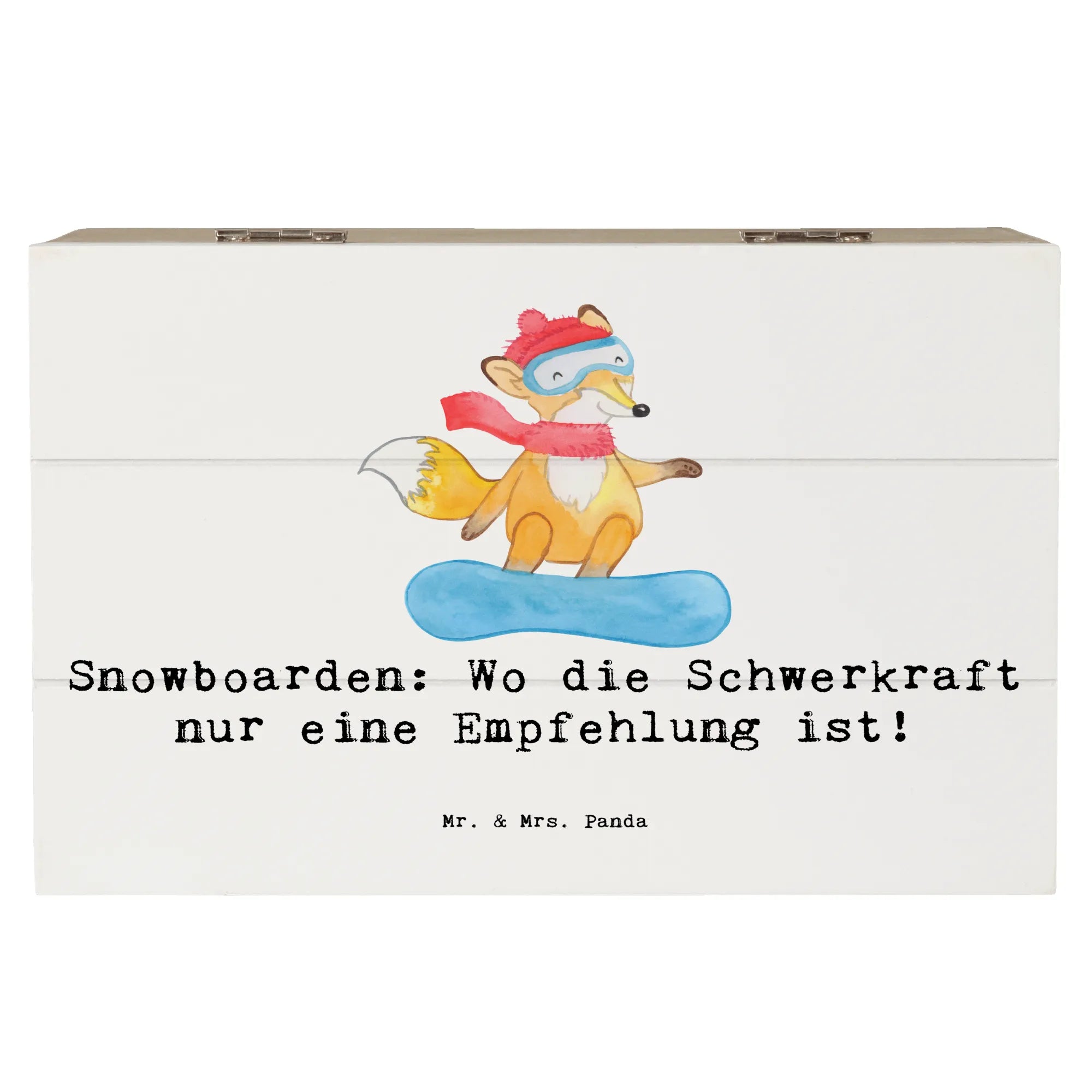 Entdecke die außergewöhnliche Holzkiste von Mr. & Mrs. Panda, die mit ihrem einzigartigen Motiv zum Thema Snowboarden und dem Spruch: "Snowboarden: Wo die Schwerkraft nur eine Empfehlung ist!" begeistert.