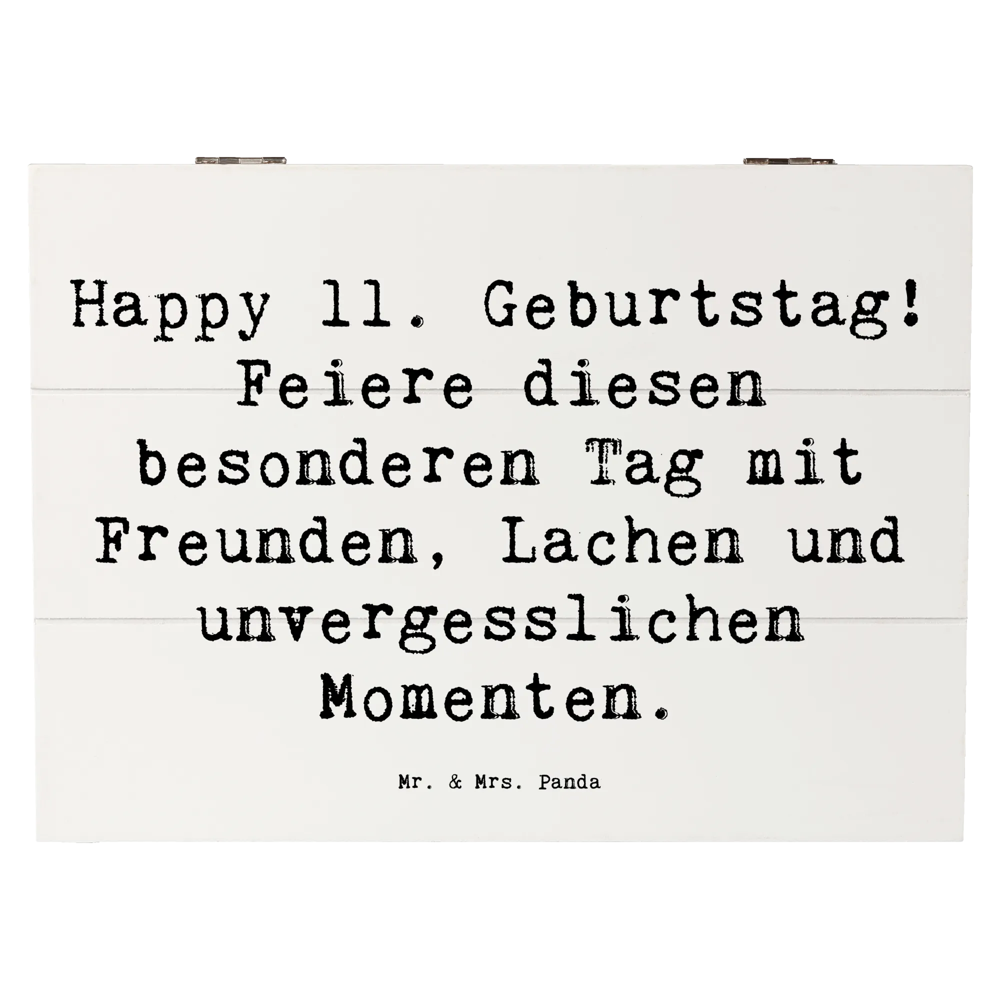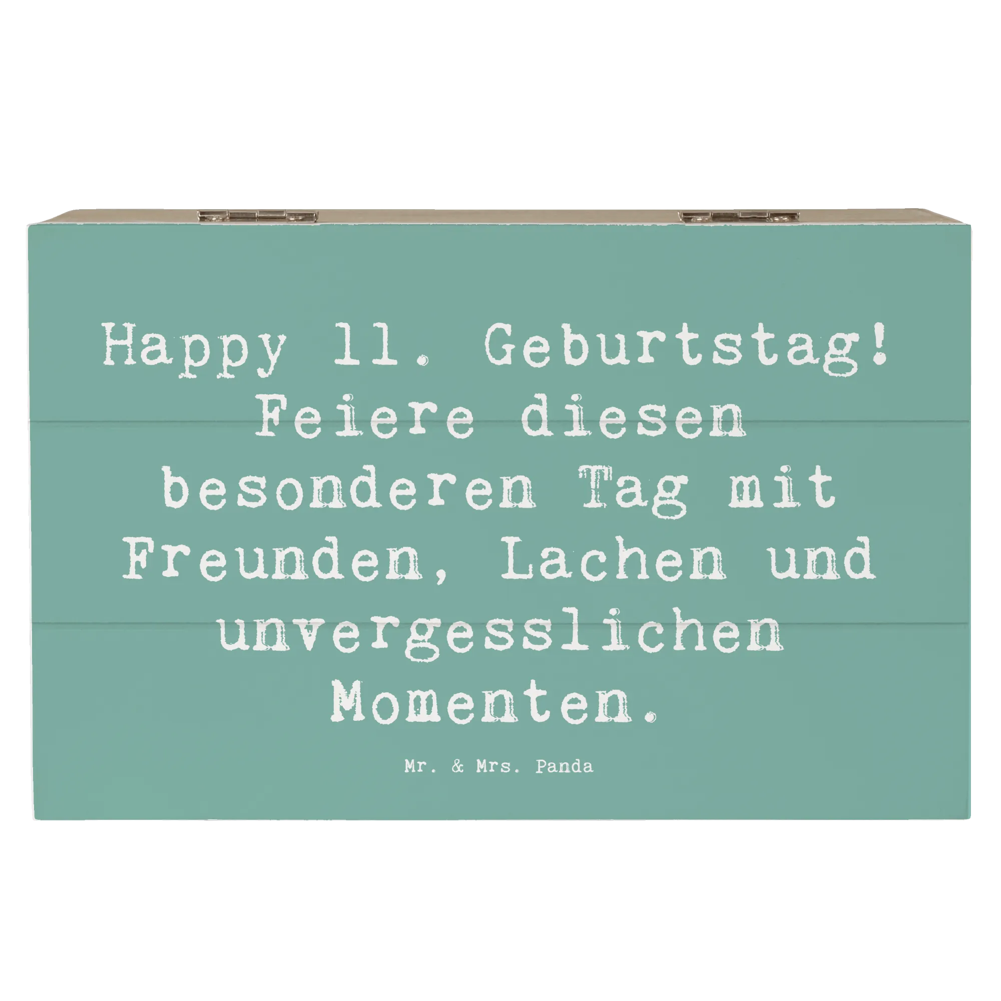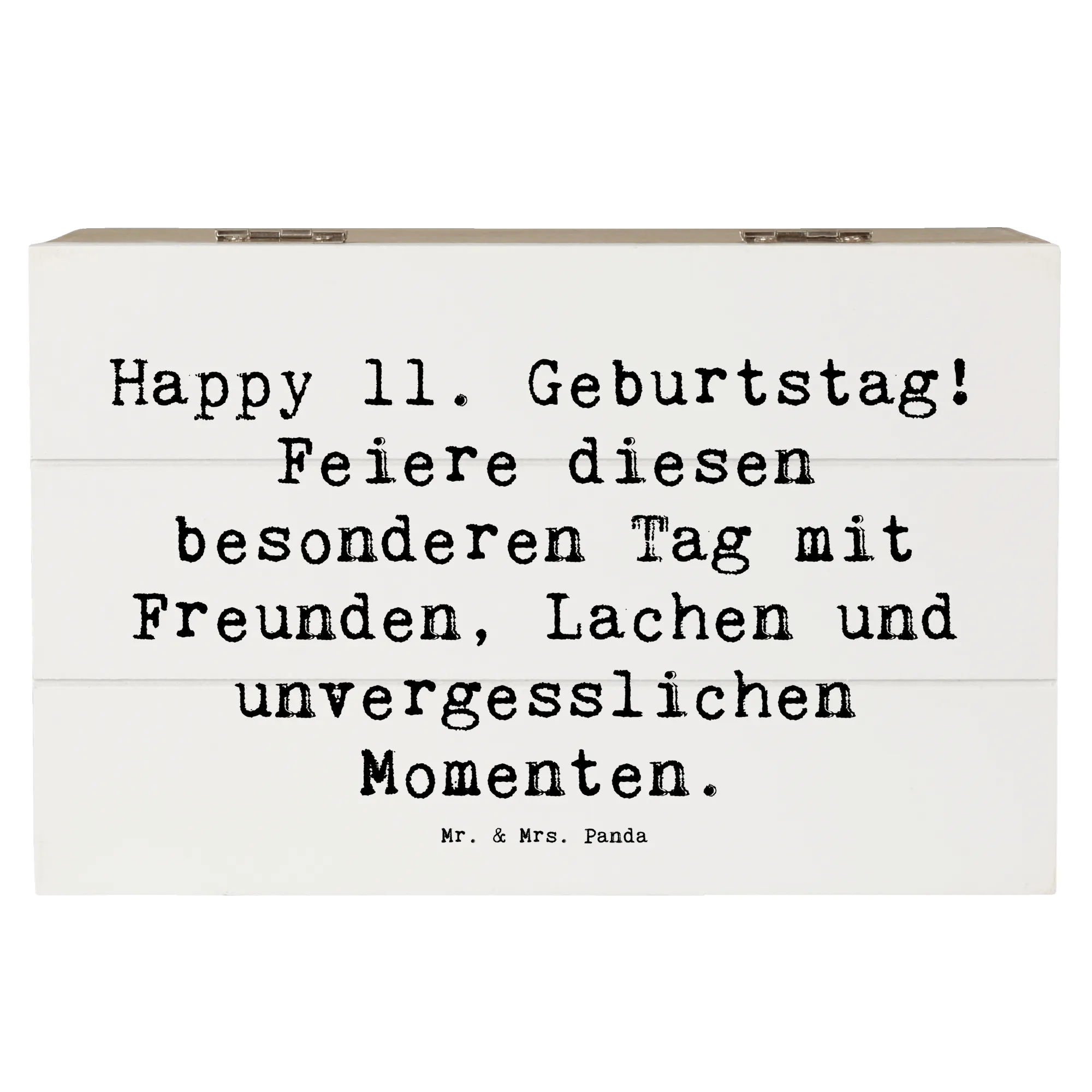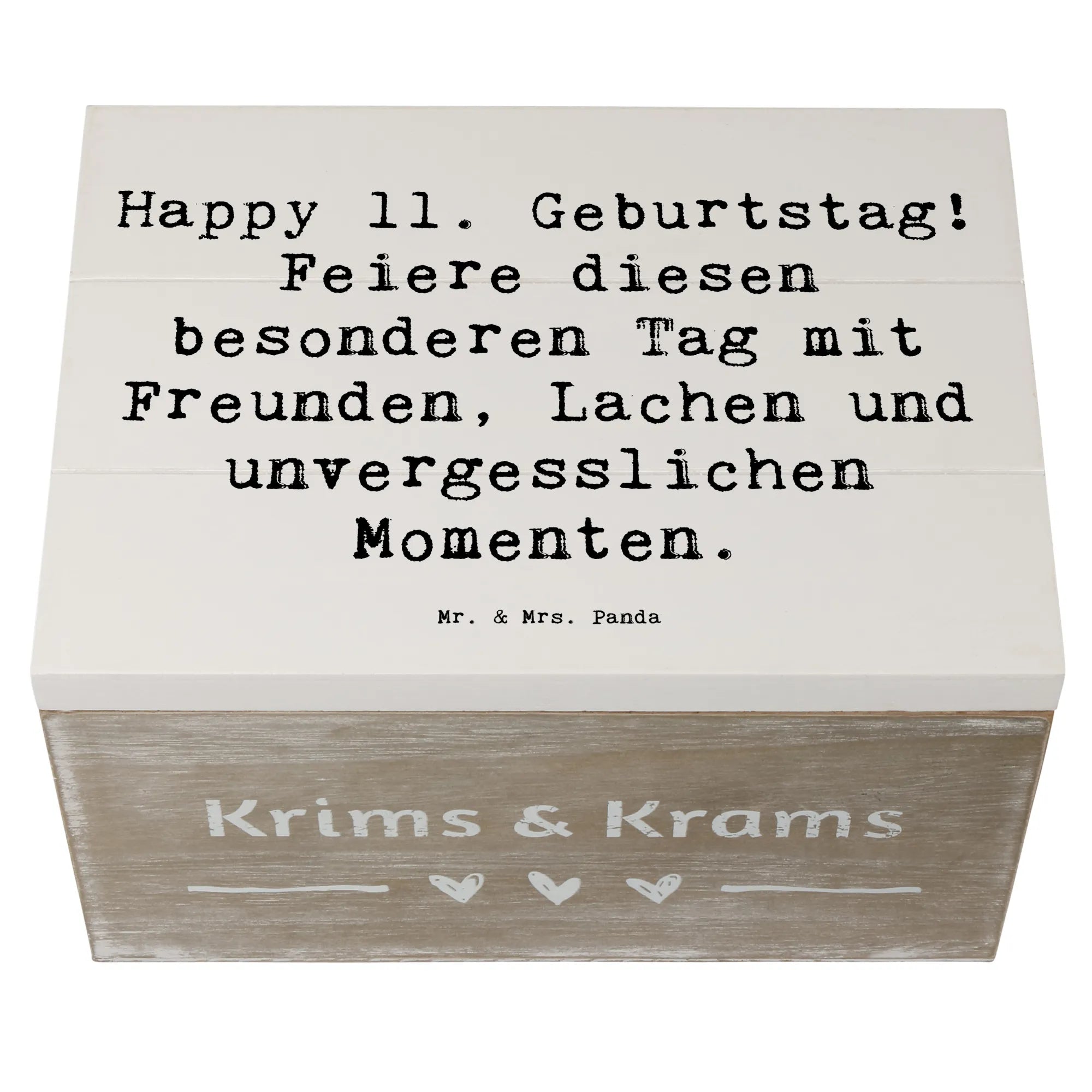 Entdecke die wundervolle Holzkiste von Mr. & Mrs. Panda, die das perfekte Geschenk zum 11. Geburtstag ist! Diese Erinnerungsbox ist nicht nur aus robuster Holzfaser gefertigt, sondern auch mit dem liebevollen Spruch 'Happy 11. Geburtstag! Feiere diesen besonderen Tag mit Freunden, Lachen und unvergesslichen Momenten.' versehen.