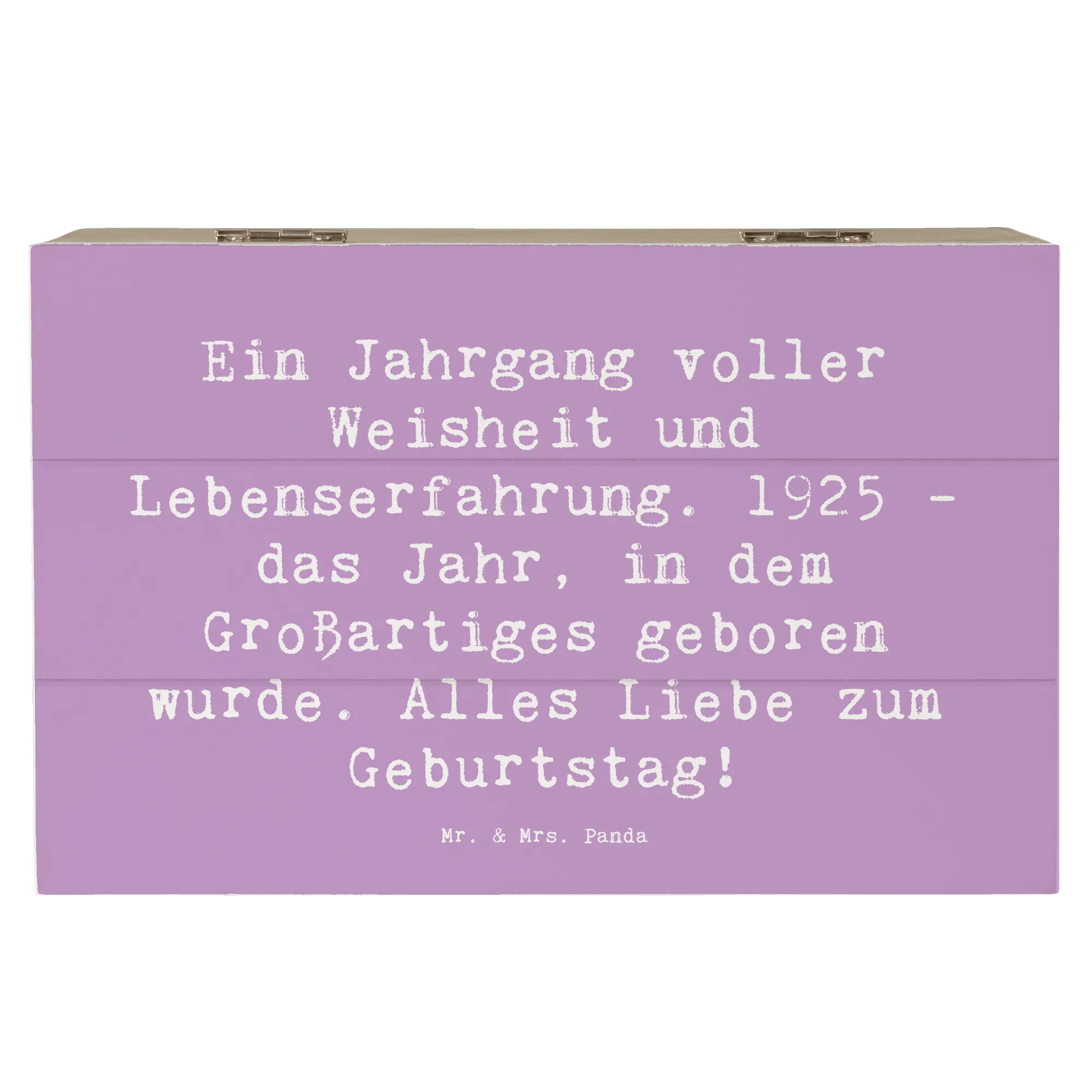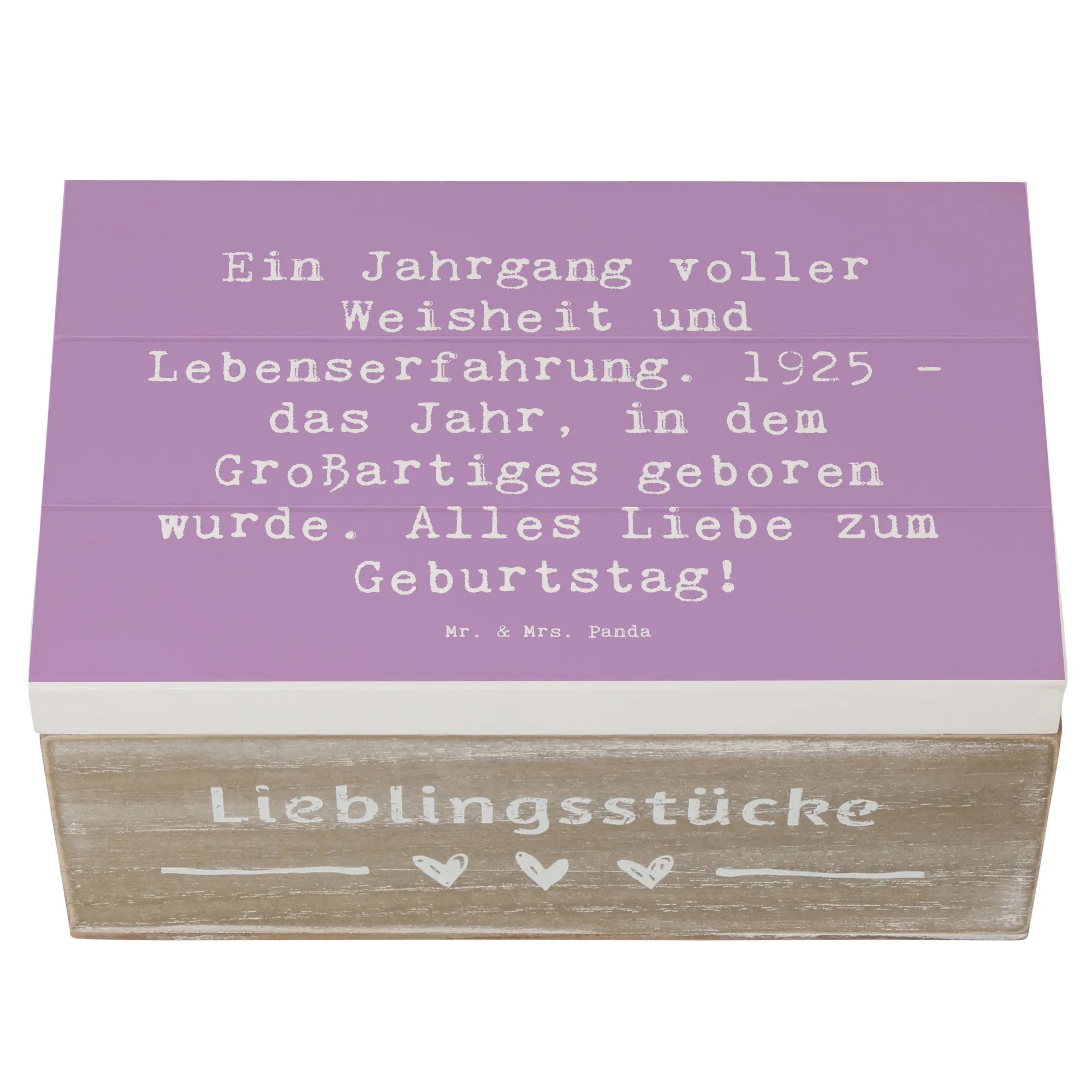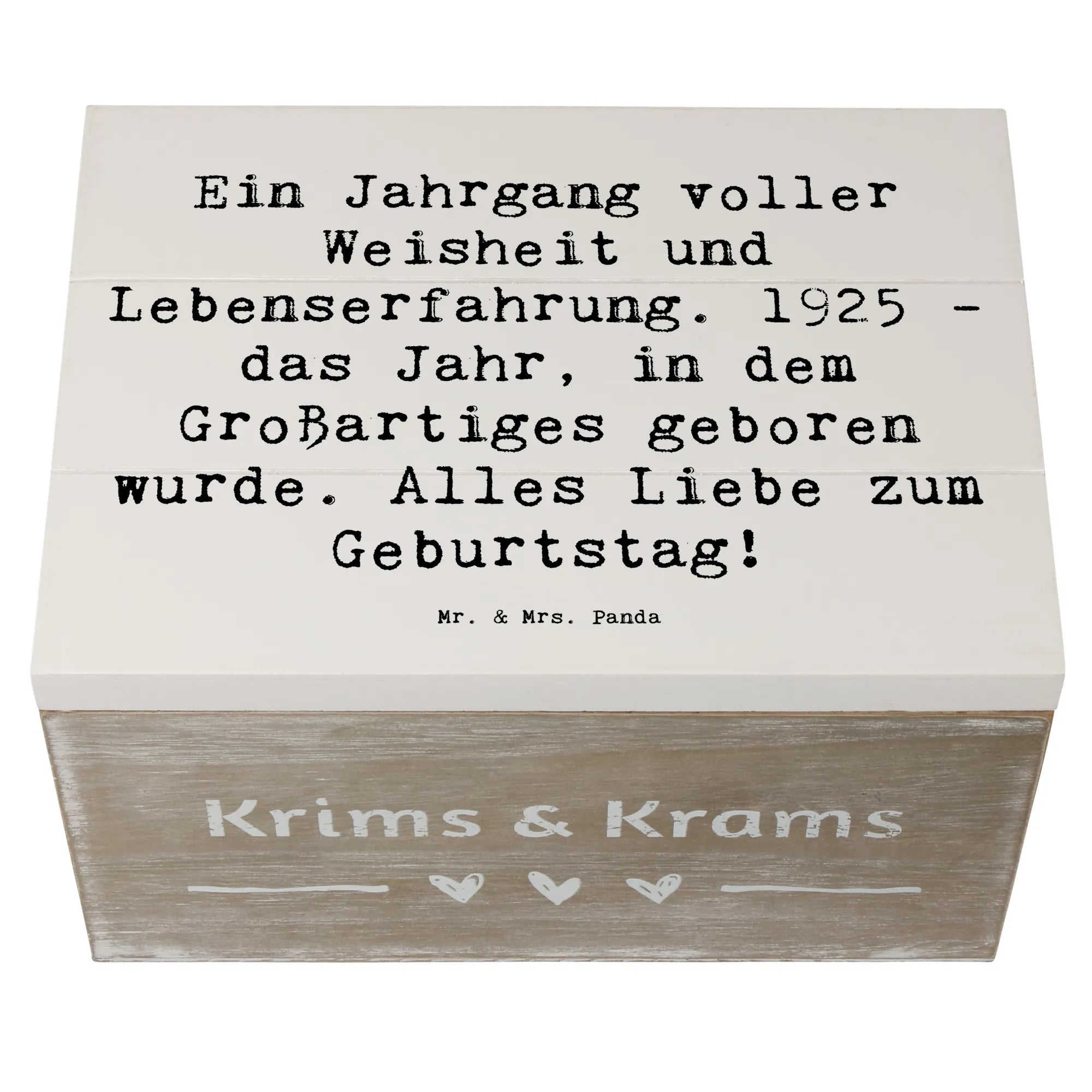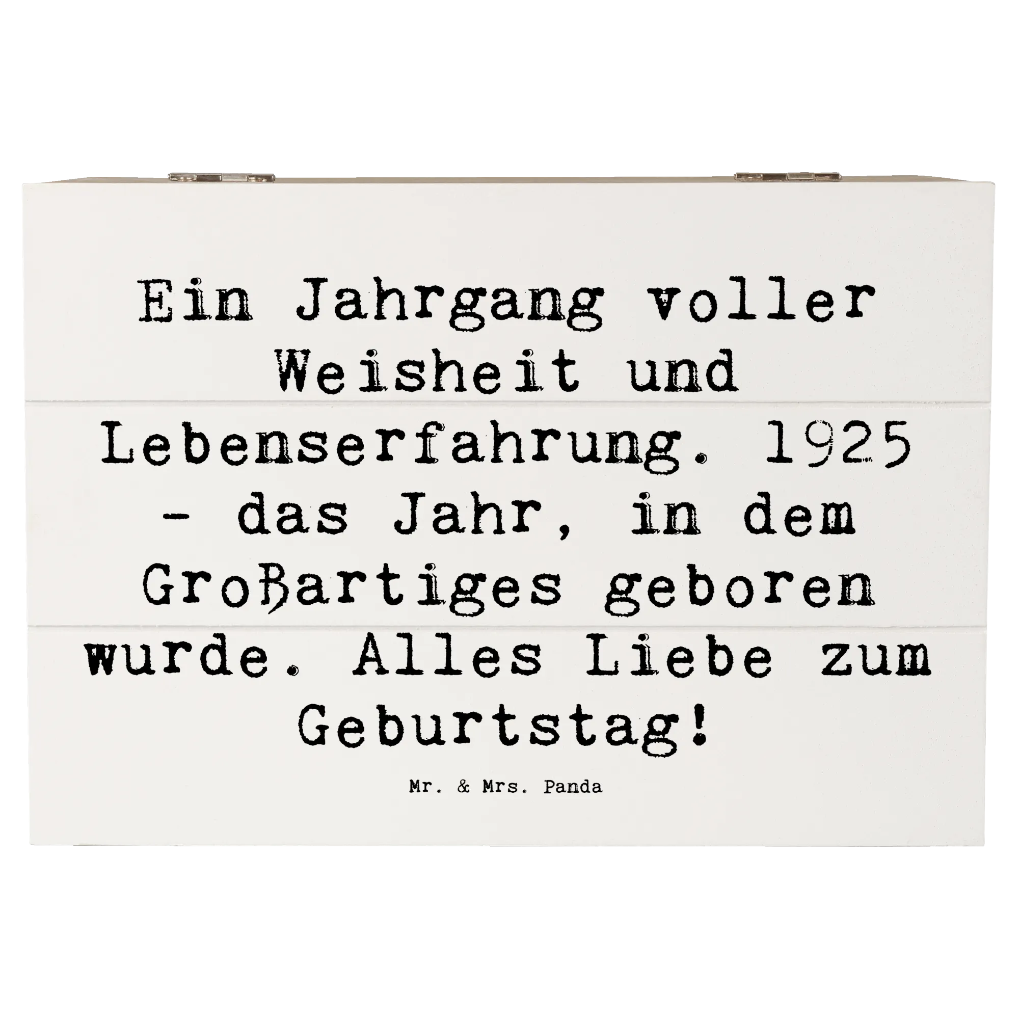 Die wunderschöne Holzkiste von Mr. & Mrs. Panda mit dem Motto 'Ein Jahrgang voller Weisheit und Lebenserfahrung. 1925 - das Jahr, in dem Großartiges geboren wurde. Alles Liebe zum Geburtstag!' ist der perfekte Begleiter für alle, die das Besondere schätzen.