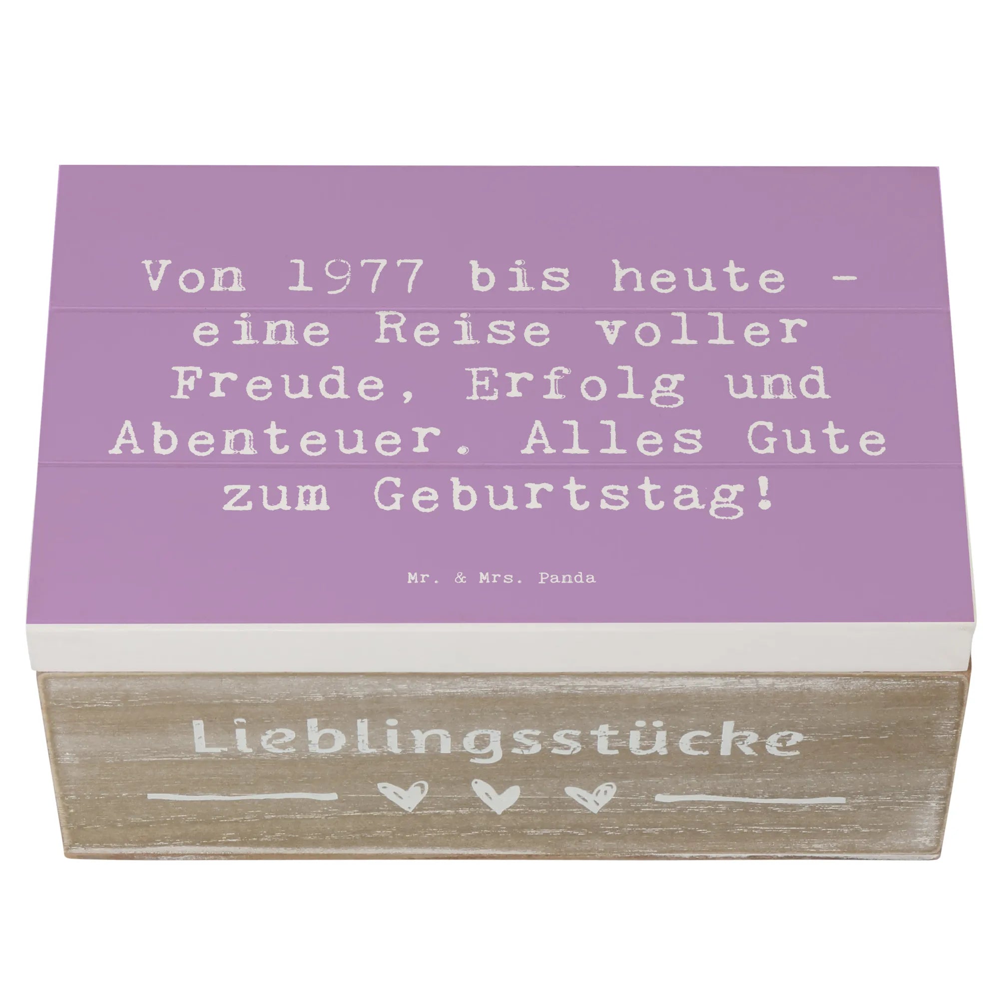 Bist du auf der Suche nach einem ganz besonderen Geschenk für einen Geburtstagskind, das im Jahr 1977 das Licht der Welt erblickt hat? Unsere wunderschöne Holzkiste von Mr. & Mrs. Panda ist die perfekte Wahl!