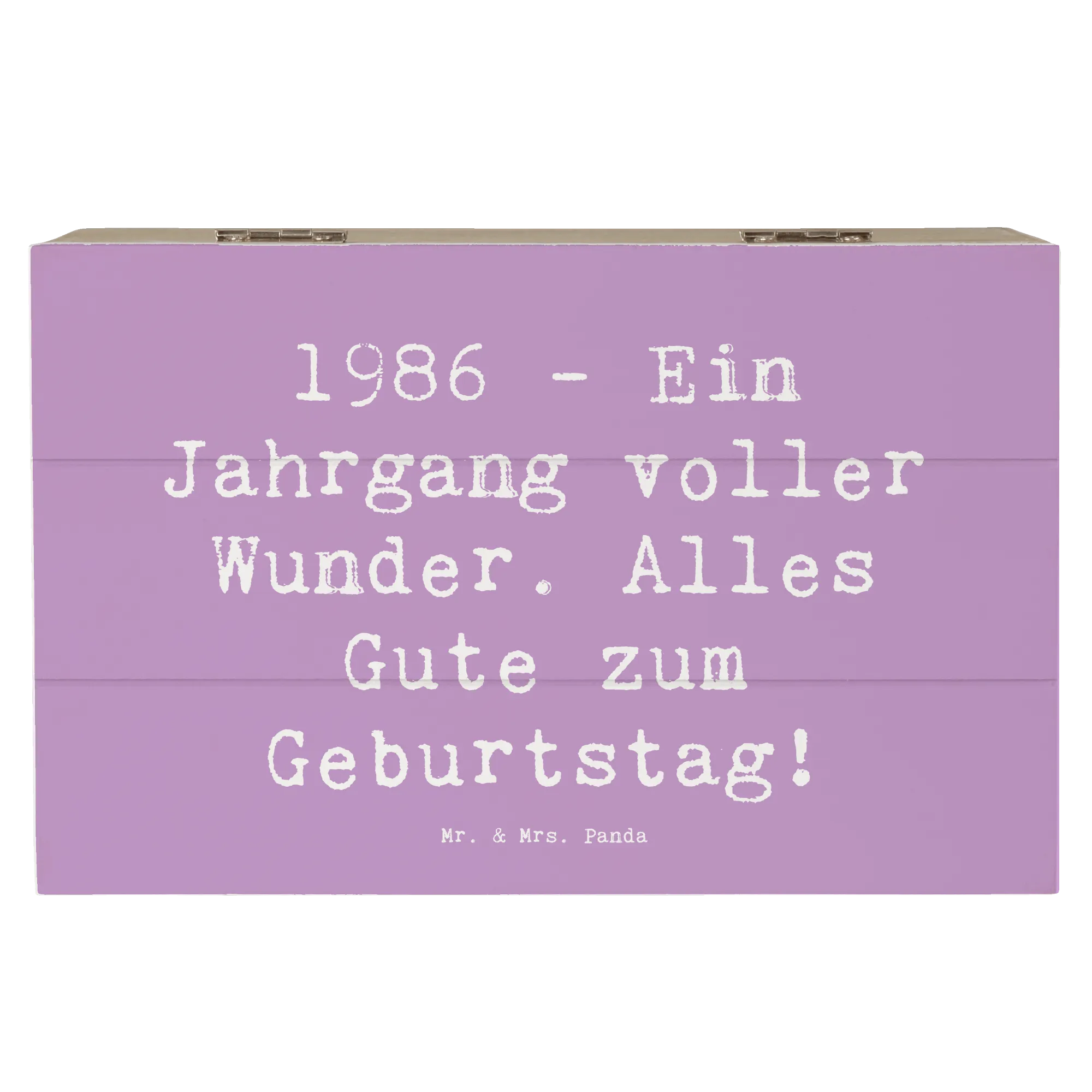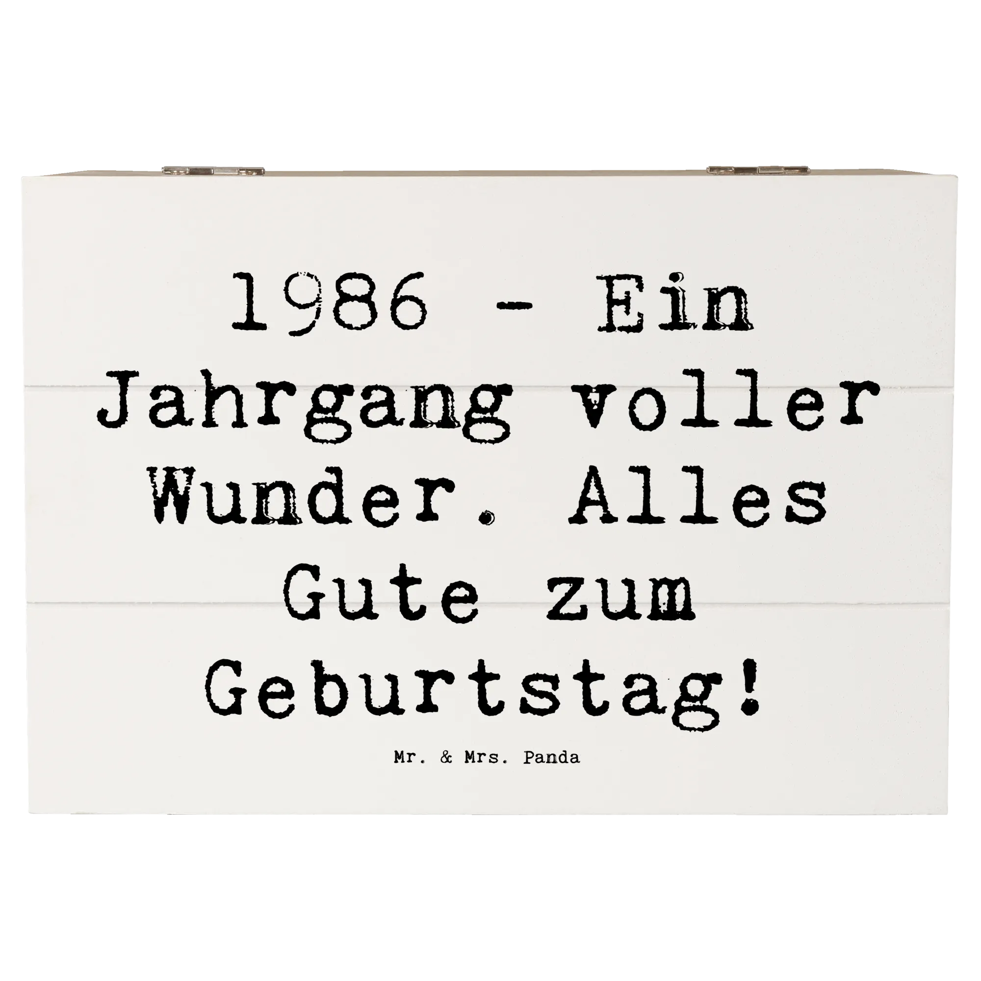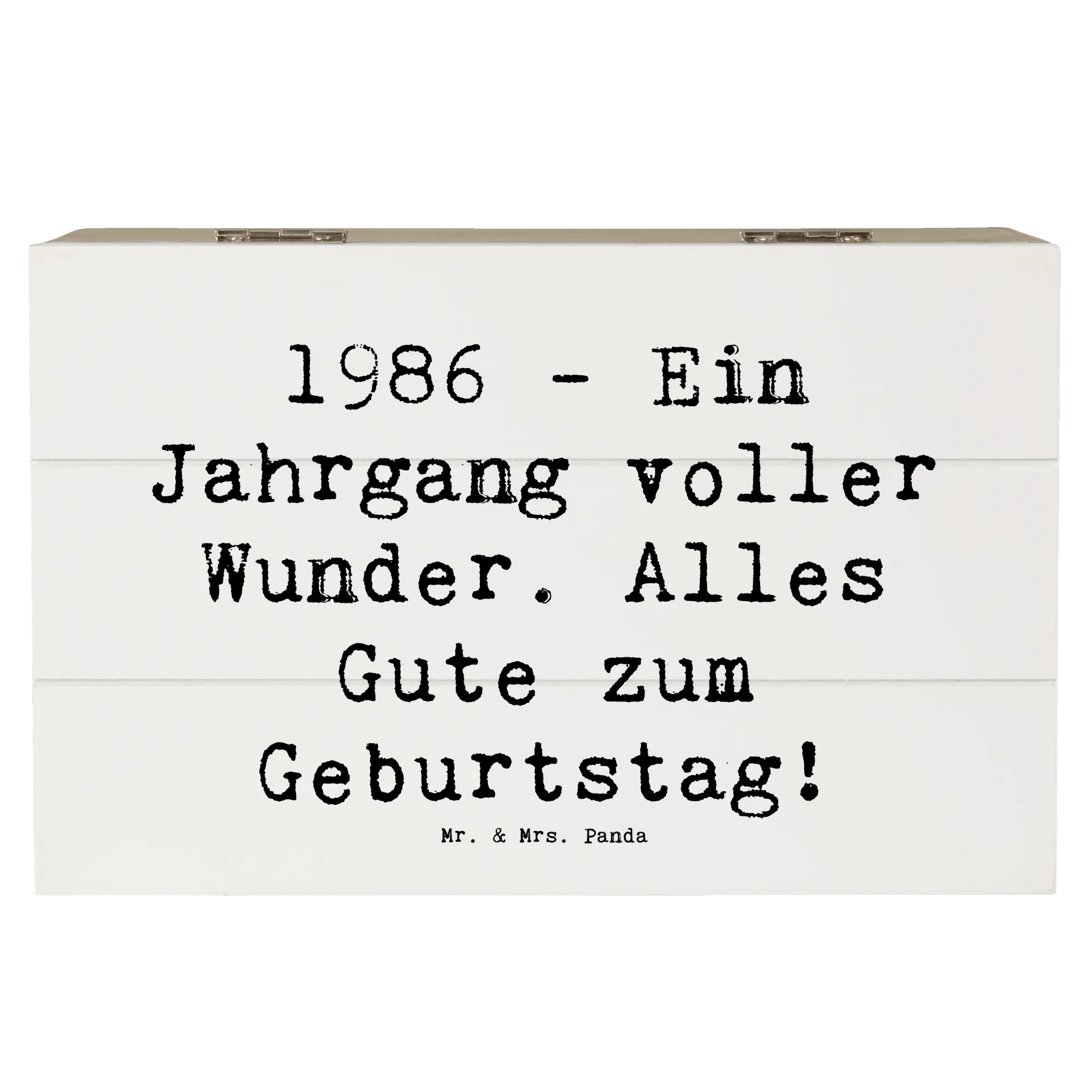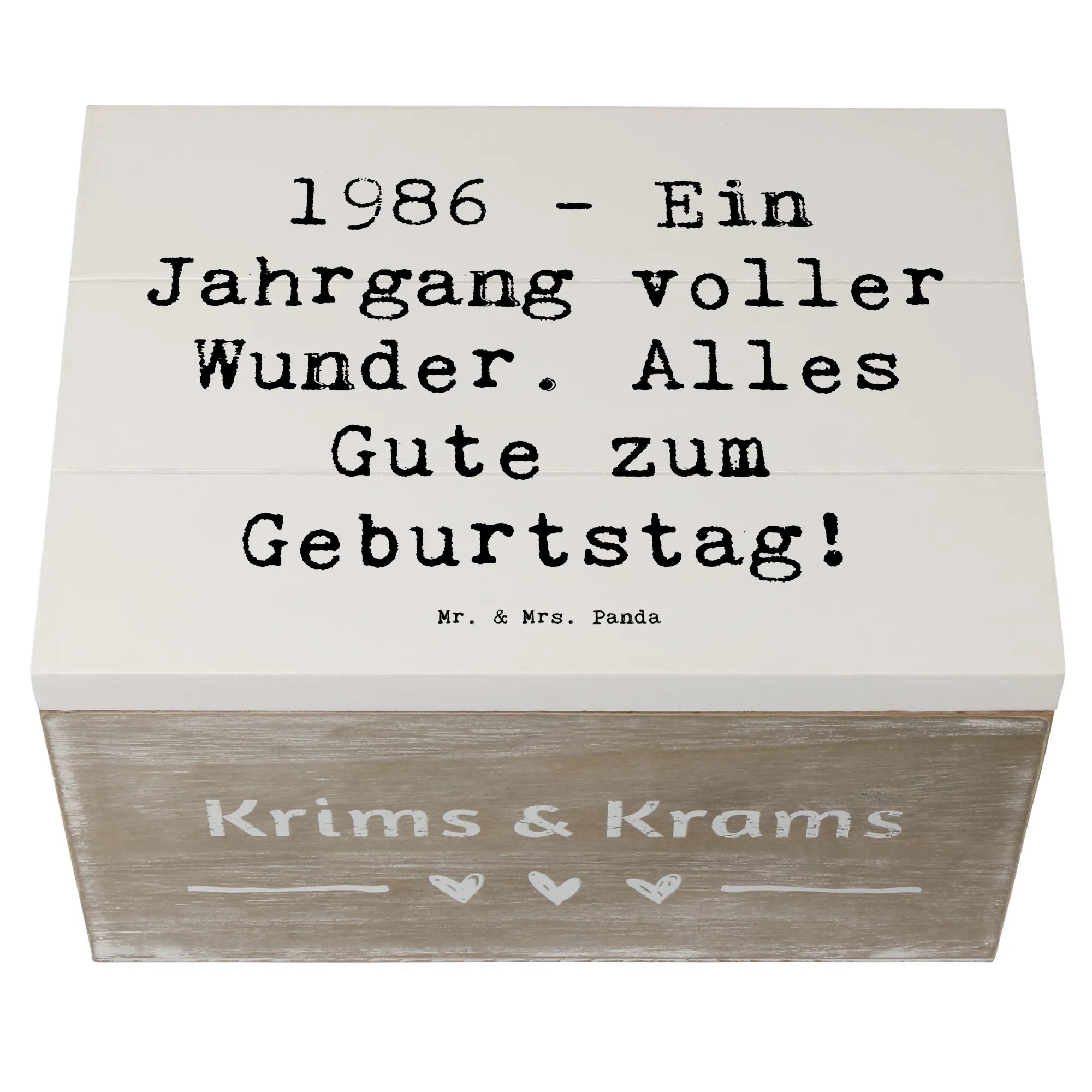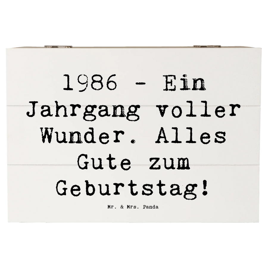 Entdecke die zauberhafte Holzkiste "1986 - Ein Jahrgang voller Wunder" von Mr. & Mrs. Panda – das perfekte Geschenk für alle, die 1986 geboren wurden oder ihren Geburtstag in diesem Jahr feiern!
