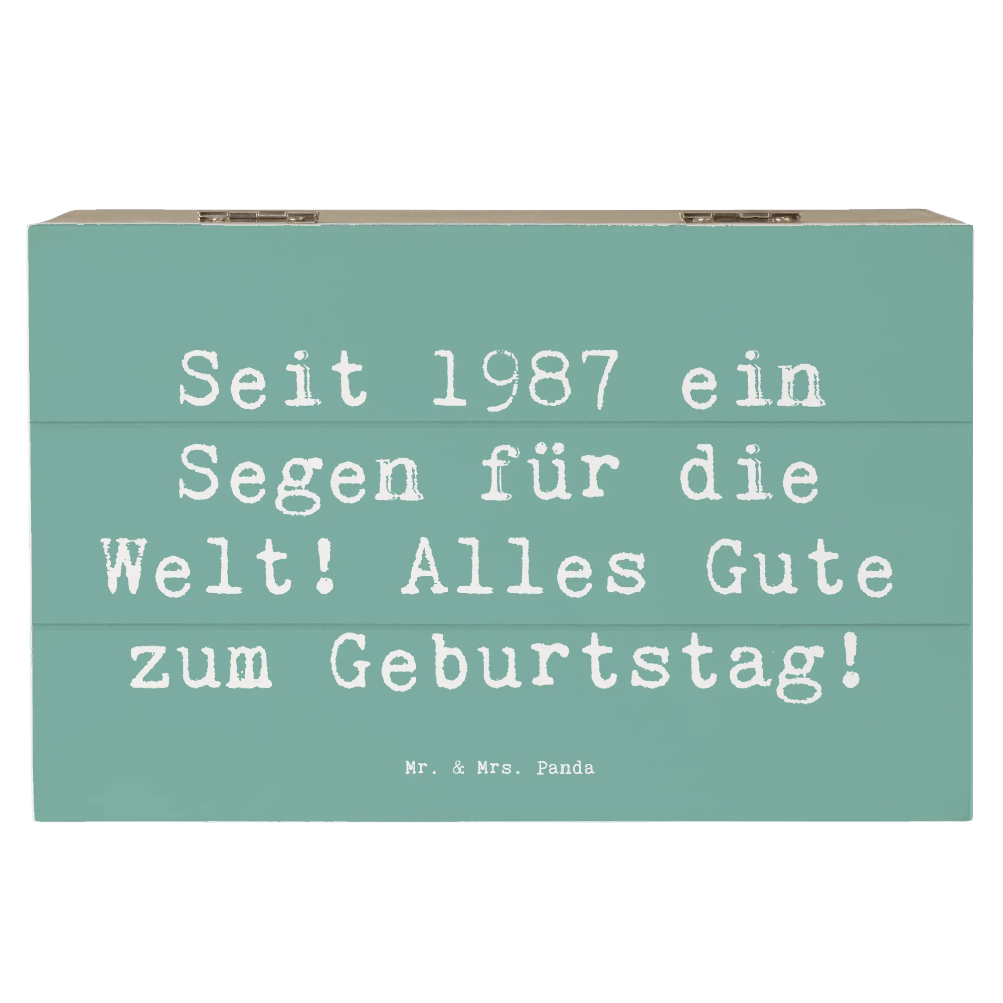Ob als Aufbewahrung für Kindheitsgegenstände, Fotos oder sogar als wunderschöne Geschenkbox - diese Holzkiste ist vielseitig einsetzbar. Mit dem liebevollen Spruch "Seit 1987 ein Segen für die Welt! Alles Gute zum Geburtstag!" wird jeder, der dieses Geschenk erhält, sich besonders geschätzt fühlen.