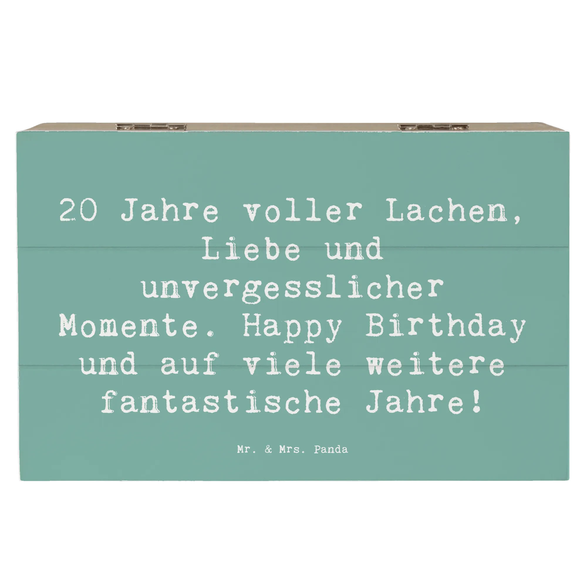 Die wunderschöne Holzkiste von Mr. & Mrs. Panda ist das perfekte Geschenk zum 20. Geburtstag! Diese elegante Kiste ist mit dem liebevollen Spruch "20 Jahre voller Lachen, Liebe und unvergesslicher Momente. Happy Birthday und auf viele weitere fantastische Jahre!" verziert.
