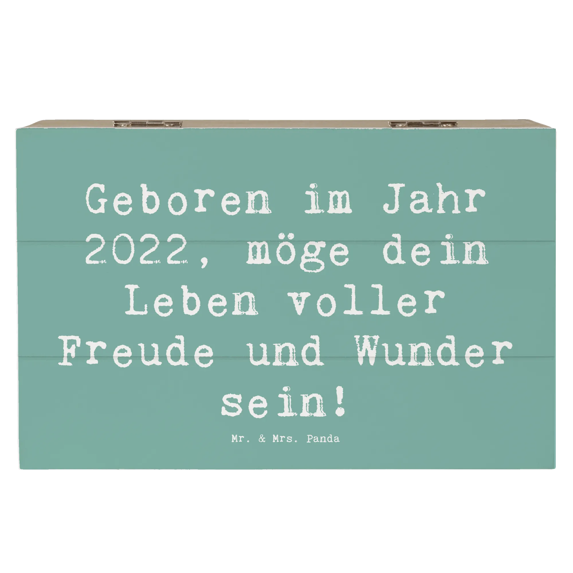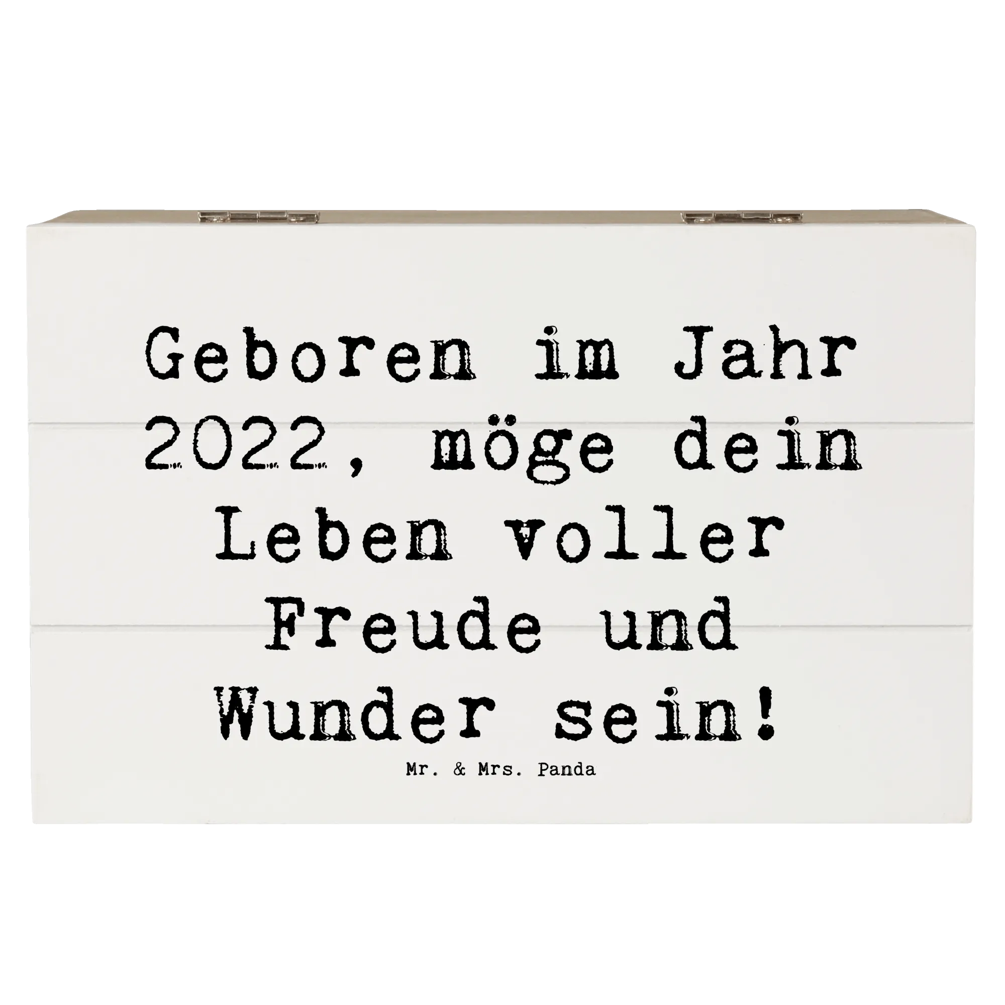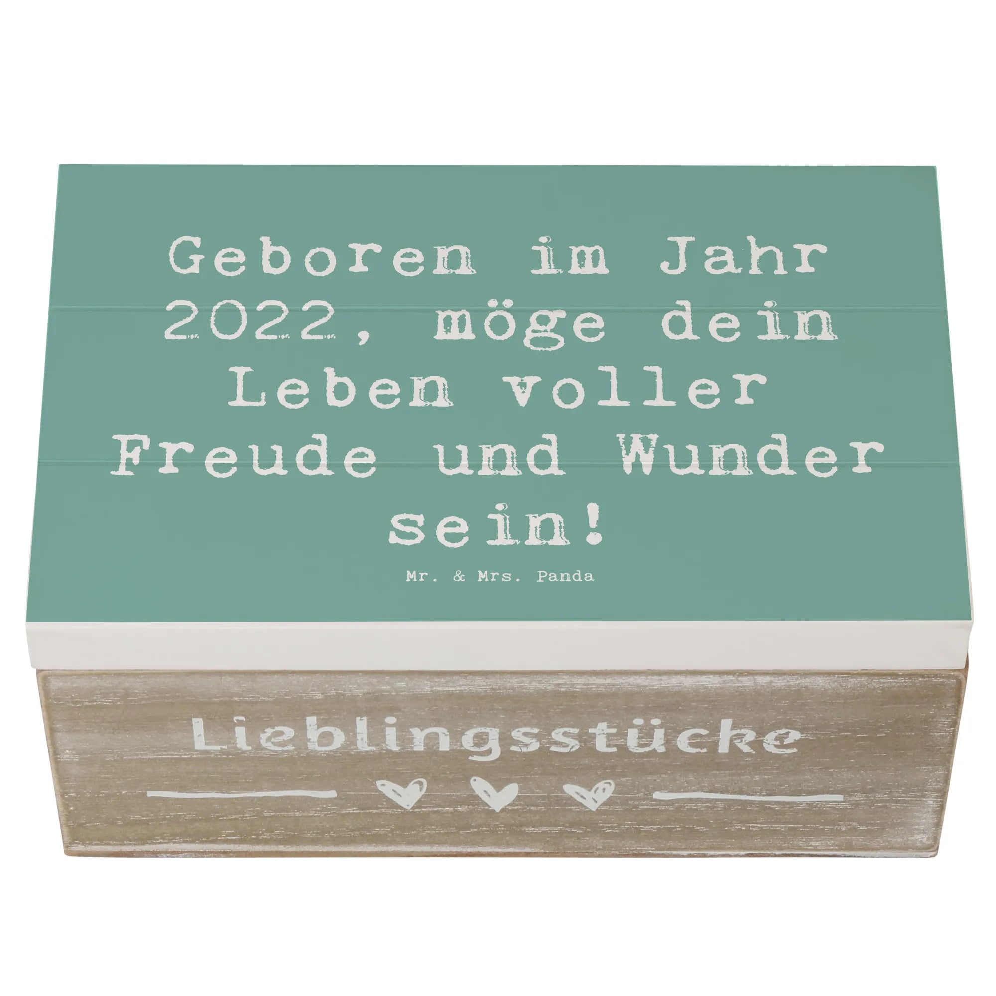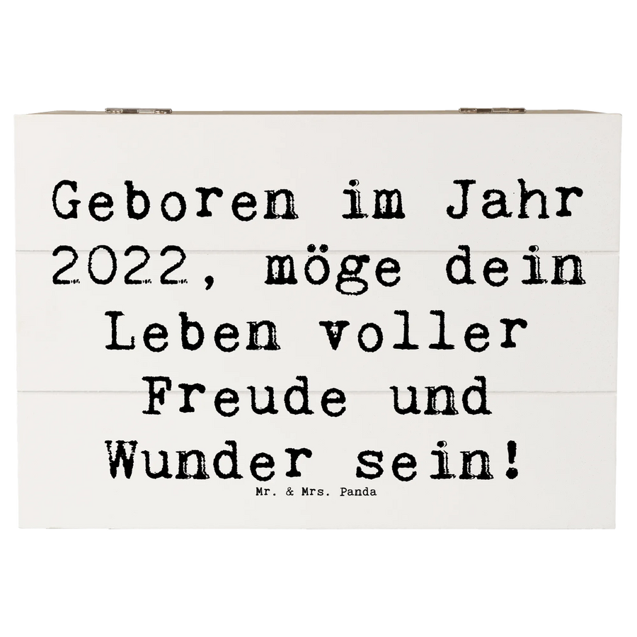 Entdecke die zauberhafte Holzkiste von Mr. & Mrs. Panda mit dem wunderschönen Motiv "Geboren im Jahr 2022, möge dein Leben voller Freude und Wunder sein!" Diese Kiste ist nicht nur ein praktisches Aufbewahrungselement, sondern auch ein liebevolles Geschenk zur Erinnerung an den besonderen Tag der Geburt.