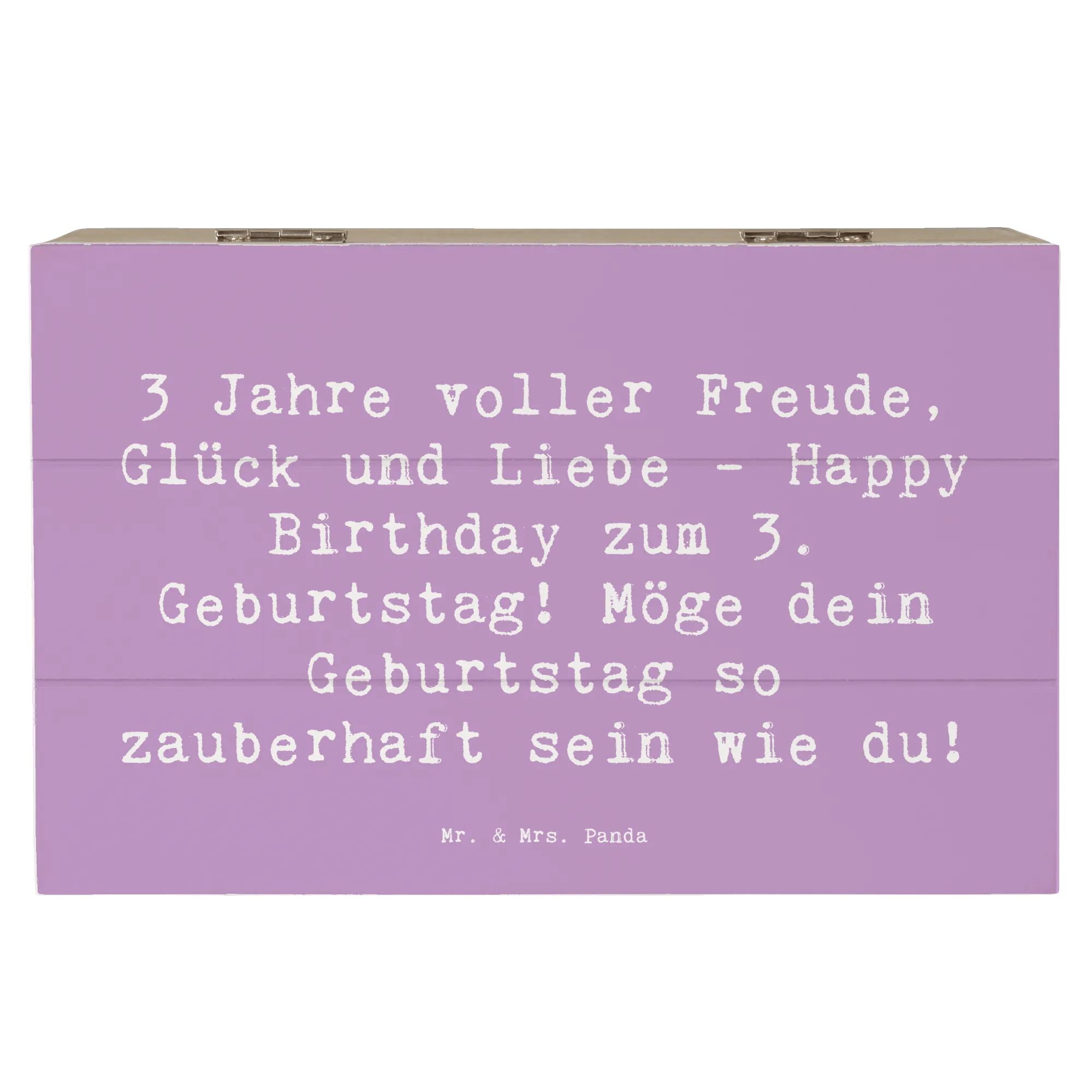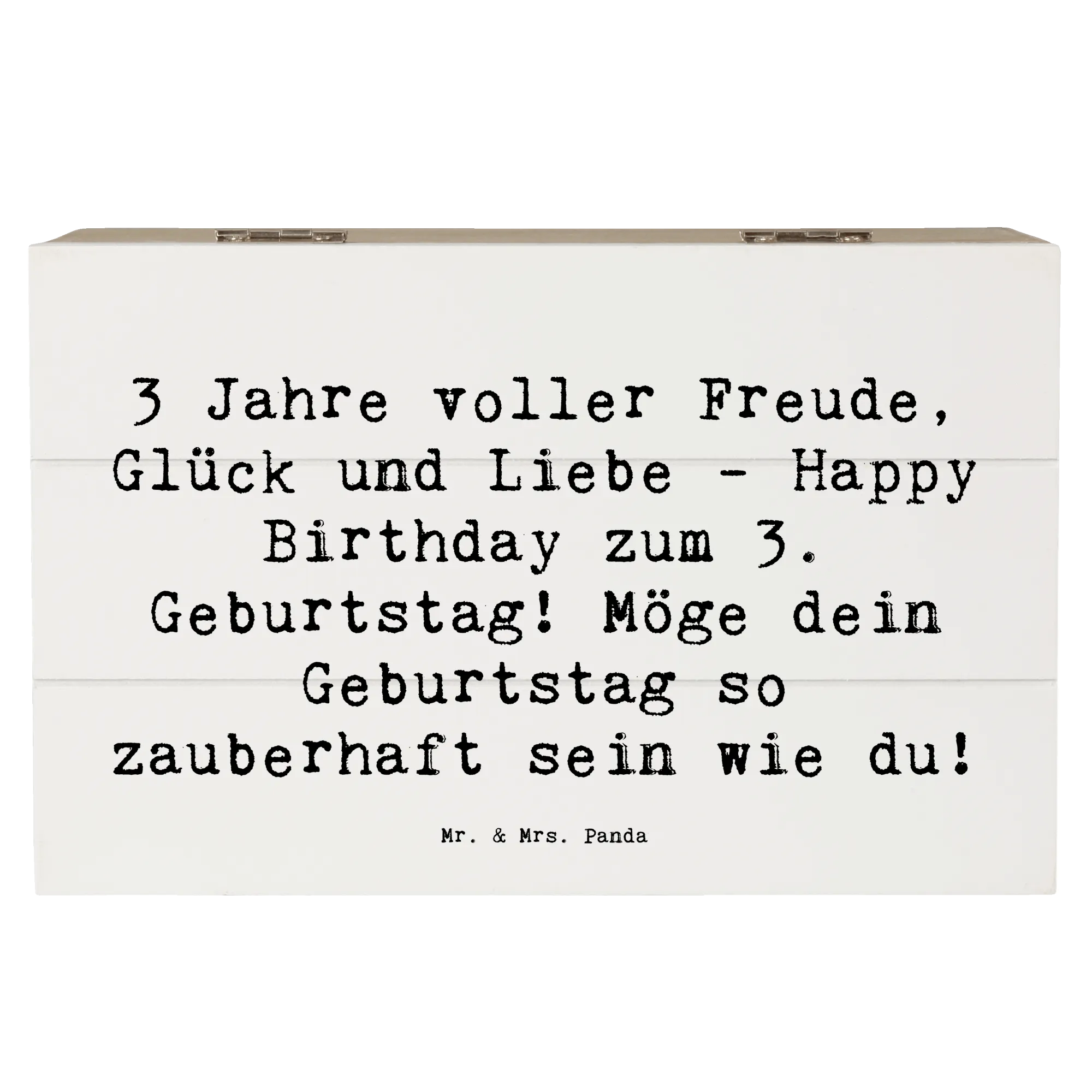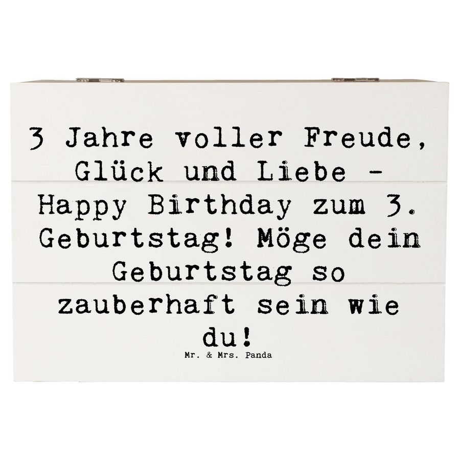 Die Holzkiste "3. Geburtstag" von Mr. & Mrs. Panda ist das perfekte Geschenk für den besonderen Tag eines kleinen Lieblings. Mit ihrem liebevollen Motiv und dem herzlichen Slogan "3 Jahre voller Freude, Glück und Liebe - Happy Birthday zum 3. Geburtstag! Möge dein Geburtstag so zauberhaft sein wie du!" strahlt diese wunderschöne Holzkiste pure Freude aus.