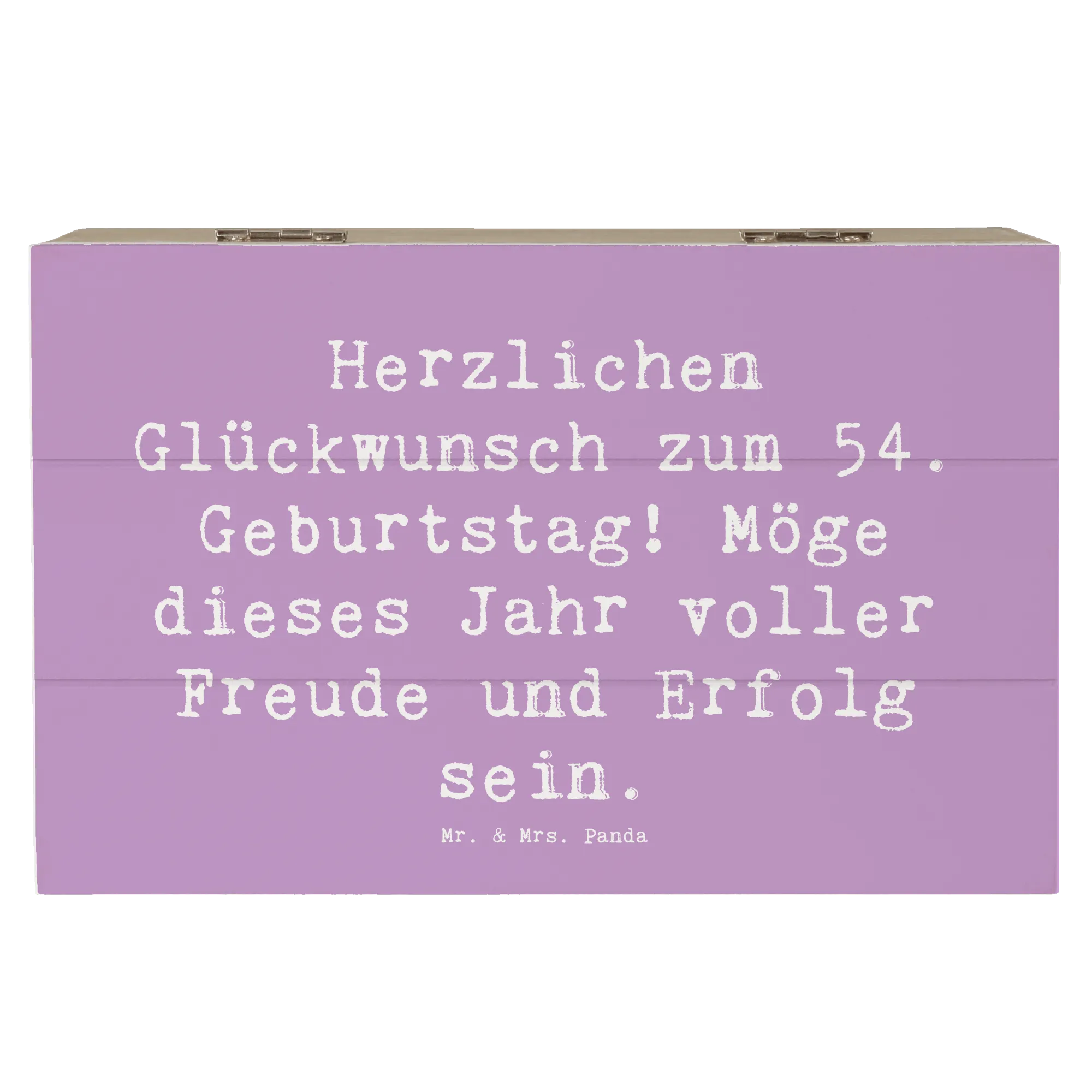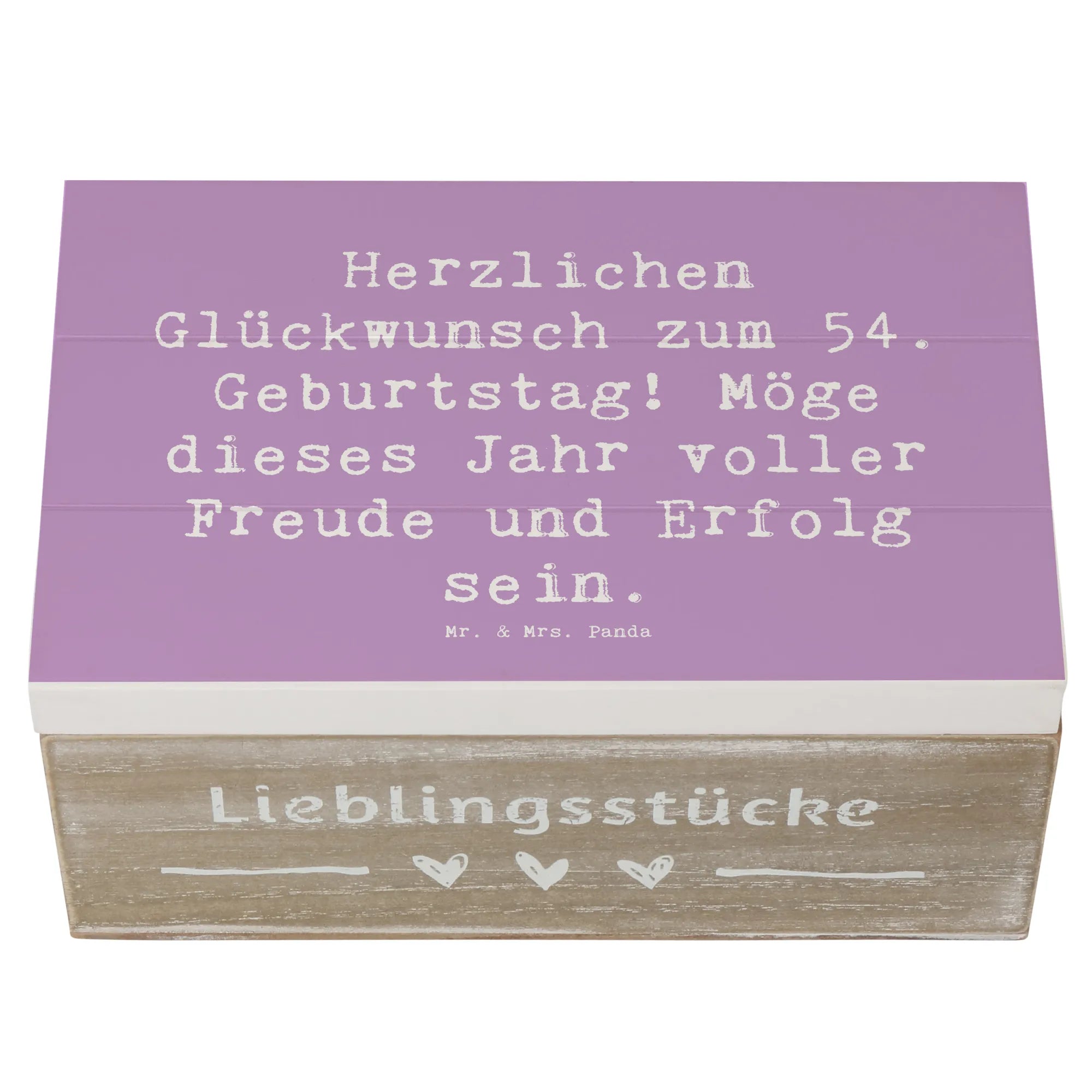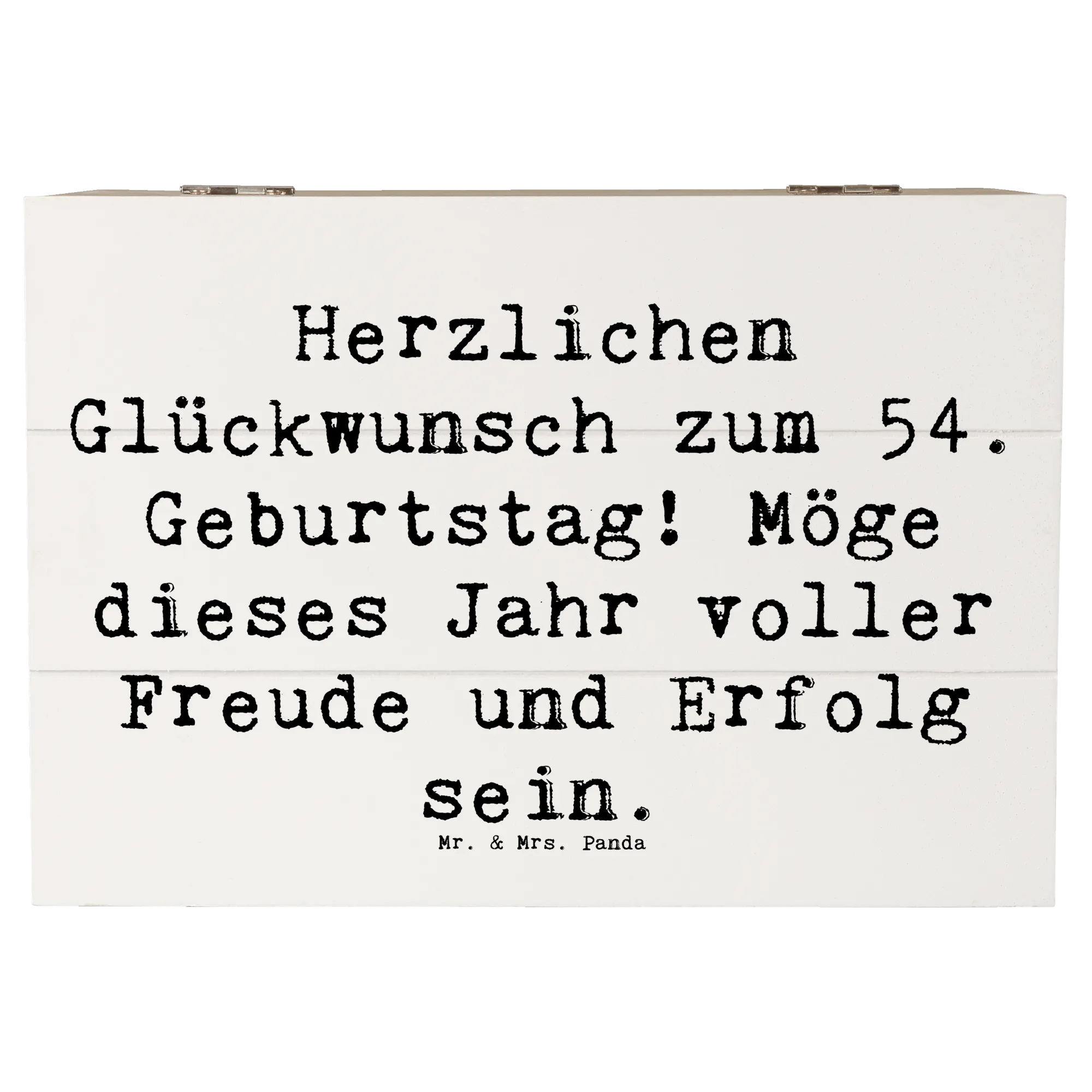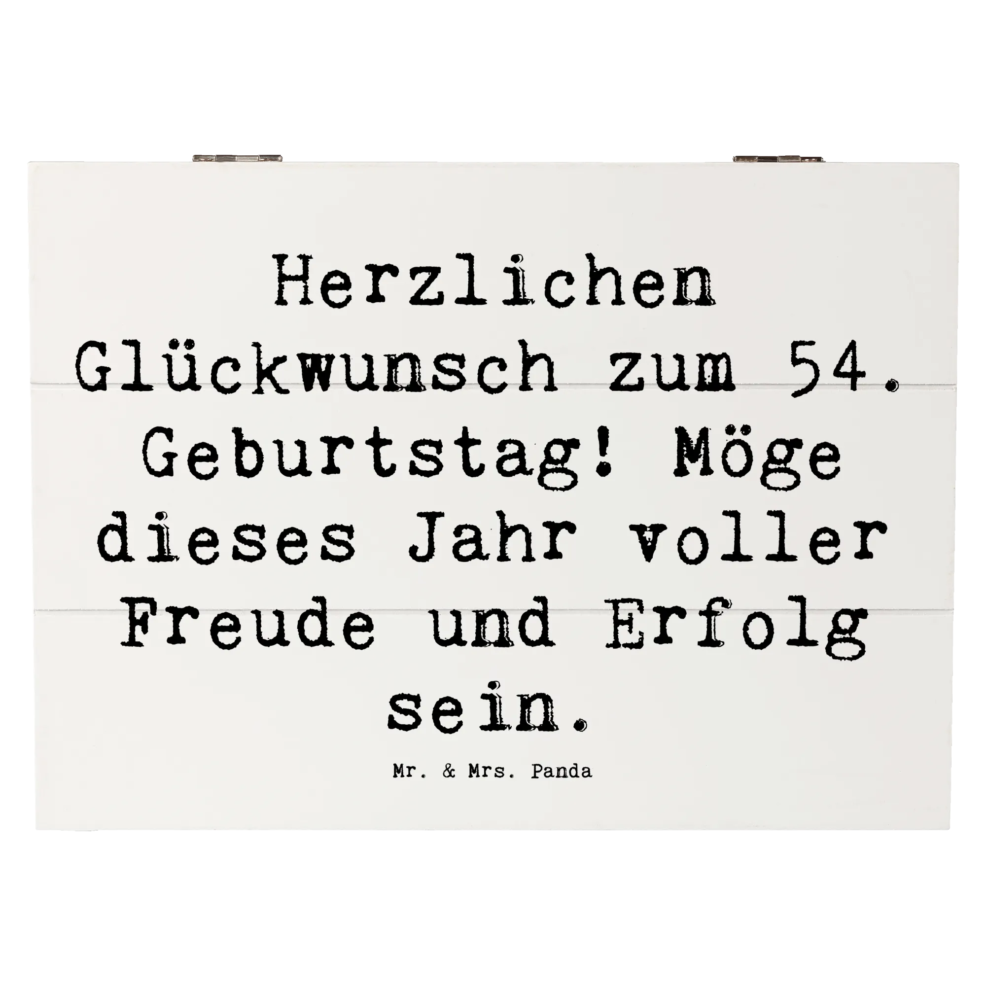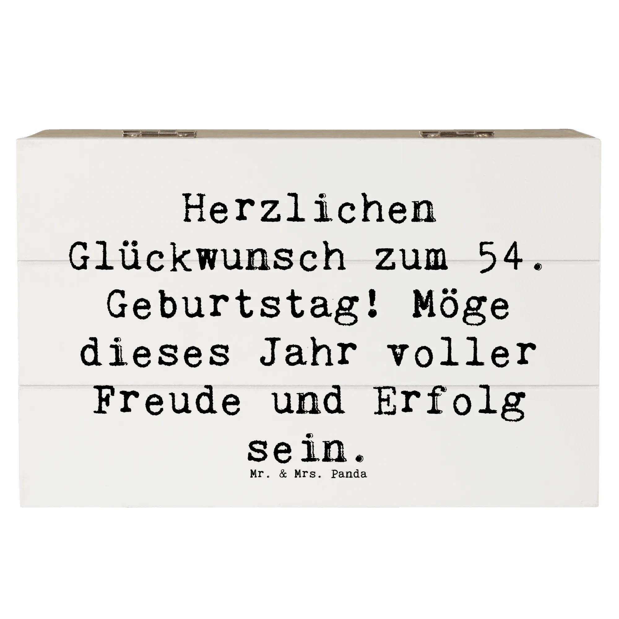 Die wunderschöne Holzkiste zum 54. Geburtstag von Mr. & Mrs. Panda ist das perfekte Geschenk für alle, die diesen besonderen Tag feiern möchten! Mit dem liebevollen Spruch "Herzlichen Glückwunsch zum 54. Geburtstag! Möge dieses Jahr voller Freude und Erfolg sein" ziert sie die Oberseite und setzt so einen ganz persönlichen Akzent.