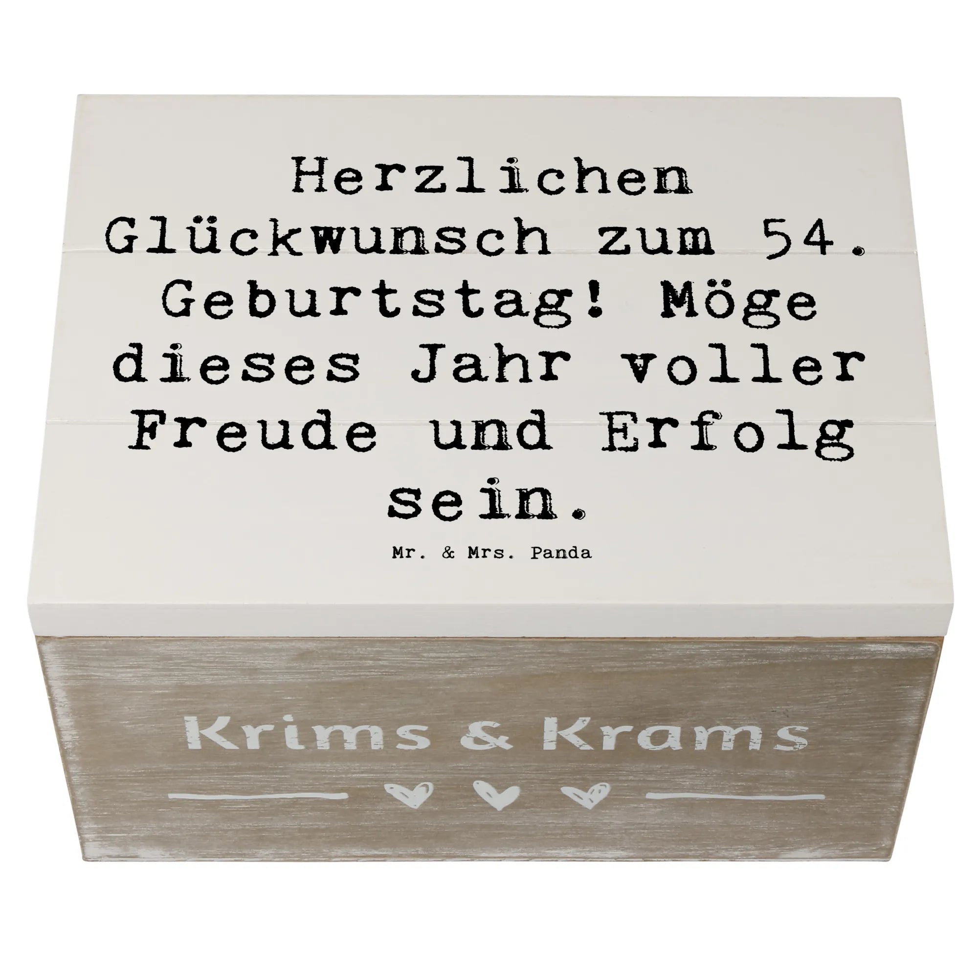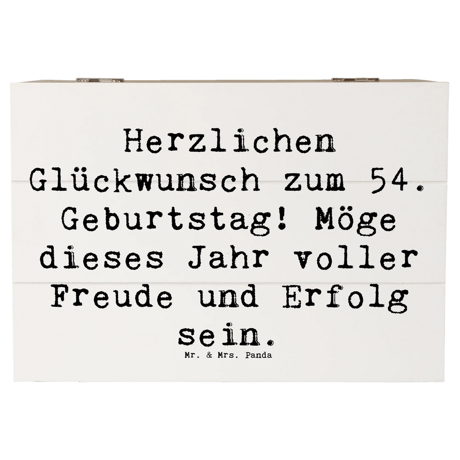 Hast du schon die perfekte Geschenkidee für den 54. Geburtstag? Unsere wunderschöne Holzkiste von Mr. & Mrs. Panda ist eine tolle Wahl! Mit dem liebevollen Motive "Herzlichen Glückwunsch zum 54. Geburtstag! Möge dieses Jahr voller Freude und Erfolg sein." wird diese Kiste zu einem unvergesslichen Erinnerungsstück.