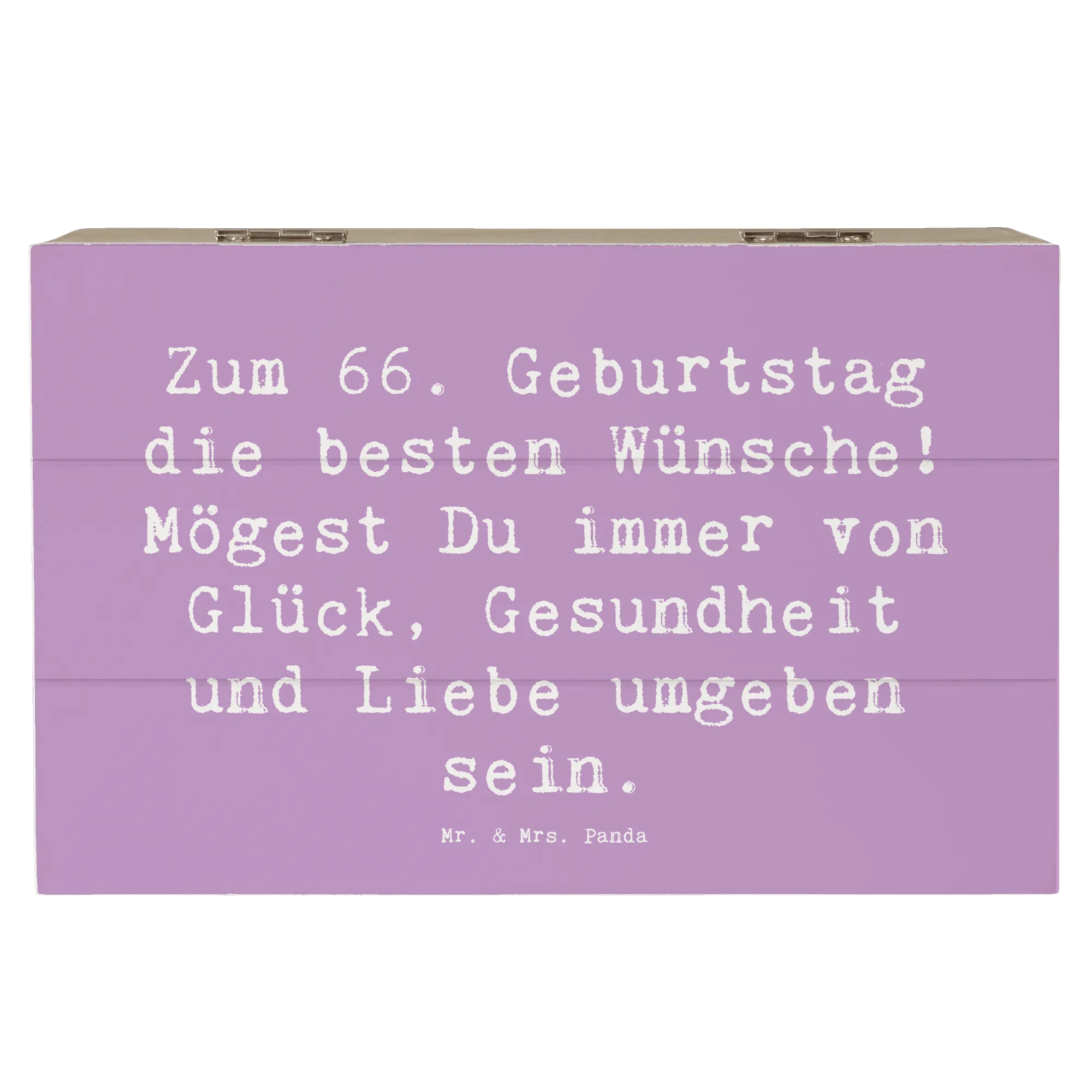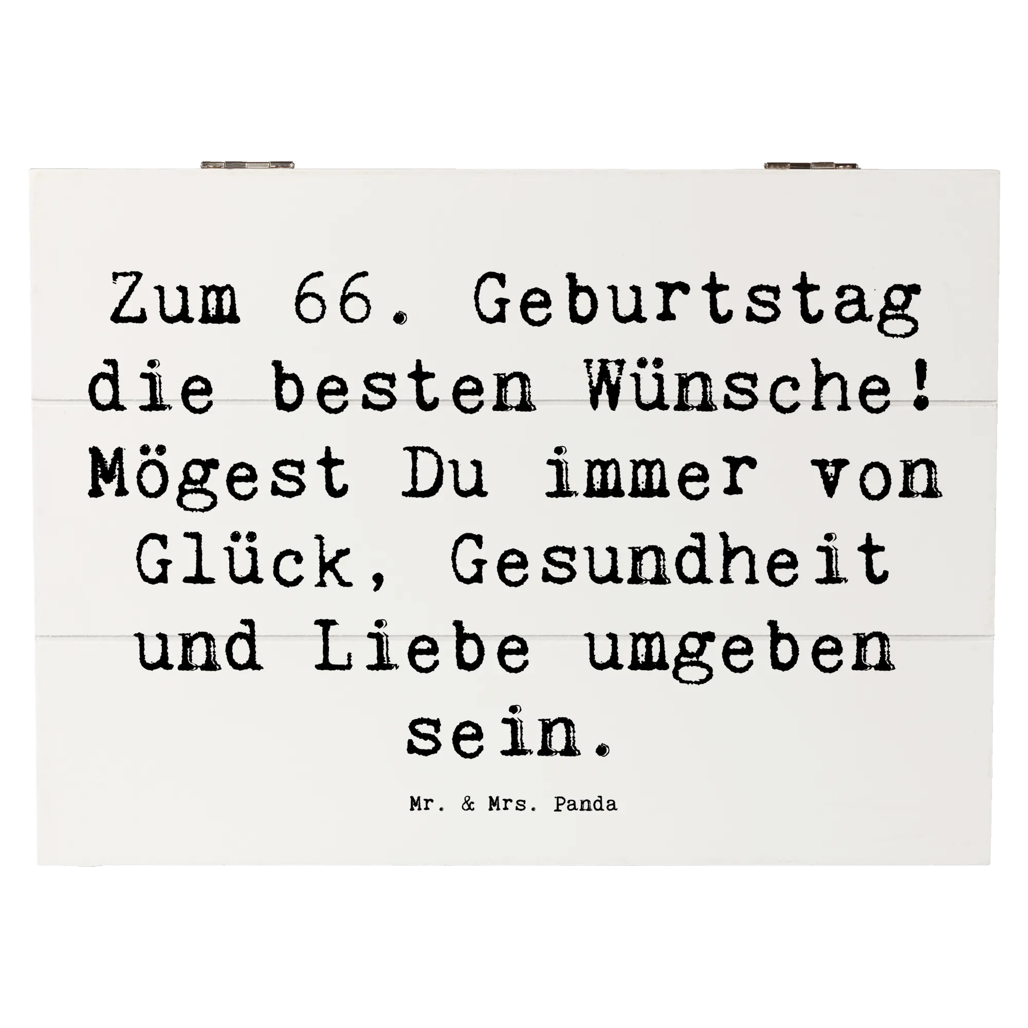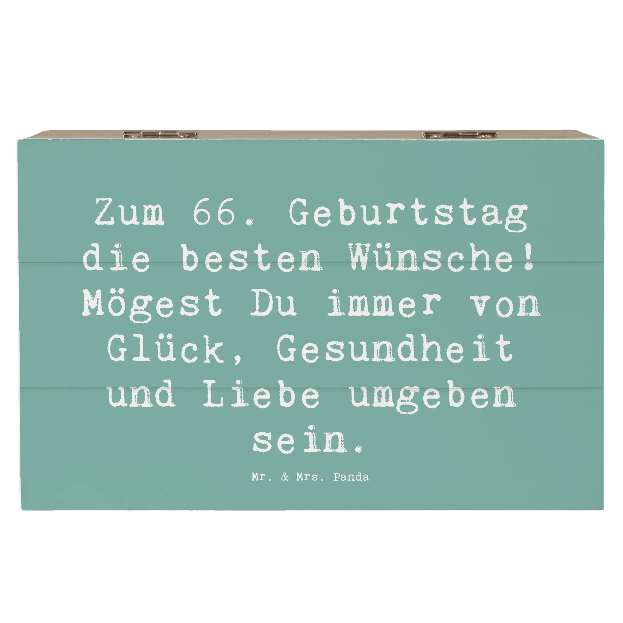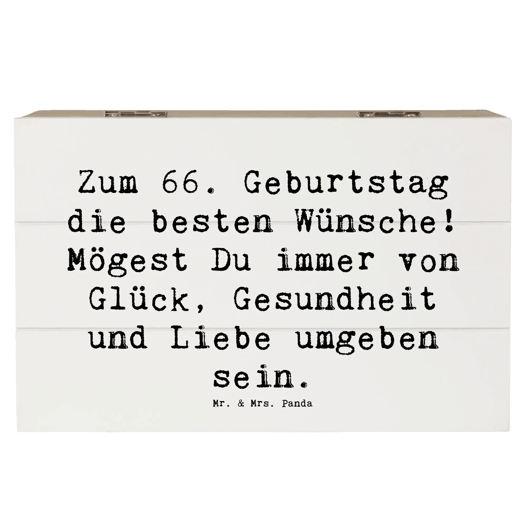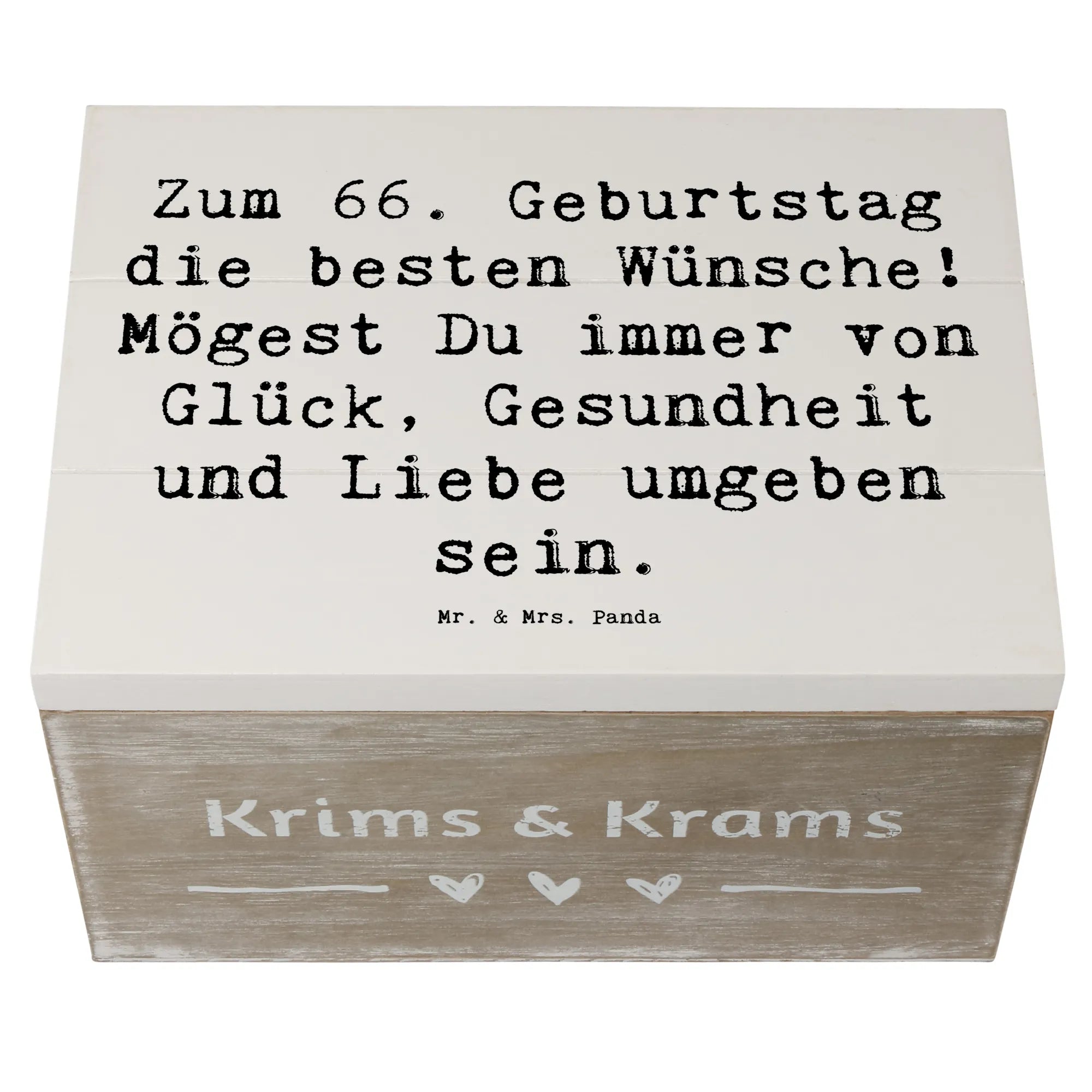 Die Holzkiste "Zum 66. Geburtstag die besten Wünsche! Mögest Du immer von Glück, Gesundheit und Liebe umgeben sein." von Mr. & Mrs. Panda ist das perfekte Geschenk für einen ganz besonderen Menschen an einem ganz besonderen Tag. Diese liebevoll gestaltete Kiste ist nicht nur eine wunderschöne Deko-Idee, sondern auch ein praktischer Aufbewahrungsort für all die wundervollen Schätze, die wir im Leben sammeln. Ob Erinnerungen aus der Kindheit, Fotos, Briefe oder andere Kostbarkeiten – alles findet seinen Platz in dieser eindrucksvollen Schatzkiste.