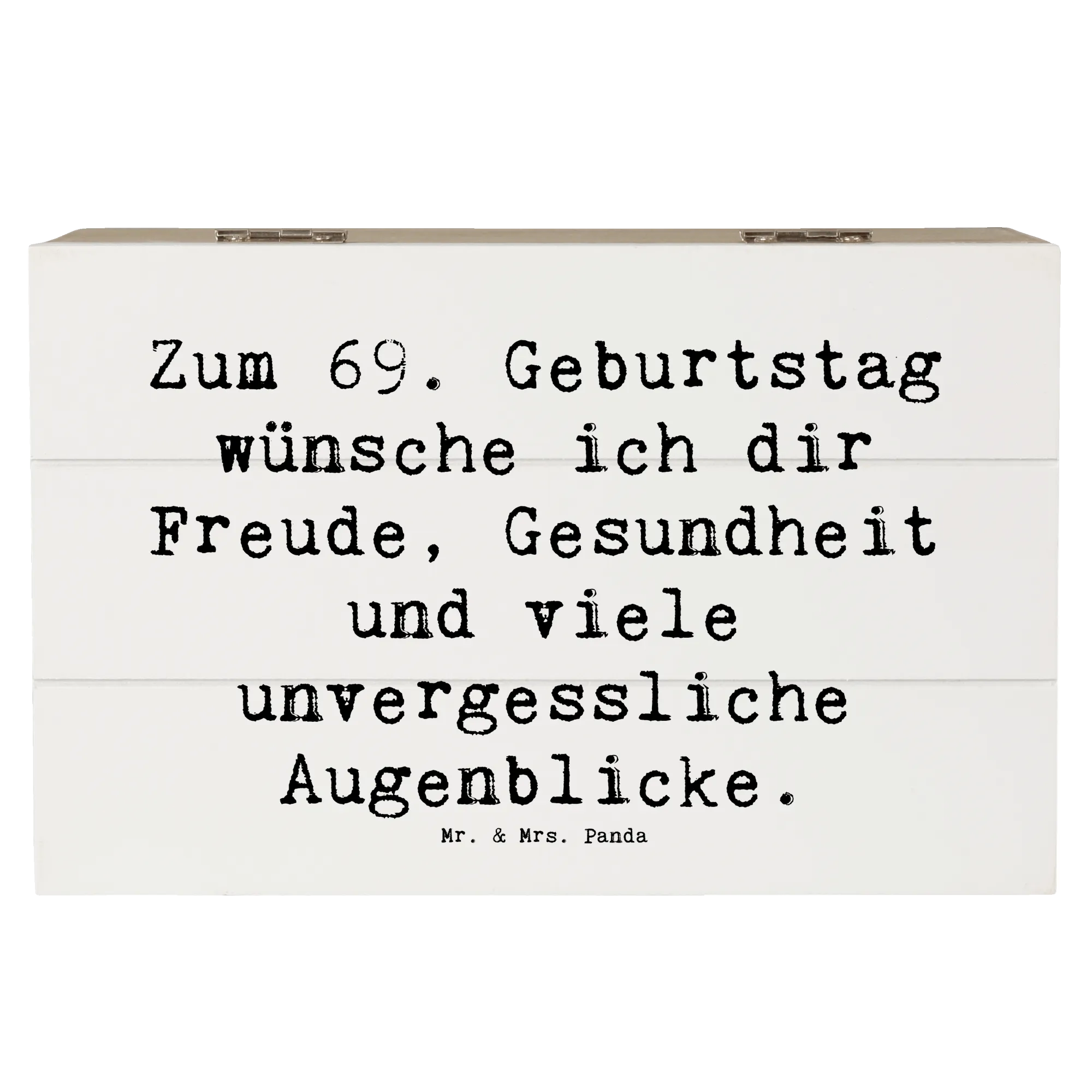 Die wunderschöne Holzkiste von Mr. & Mrs. Panda zum 69. Geburtstag ist das perfekte Geschenk für alle, die diesen besonderen Tag auf eine einzigartige Weise feiern möchten. Diese liebevoll gestaltete Erinnerungskiste bietet nicht nur Platz für kleine Schätze und Erinnerungen, sondern bringt auch eine Portion Lebensfreude ins Zuhause des Beschenkten. Ob als Aufbewahrungsort für Fotos, Erinnerungsstücke aus der Kindheit oder einfach als stilvolle Dekokiste – hier findet alles seinen Platz!