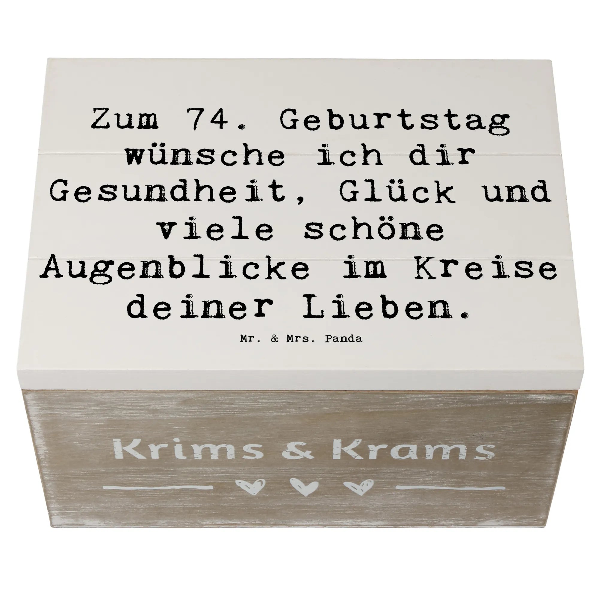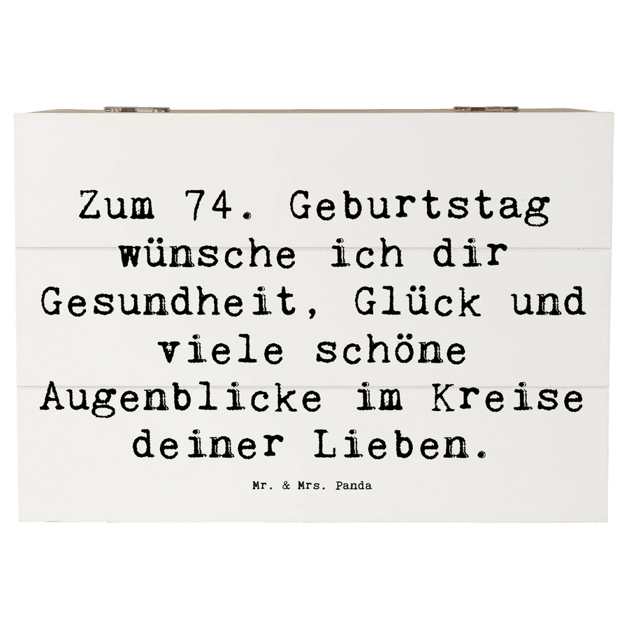 Die wunderschöne Holzkiste von Mr. & Mrs. Panda ist das perfekte Geschenk für den 74. Geburtstag! 🎉 Mit ihrem liebevollen Design und dem aufgedruckten Spruch "Zum 74. Geburtstag wünsche ich dir Gesundheit, Glück und viele schöne Augenblicke im Kreise deiner Lieben" ist diese Kiste nicht nur ein Eyecatcher, sondern auch ein wahres Aufbewahrungstalent.