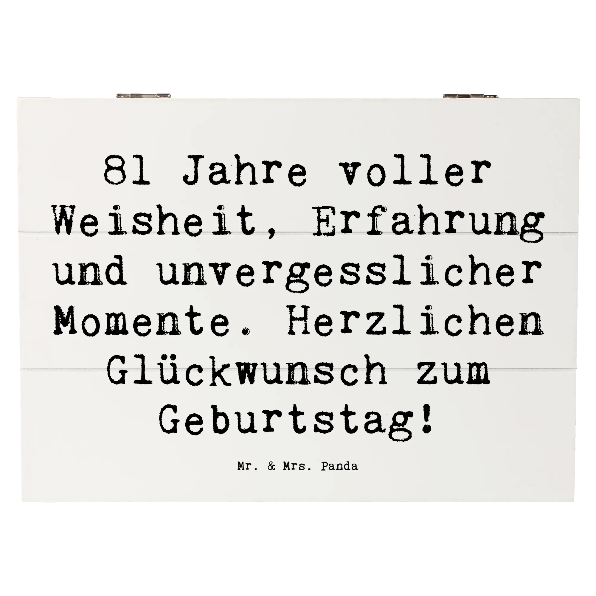 Verschenke diese Erinnerungskiste an einen lieben Menschen, um ihm zu zeigen, wie wichtig er dir ist. Mit dieser Dekokiste kannst du nicht nur Geschenke kreativ verpacken, sondern auch schöne Erinnerungen für die Zukunft aufbewahren. Lass Dich inspirieren von der Lebensfreude und der Kreativität, die die Produkte von Mr. & Mrs. Panda auszeichnen. Mache den 81. Geburtstag zu etwas ganz Besonderem mit dieser einzigartigen Holzkiste – ein Geschenk, das garantiert in Erinnerung bleibt und für einen strahlenden „Happy Birthday“-Moment sorgt.
