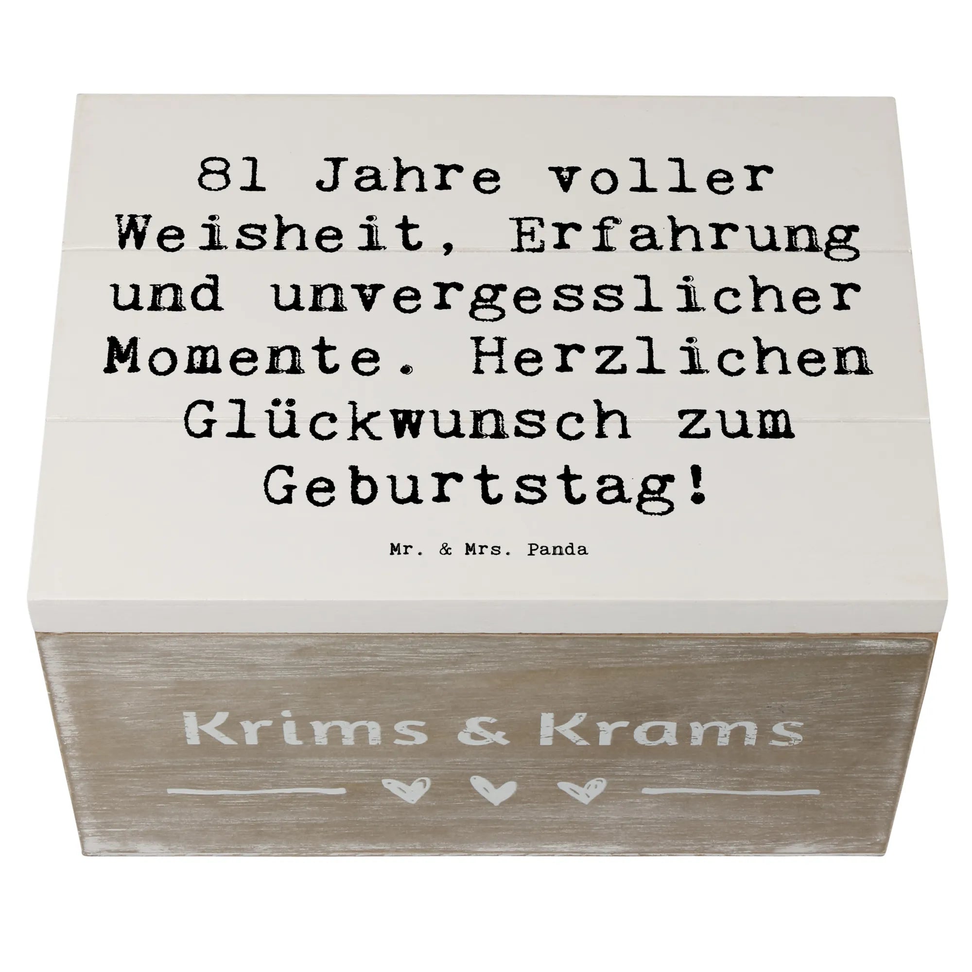 Entdecke die zauberhafte Holzkiste von Mr. & Mrs. Panda, die das perfekte Geschenk für den 81. Geburtstag ist! Diese wunderschöne Erinnerungskiste ist nicht nur ein echter Blickfang, sondern bietet auch viel Platz für all die besonderen Schätze aus einem erfüllten Leben.