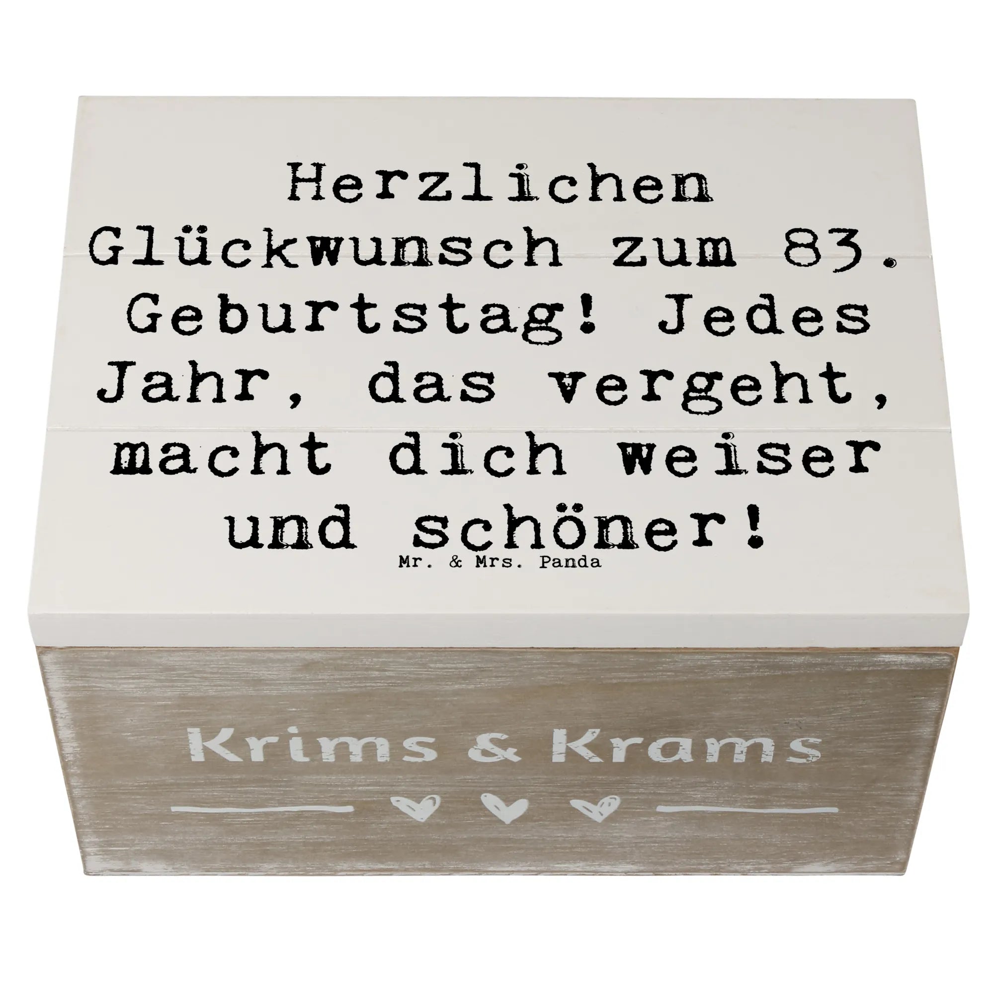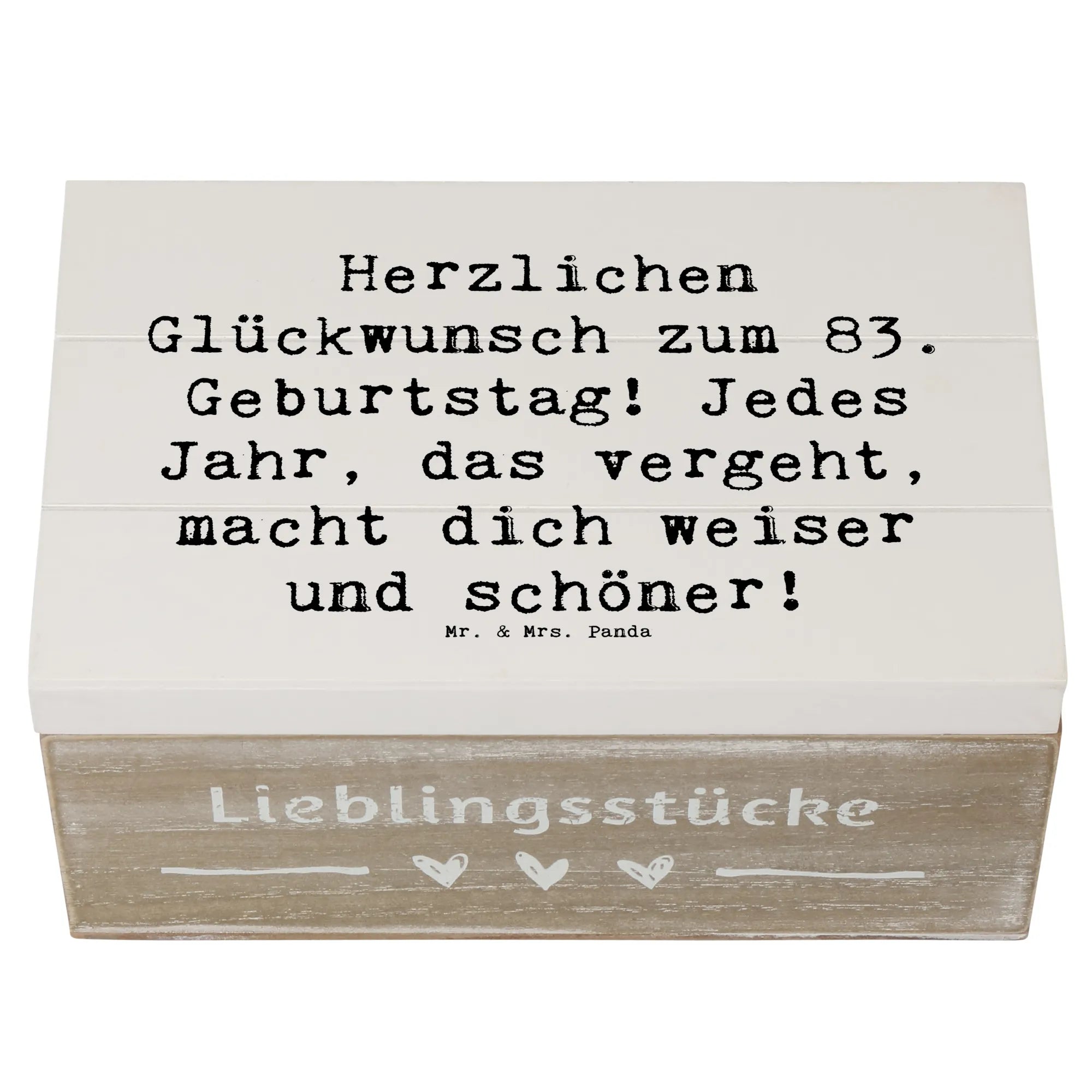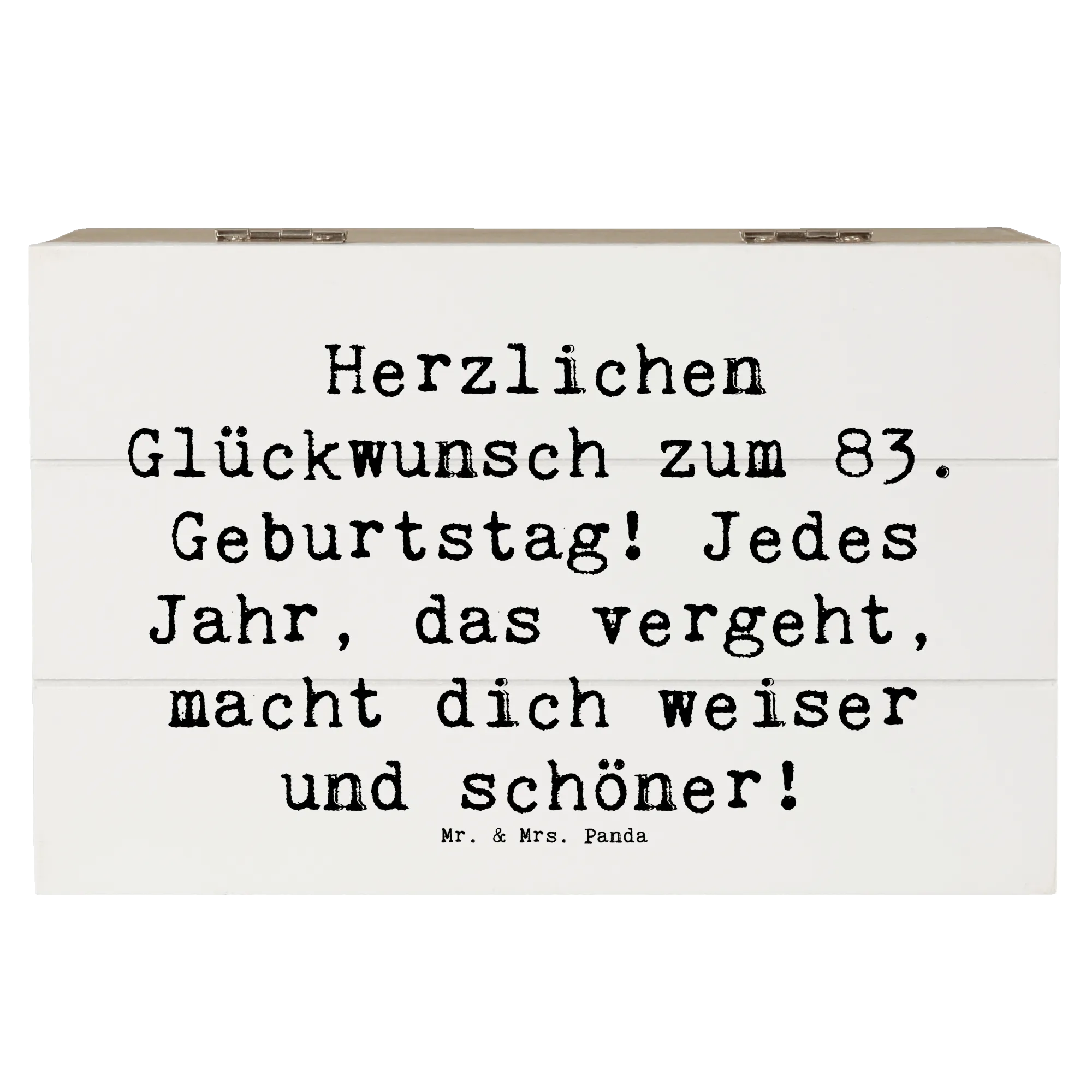 Die wunderschöne Holzkiste von Mr. & Mrs. Panda ist das perfekte Geschenk für jeden, der seinen 83. Geburtstag feiert! Mit dem liebevollen Slogan "Herzlichen Glückwunsch zum 83. Geburtstag! Jedes Jahr, das vergeht, macht dich weiser und schöner!" ist diese Erinnerungskiste nicht nur eine stilvolle Dekoration, sondern auch ein ganz persönlicher Aufbewahrungsort für die schönsten Schätze und Erinnerungen.