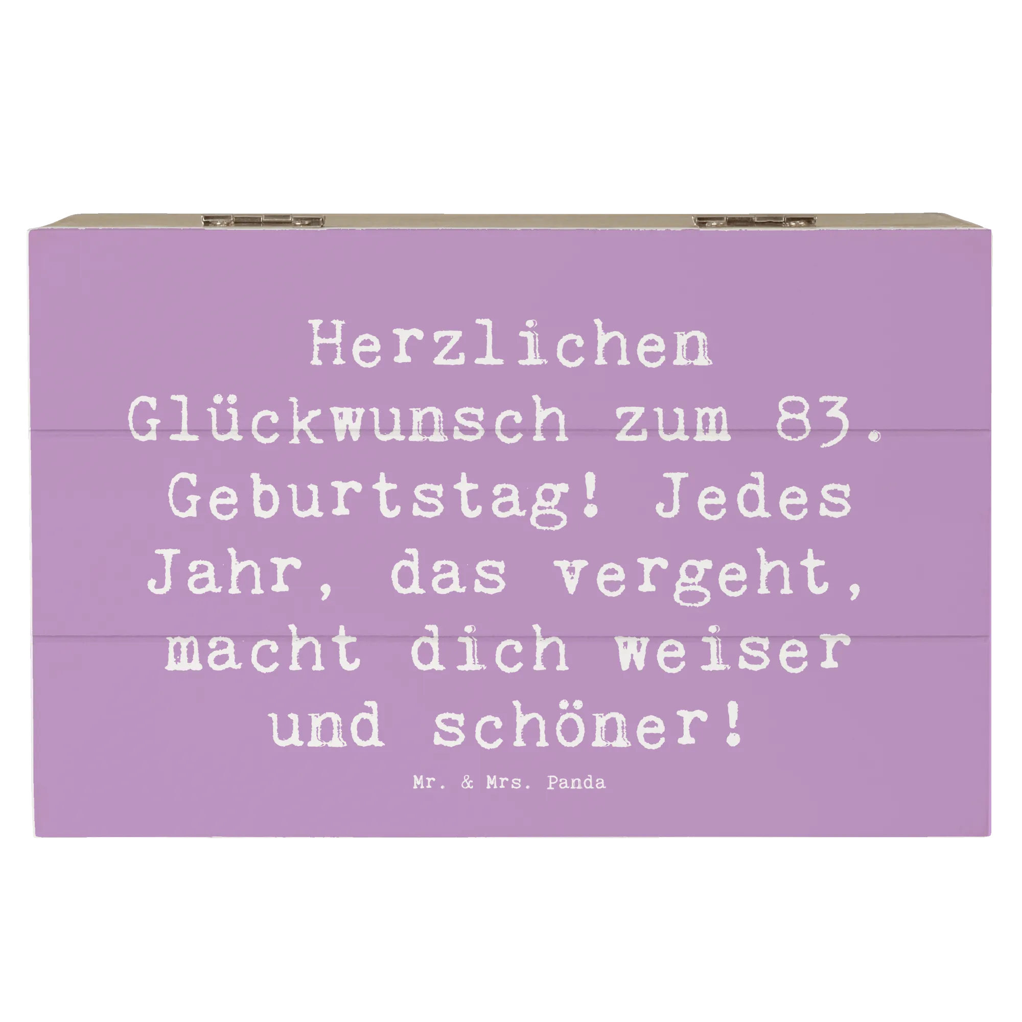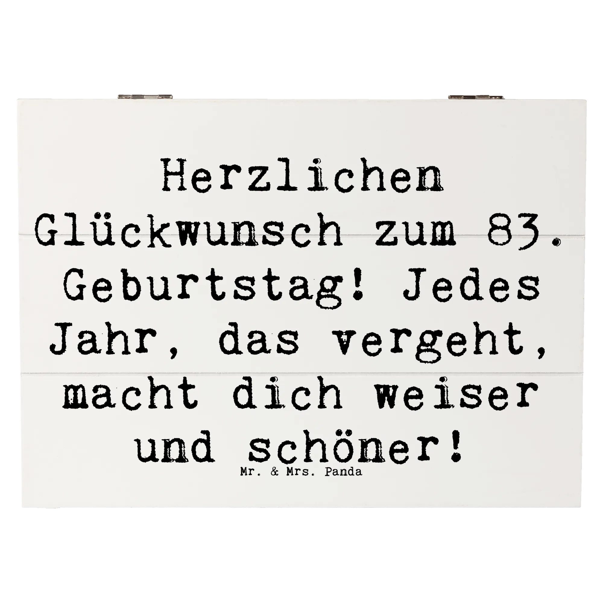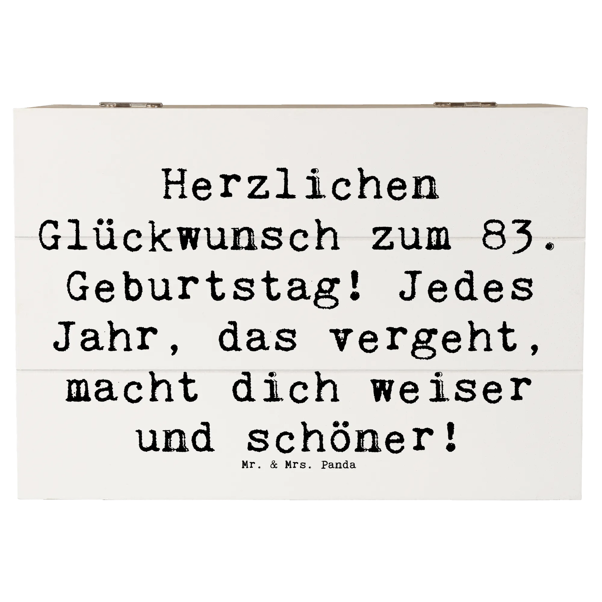 Die wunderschöne Holzkiste von Mr. & Mrs. Panda ist das perfekte Geschenk für jeden, der seinen 83. Geburtstag feiert! Mit dem liebevollen Slogan "Herzlichen Glückwunsch zum 83. Geburtstag! Jedes Jahr, das vergeht, macht dich weiser und schöner!" ist diese Erinnerungskiste nicht nur eine stilvolle Dekoration, sondern auch ein ganz persönlicher Aufbewahrungsort für die schönsten Schätze und Erinnerungen.