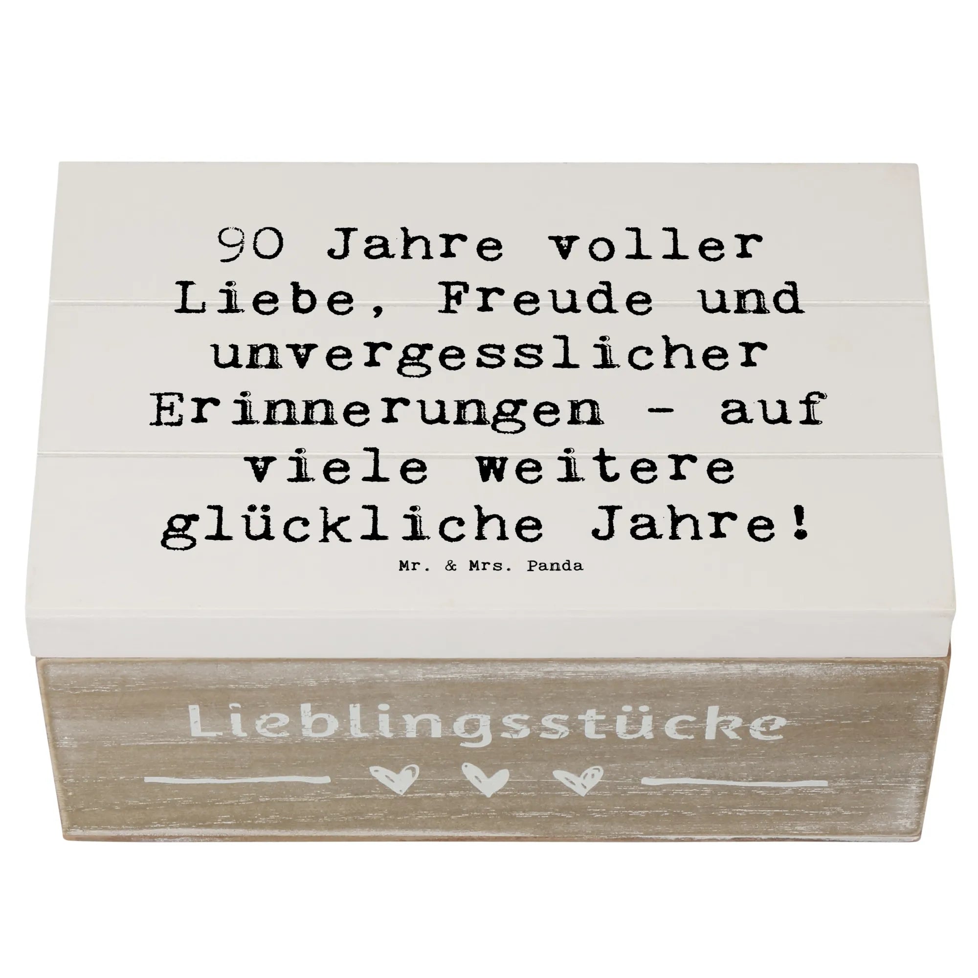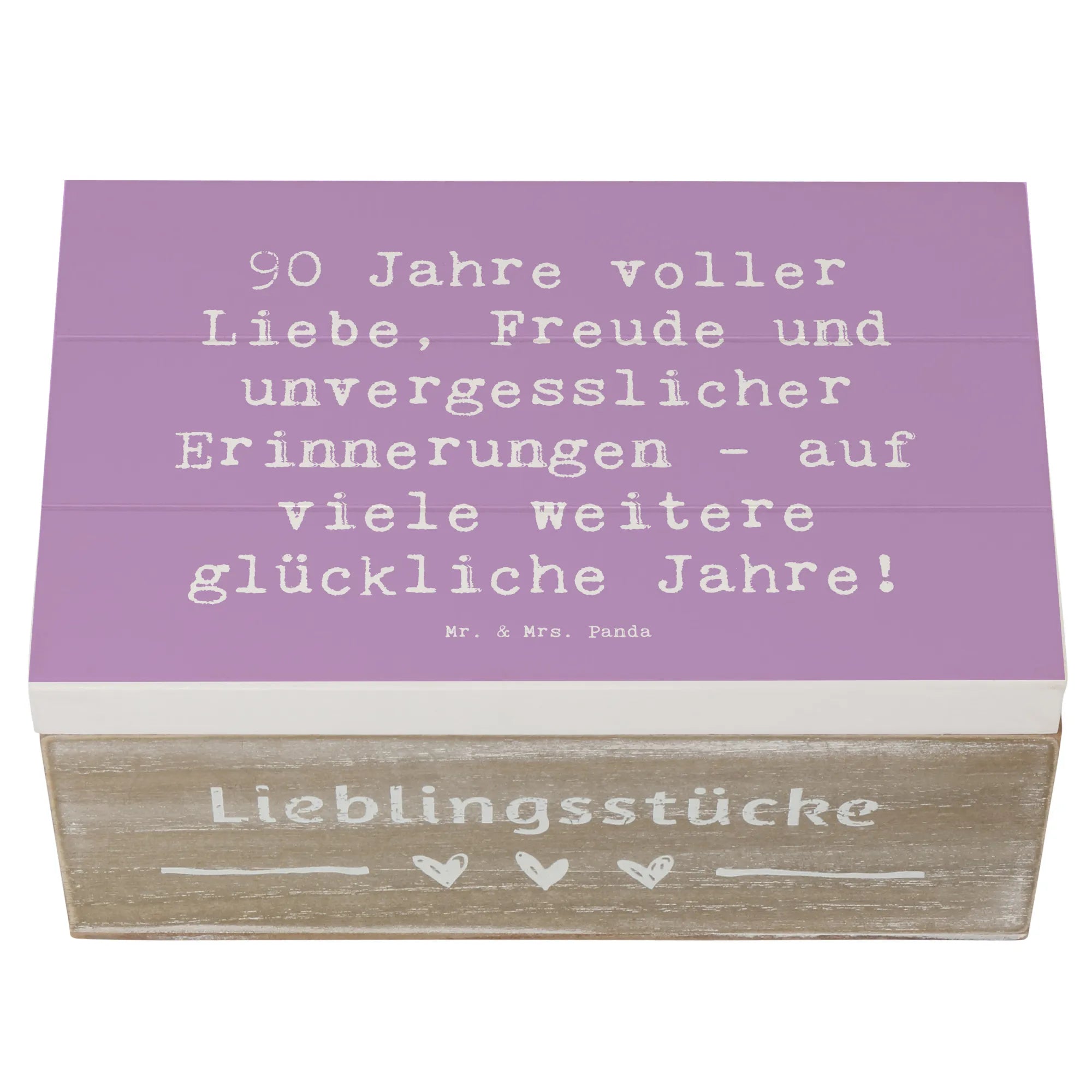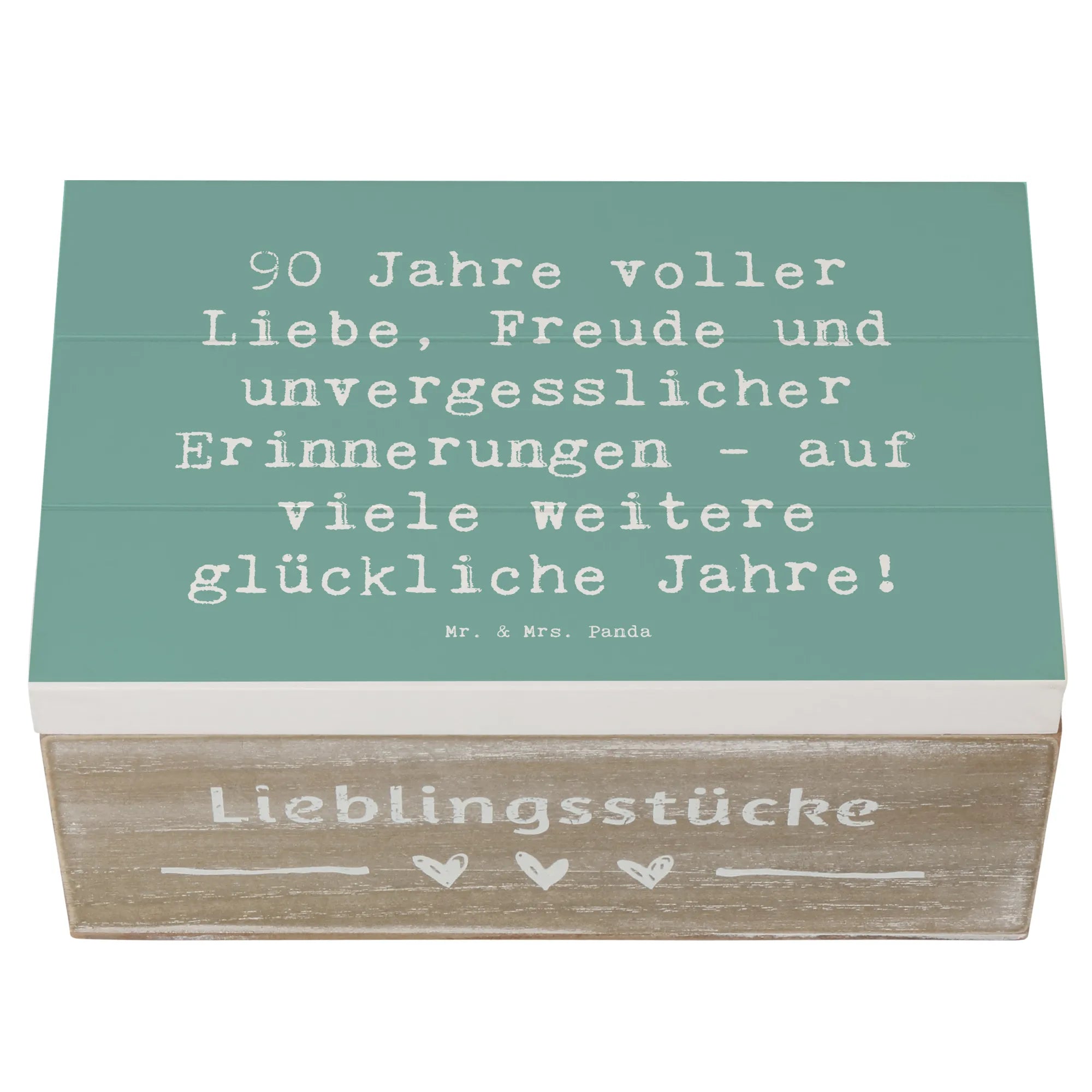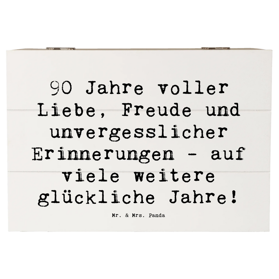 Die wunderschöne Holzkiste von Mr. & Mrs. Panda zum 90. Geburtstag ist ein ganz besonderes Geschenk. Sie trägt den liebevollen Spruch: '90 Jahre voller Liebe, Freude und unvergesslicher Erinnerungen - auf viele weitere glückliche Jahre!' und ist ideal, um all die wertvollen Schätze und Erinnerungen eines lange gelebten Lebens aufzubewahren.