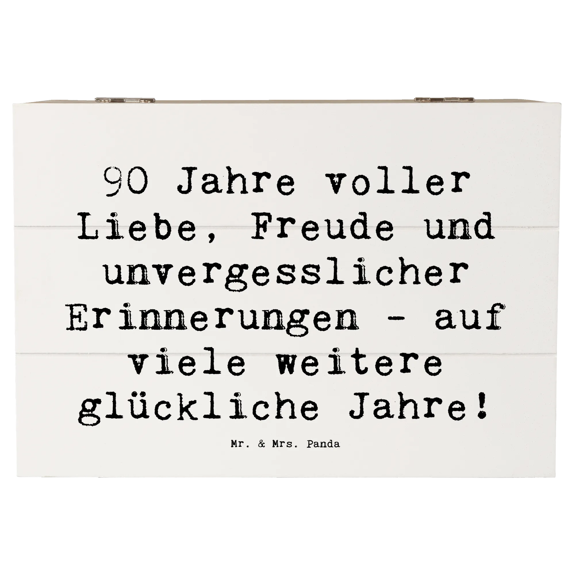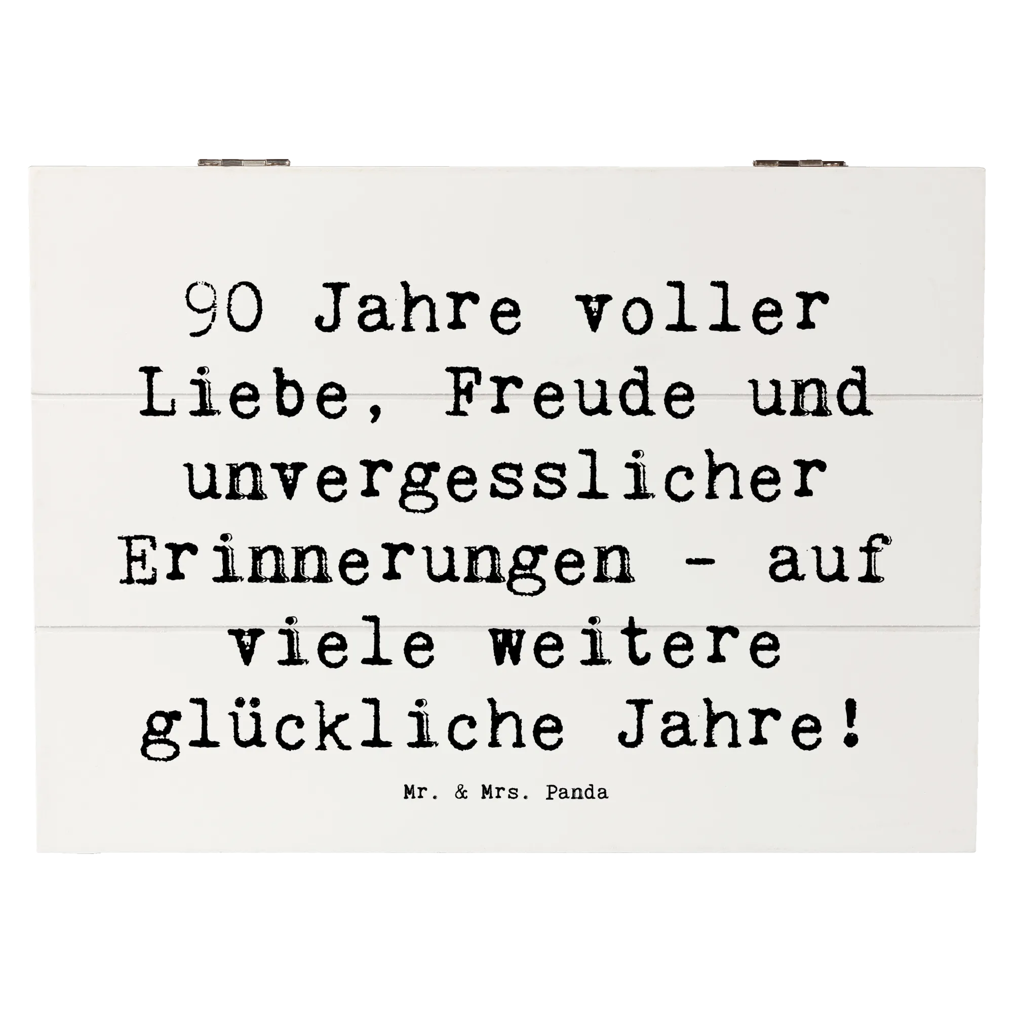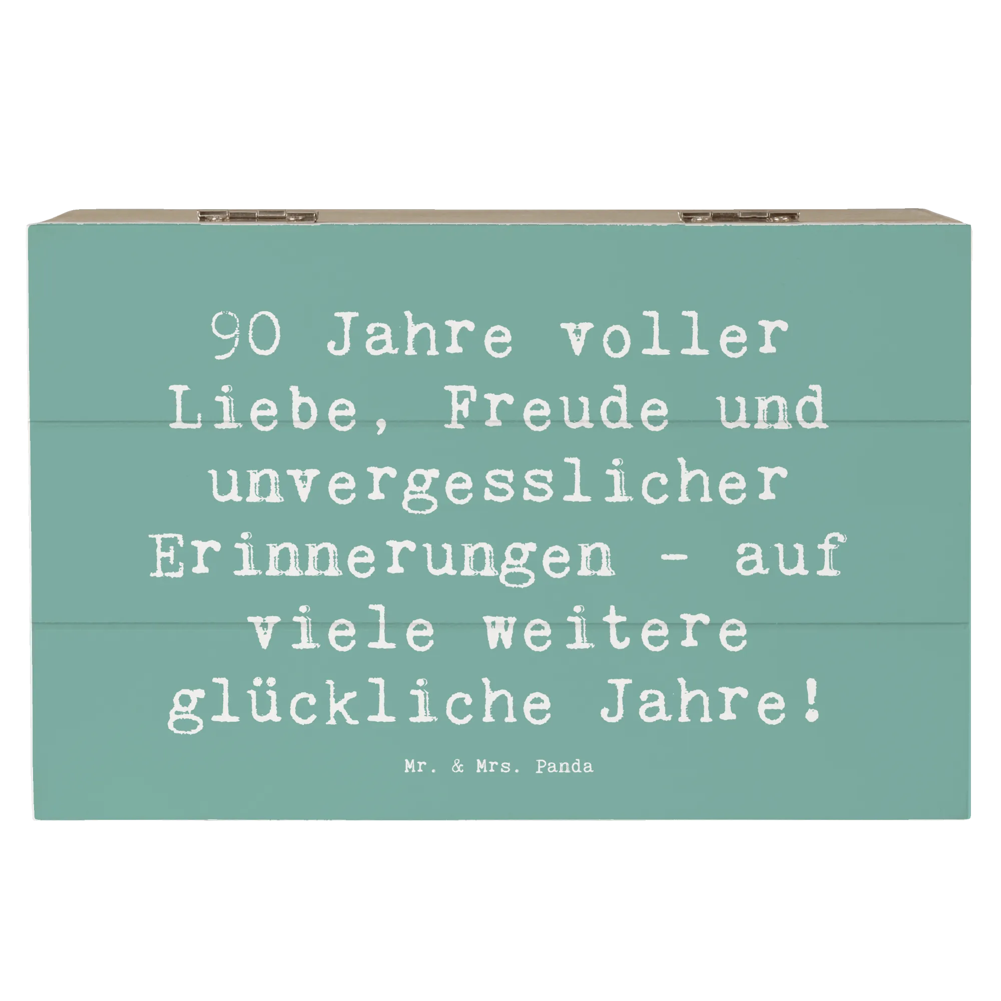 Die wunderschöne Holzkiste von Mr. & Mrs. Panda zum 90. Geburtstag ist ein ganz besonderes Geschenk. Sie trägt den liebevollen Spruch: '90 Jahre voller Liebe, Freude und unvergesslicher Erinnerungen - auf viele weitere glückliche Jahre!' und ist ideal, um all die wertvollen Schätze und Erinnerungen eines lange gelebten Lebens aufzubewahren.