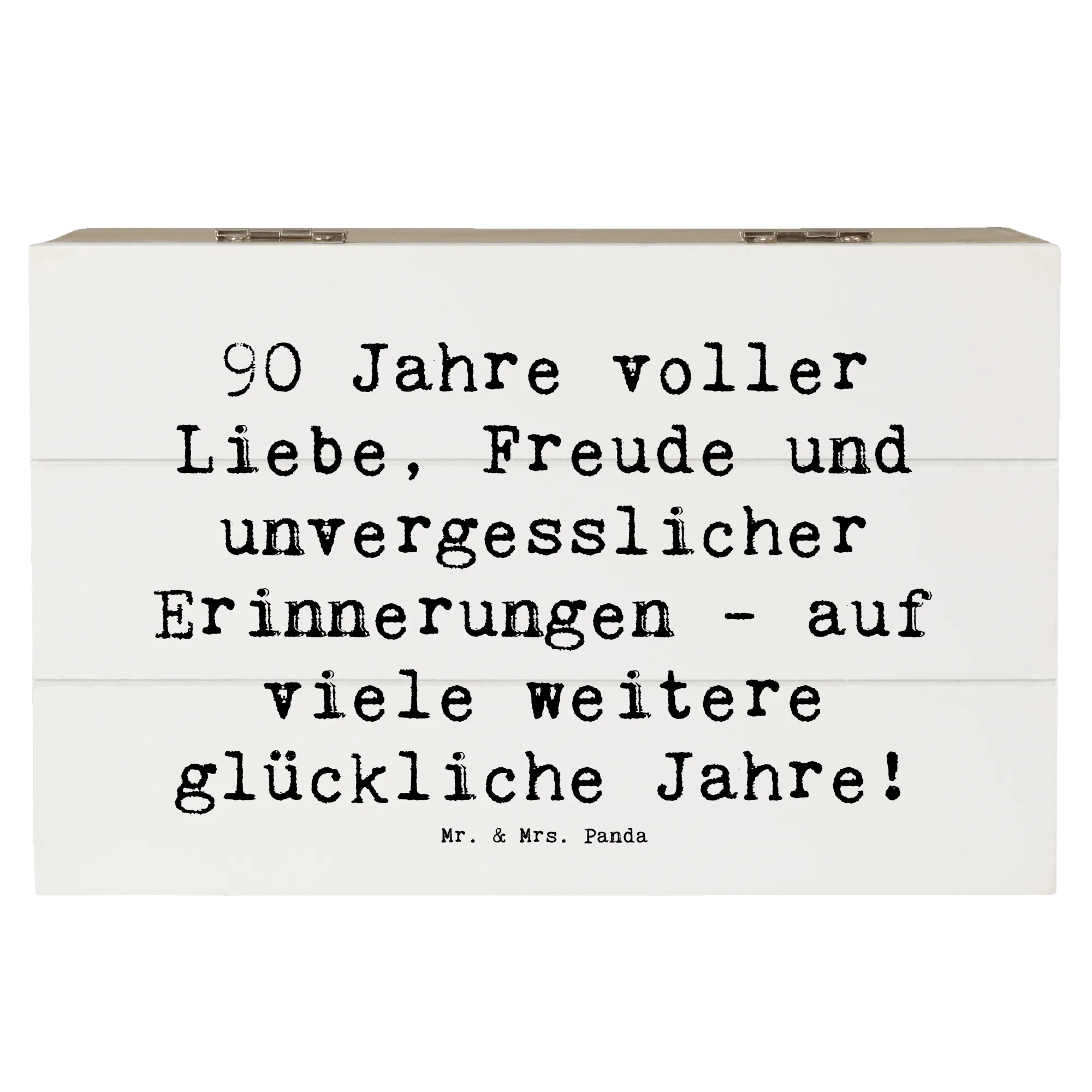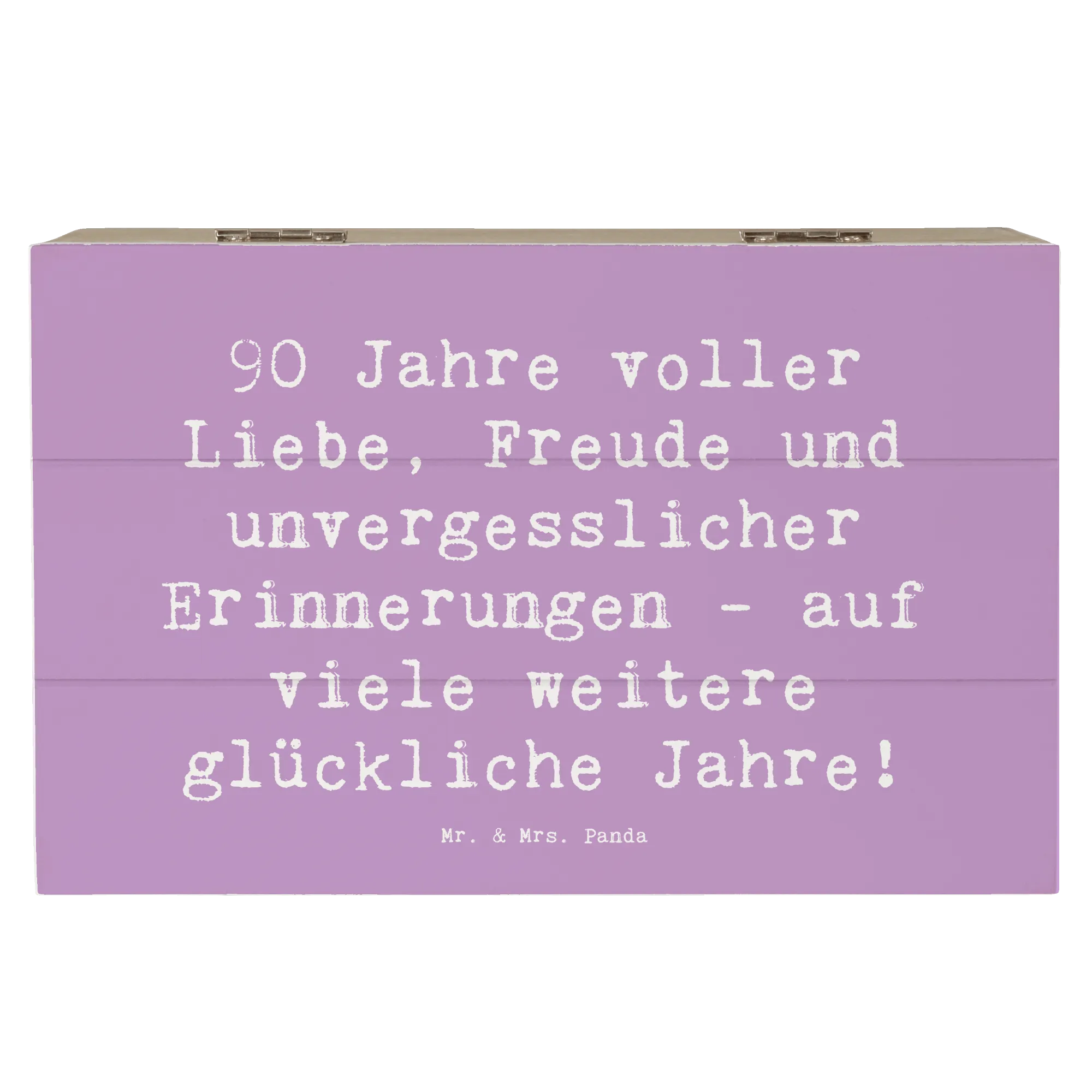 Die Motive und Sprüche von Mr. & Mrs. Panda sind nicht nur süß, sondern auch bedeutungsvoll. Mit dem Satz '90 Jahre voller Liebe, Freude und unvergesslicher Erinnerungen - auf viele weitere glückliche Jahre!' wird diese Holzkiste zum emotionalen Highlight jeder Geburtstagsfeier.