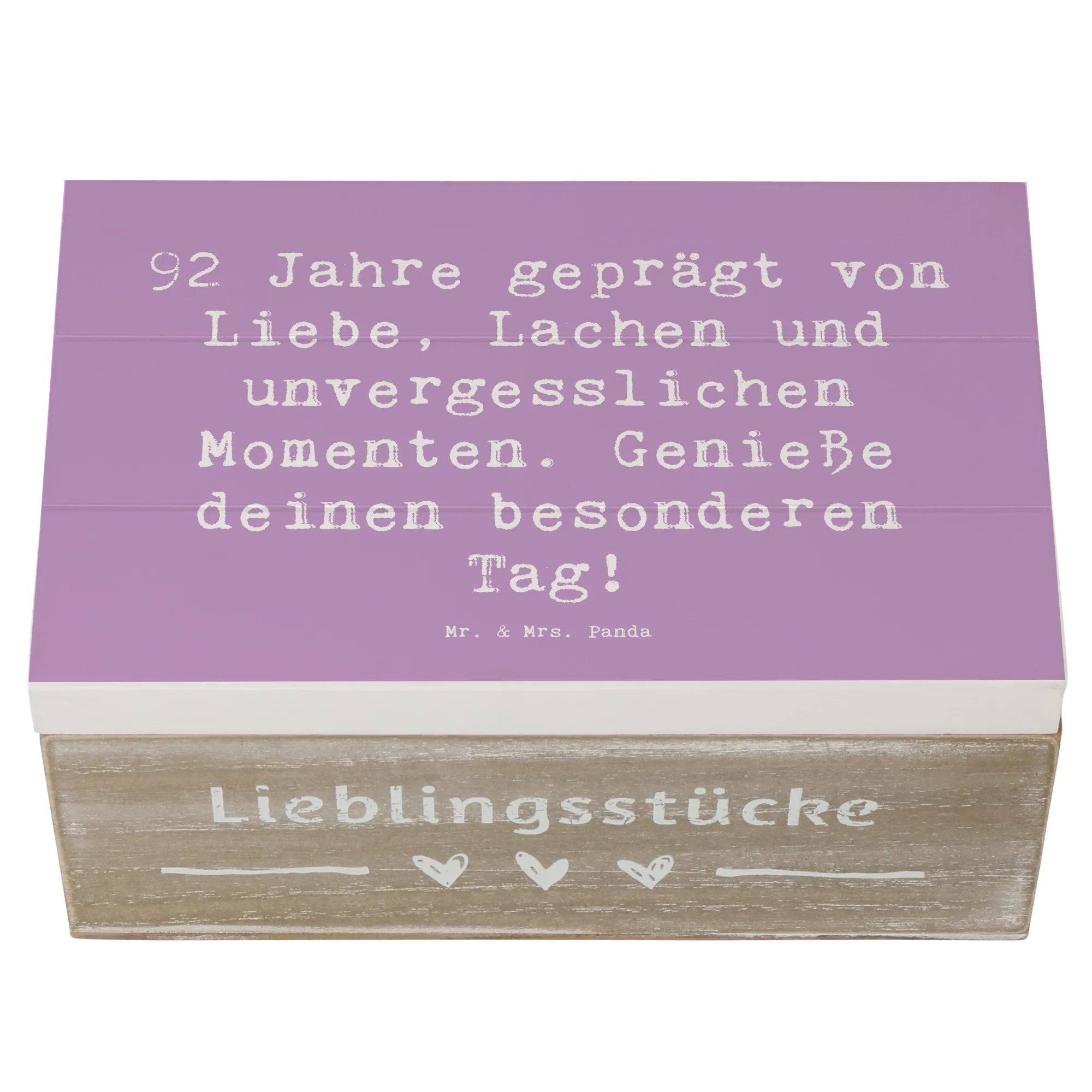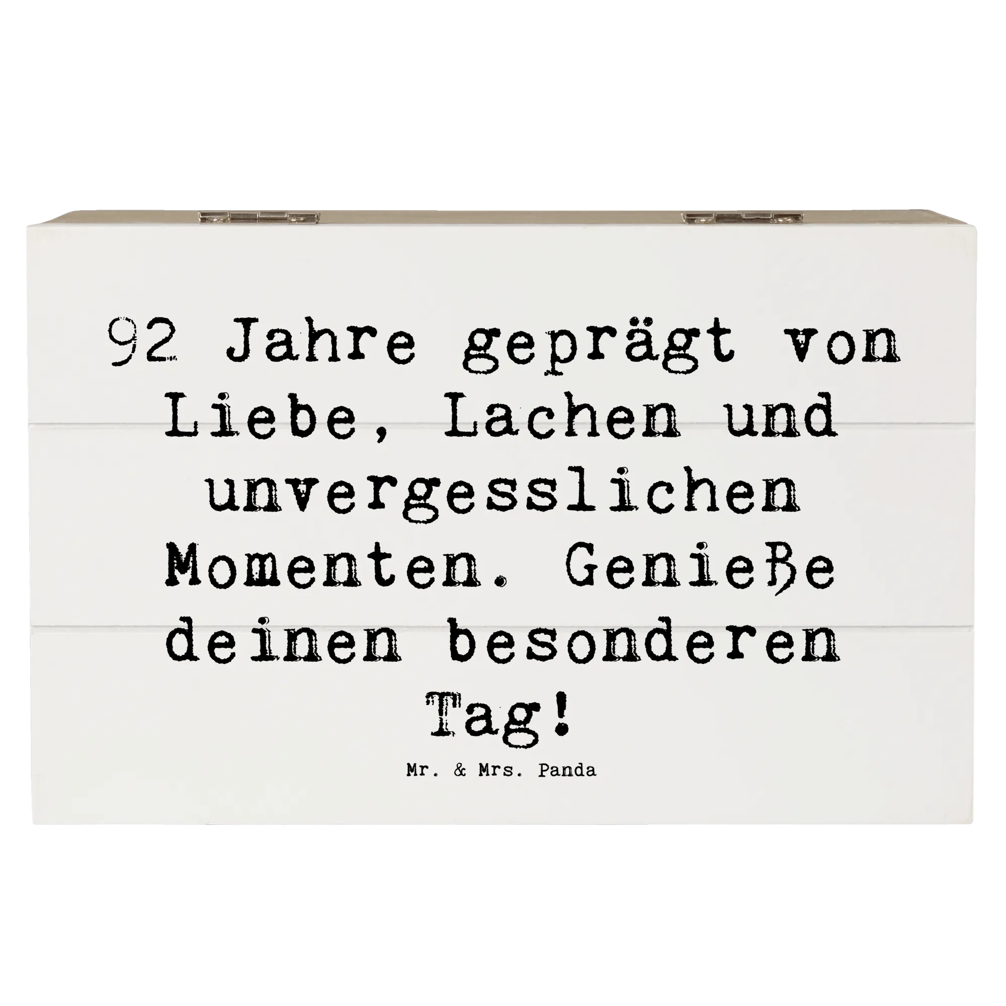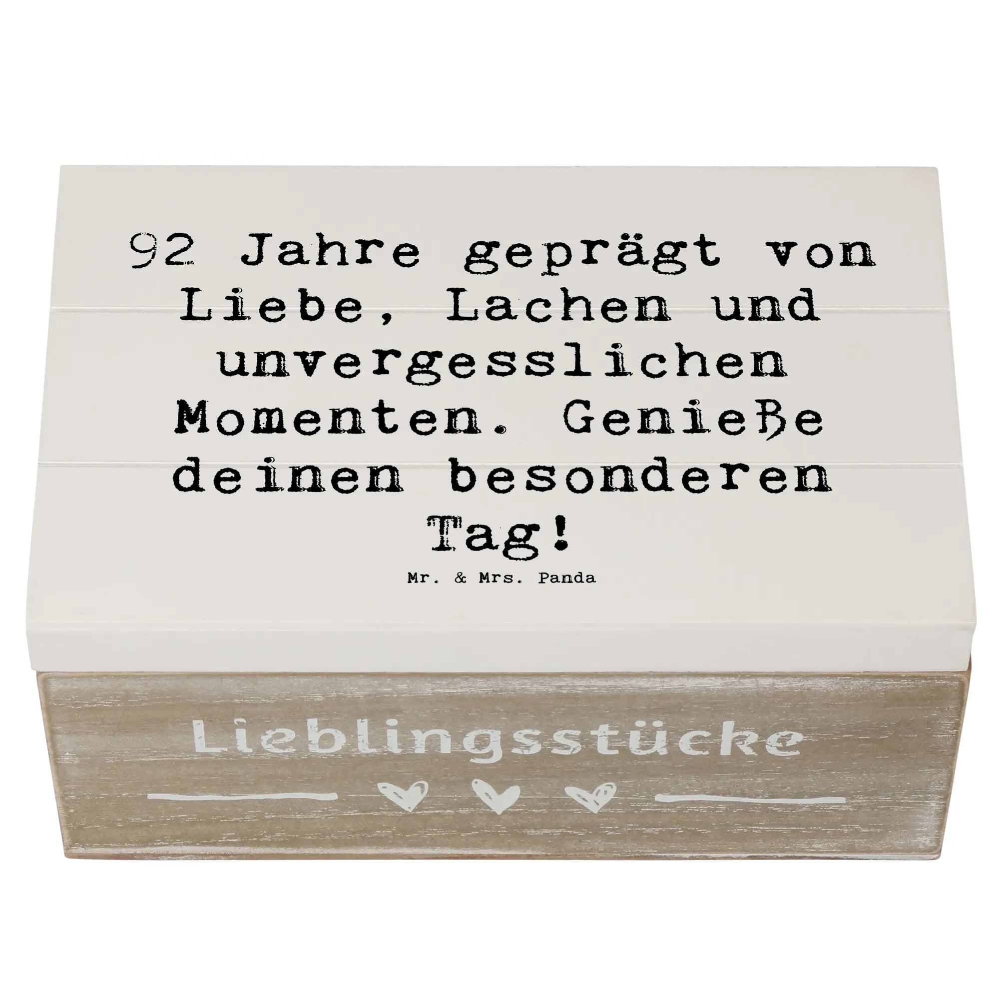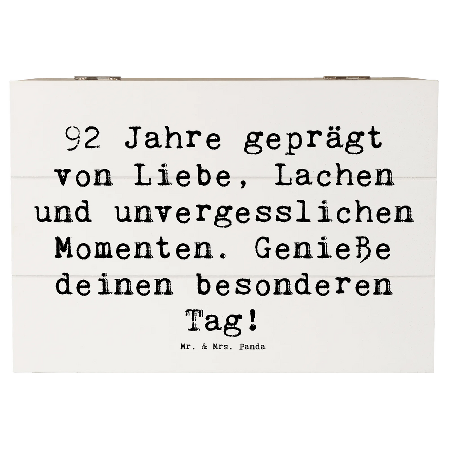 Die wunderschöne Holzkiste von Mr. & Mrs. Panda ist das perfekte Geschenk zum 92. Geburtstag! Sie bringt Freude und Erinnerungen zusammen, in einem stabilen und liebevoll gestalteten Design.