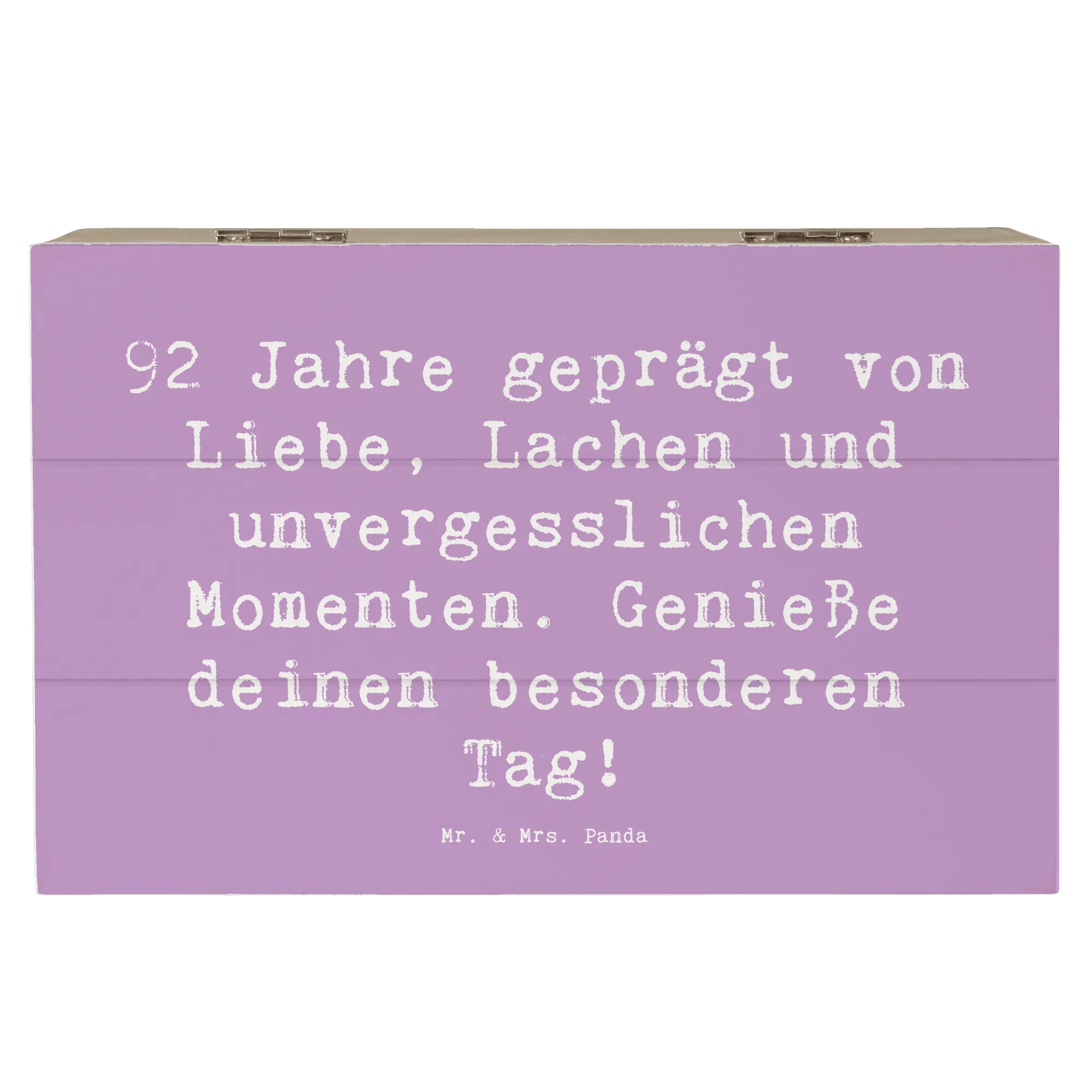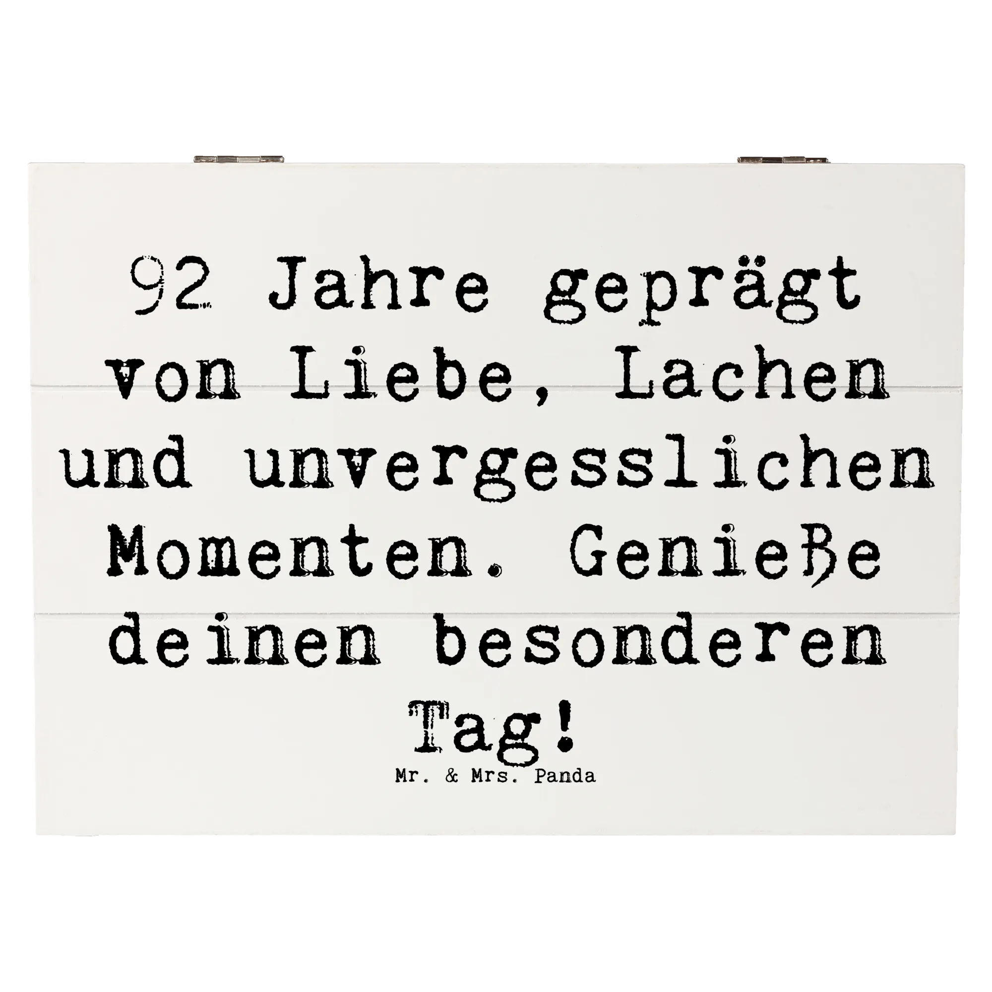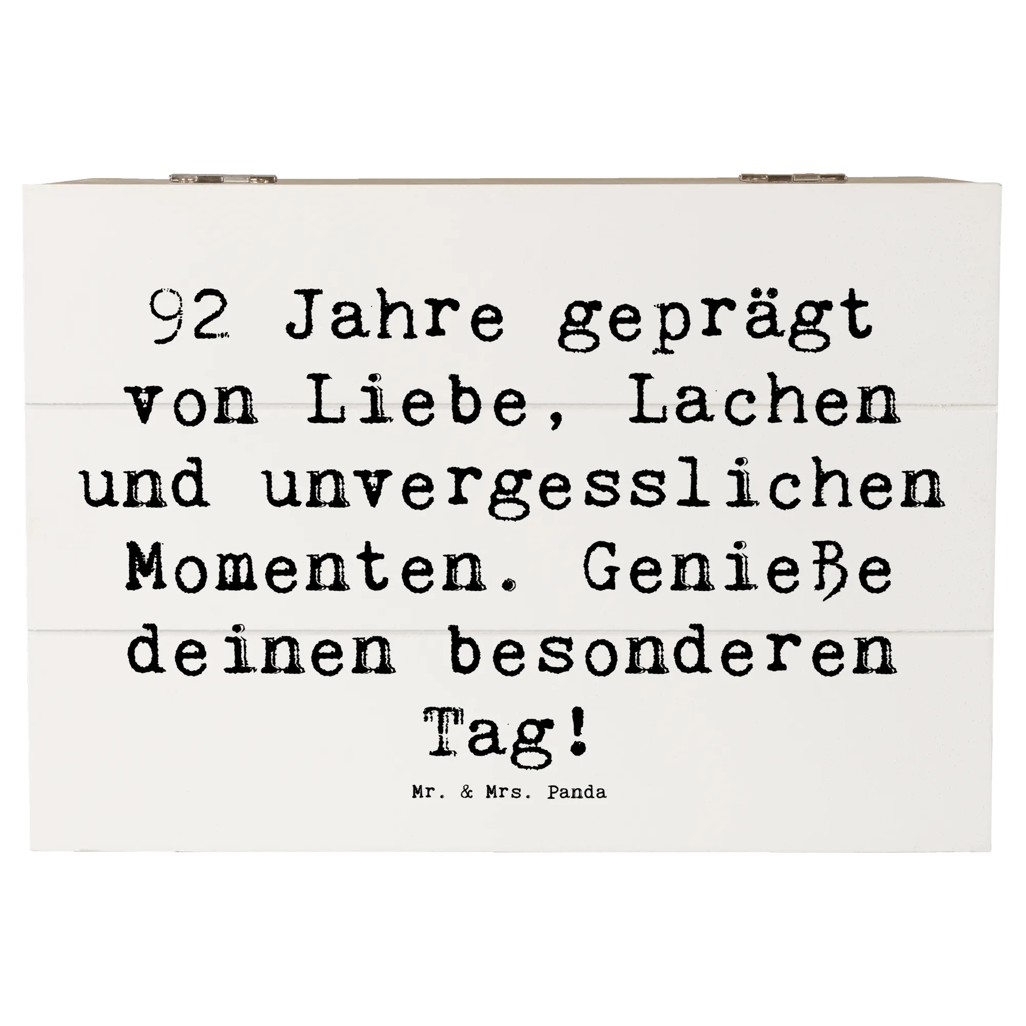 Die wunderschöne Holzkiste von Mr. & Mrs. Panda ist das perfekte Geschenk zum 92. Geburtstag! Sie bringt Freude und Erinnerungen zusammen, in einem stabilen und liebevoll gestalteten Design.
