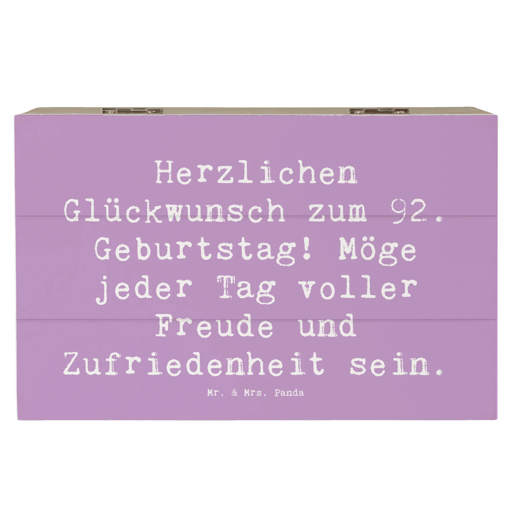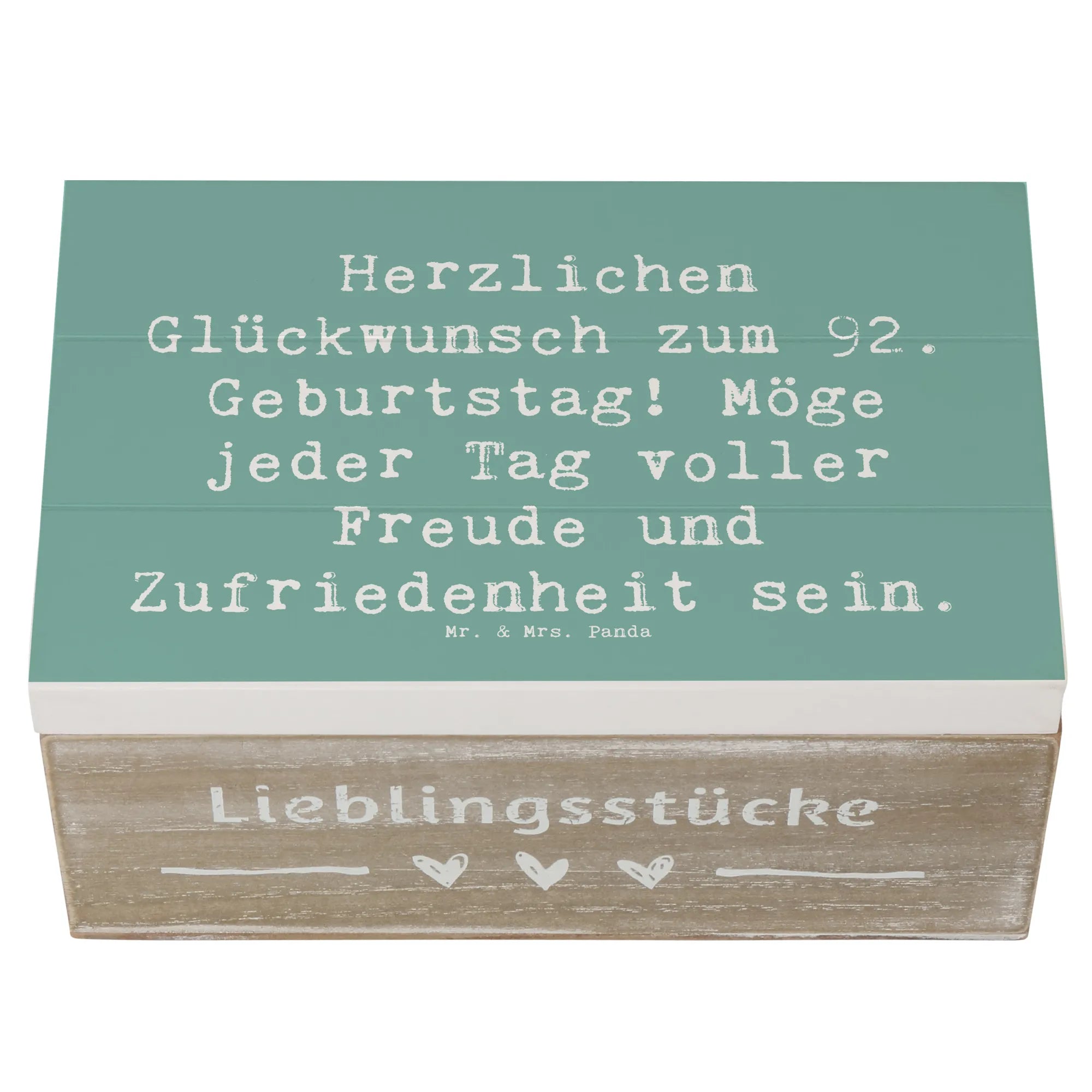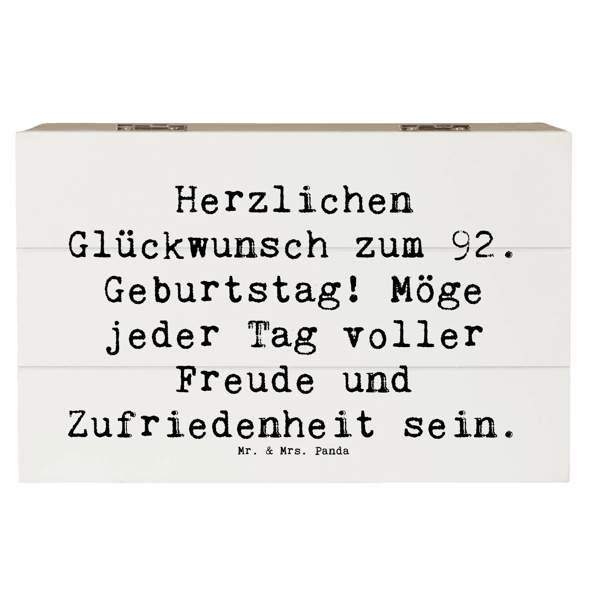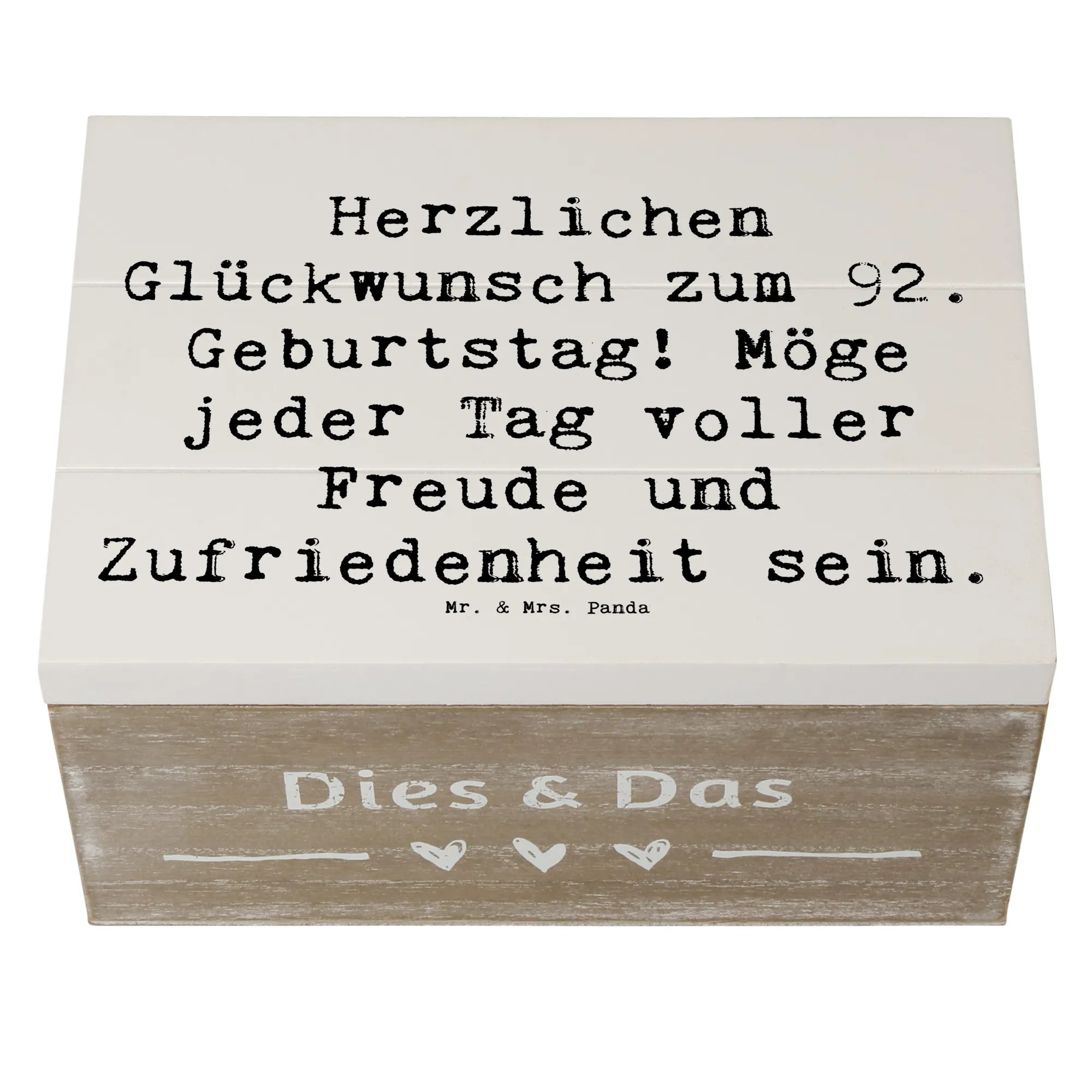 Suchst du nach dem perfekten Geschenk für das Geburtstagskind zum 92. Geburtstag? Unsere wunderschöne Holzkiste von Mr. & Mrs. Panda ist nicht nur ein hübscher Blickfang, sondern auch unglaublich vielseitig! Diese bezaubernde Erinnerungskiste eignet sich hervorragend als Aufbewahrungsort für die schönsten Schätze und Erinnerungen. Ob es sich um Fotos, kleine Geschenke oder bedeutungsvolle Andenken handelt – in dieser Kiste liegt alles sicher und stilvoll verstaut.