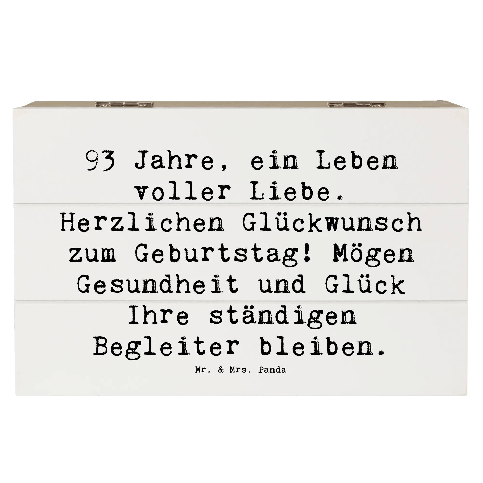 Die wunderschöne Holzkiste von Mr. & Mrs. Panda ist das perfekte Geschenk zum 93. Geburtstag. Mit dem liebevollen Slogan "93 Jahre, ein Leben voller Liebe. Herzlichen Glückwunsch zum Geburtstag! Mögen Gesundheit und Glück Ihre ständigen Begleiter bleiben." verzaubert sie jeden Jubilar.