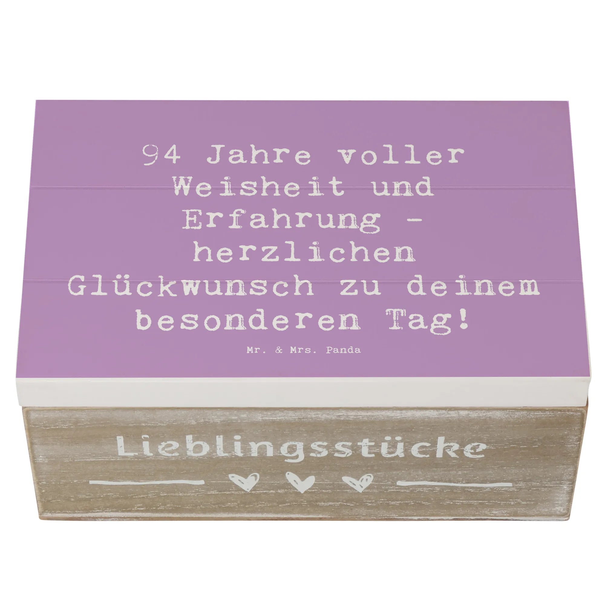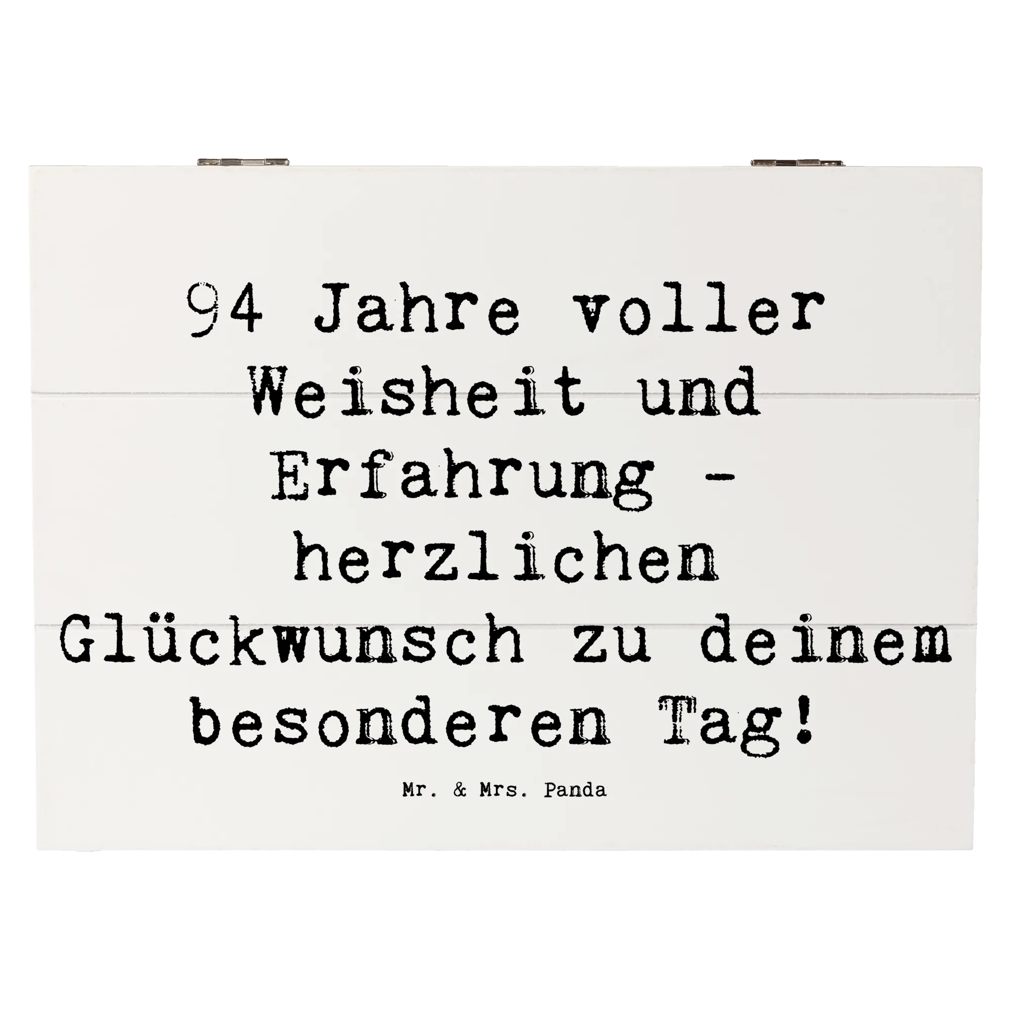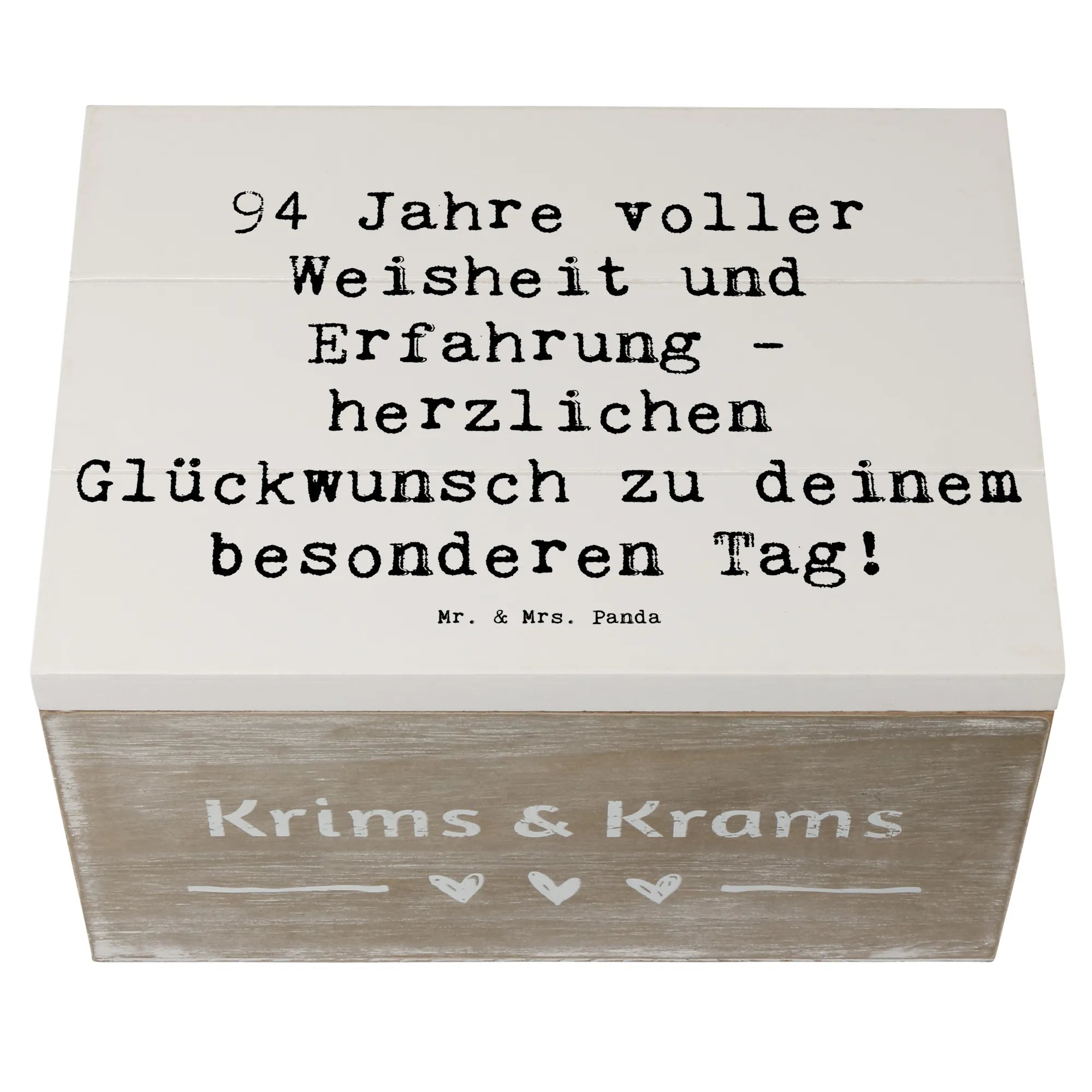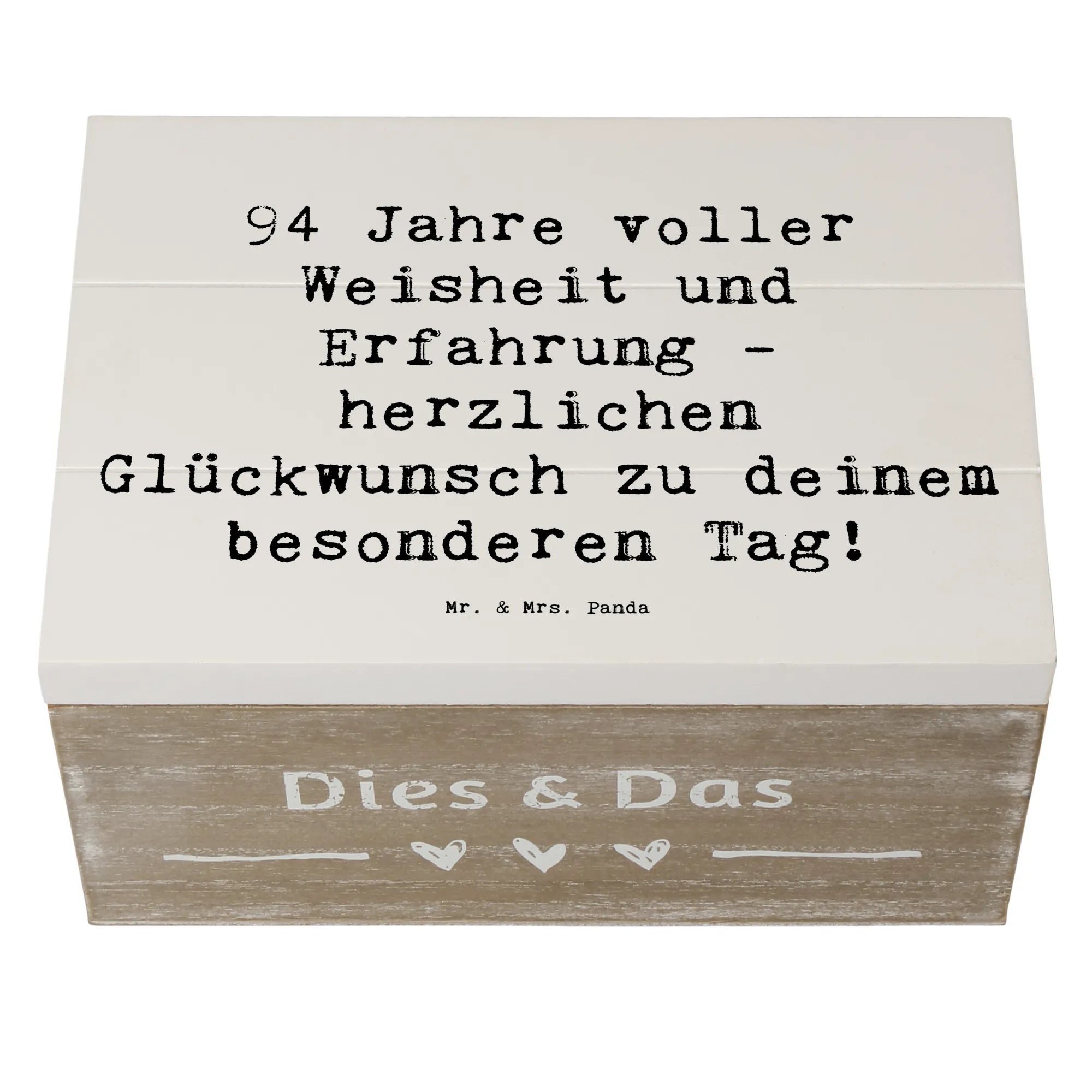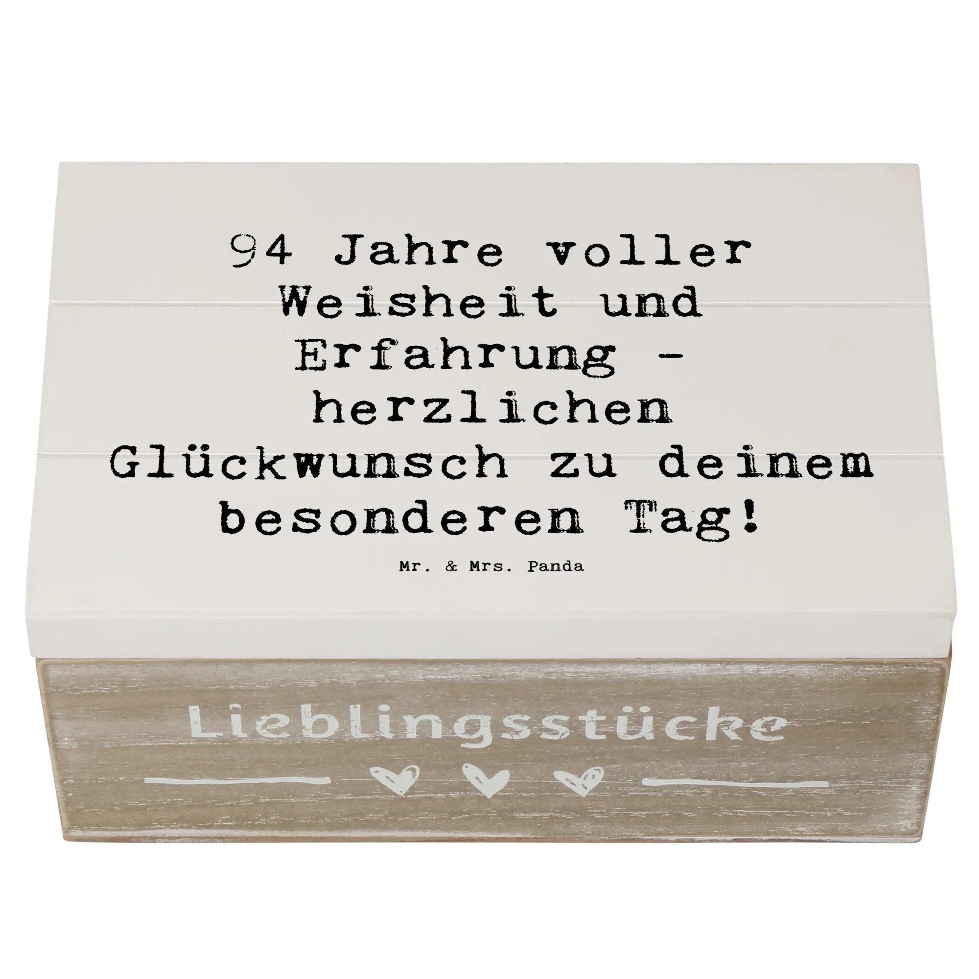 Wenn du auf der Suche nach einem liebevollen, praktischen und schönen Geschenk bist, ist diese Holzkiste von Mr. & Mrs. Panda die perfekte Wahl, um 94 Jahre voller Geschichten zu feiern!