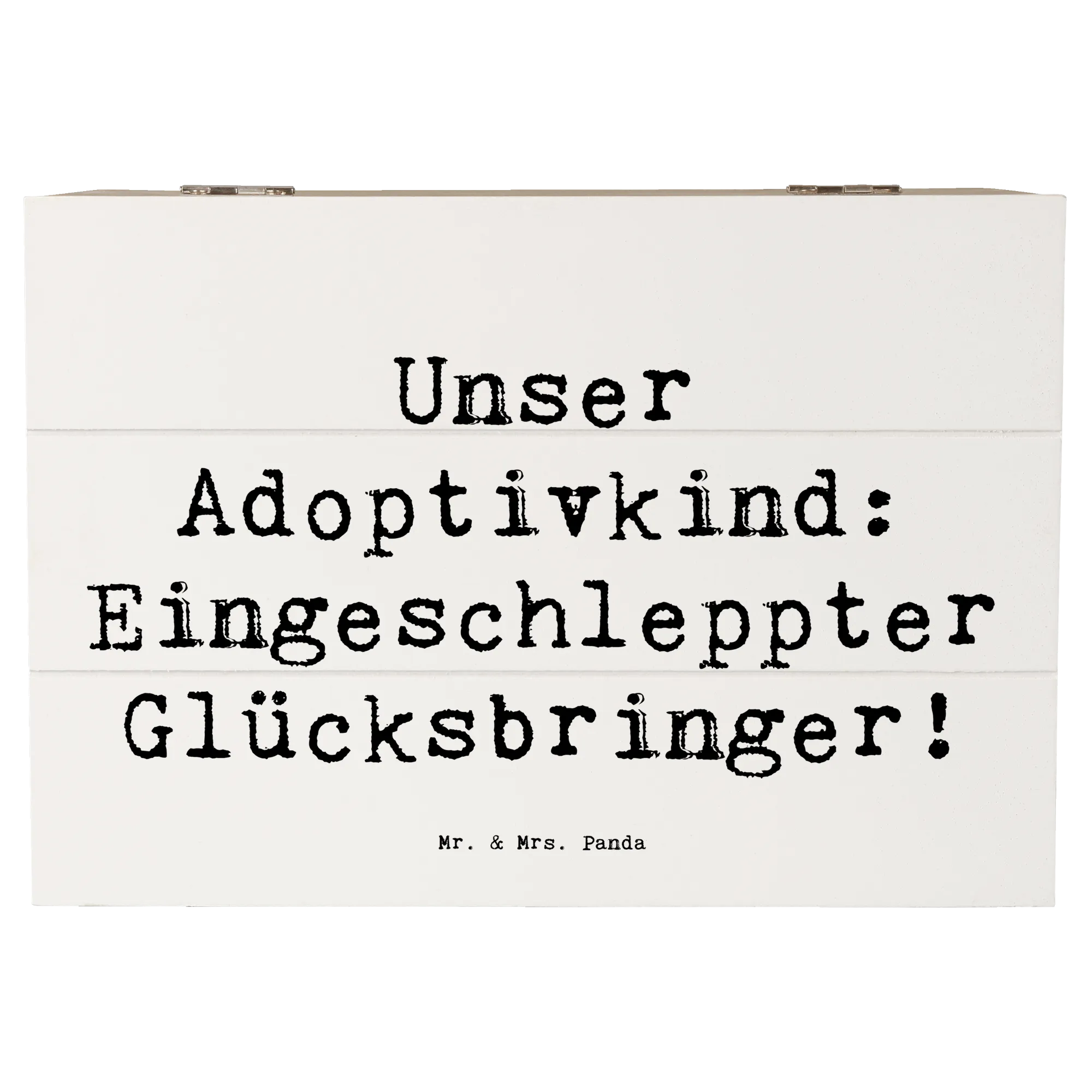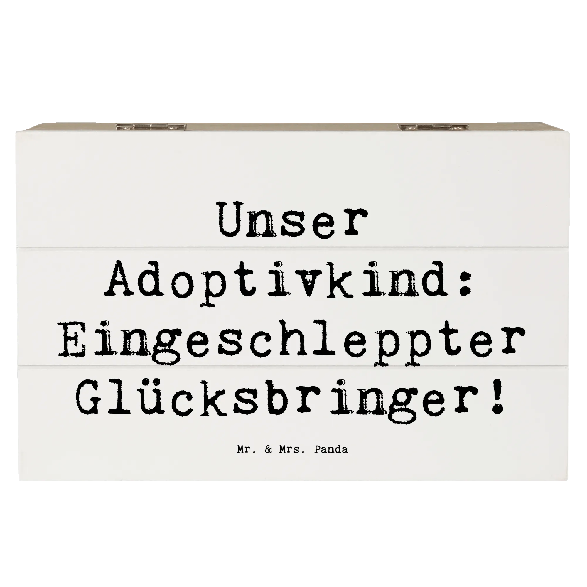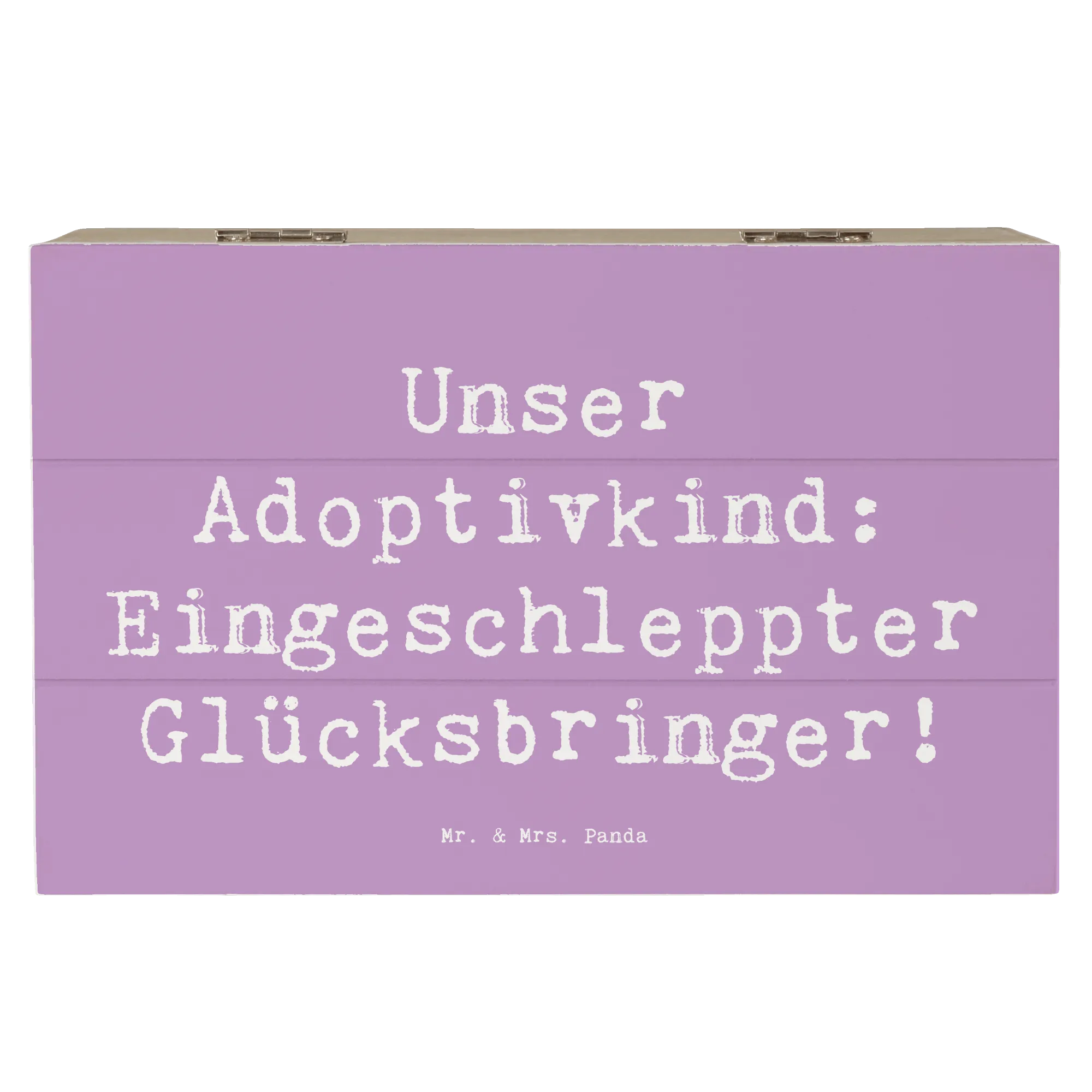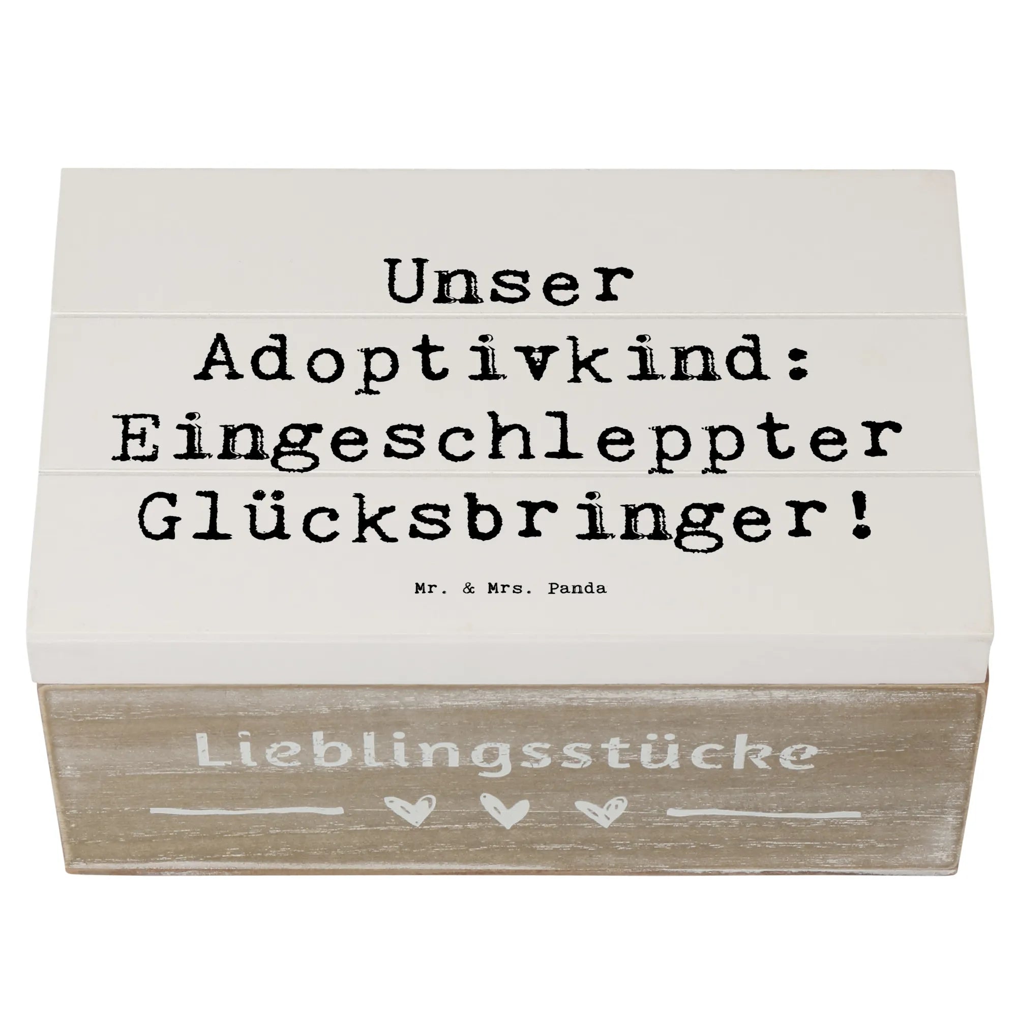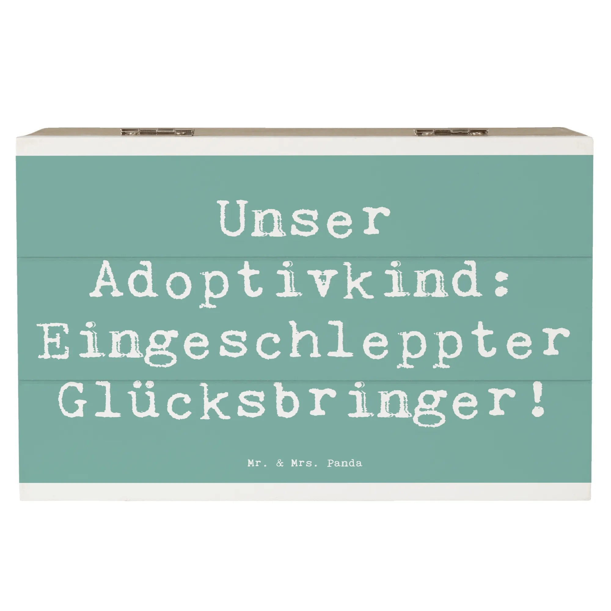 Die wunderschöne Holzkiste von Mr. & Mrs. Panda ist das perfekte Geschenk für alle Adoptiveltern und deren Adoptivkinder. Diese besondere Schatzkiste ist mit dem liebevollen Spruch 'Unser Adoptivkind: Eingeschleppter Glücksbringer!' bedruckt und eignet sich hervorragend als Erinnerungskiste für unwiederbringliche Momente. Sie ist ideal, um all die kleinen Schätze und Überraschungen aufzubewahren, die das Leben mit einem Adoptivkind so besonders machen.
