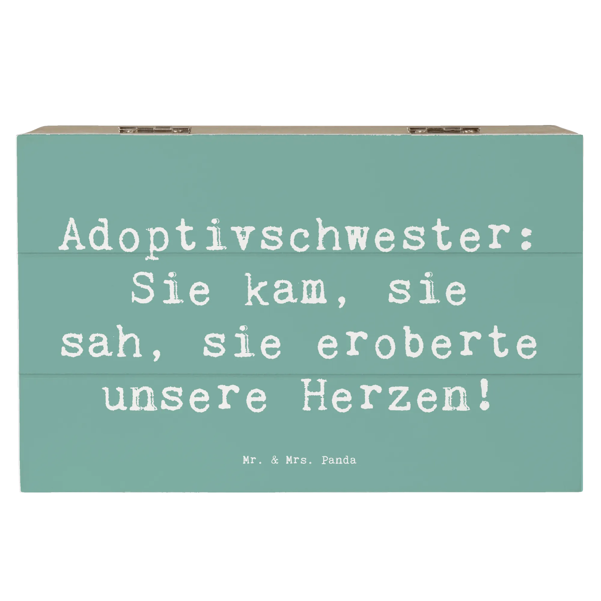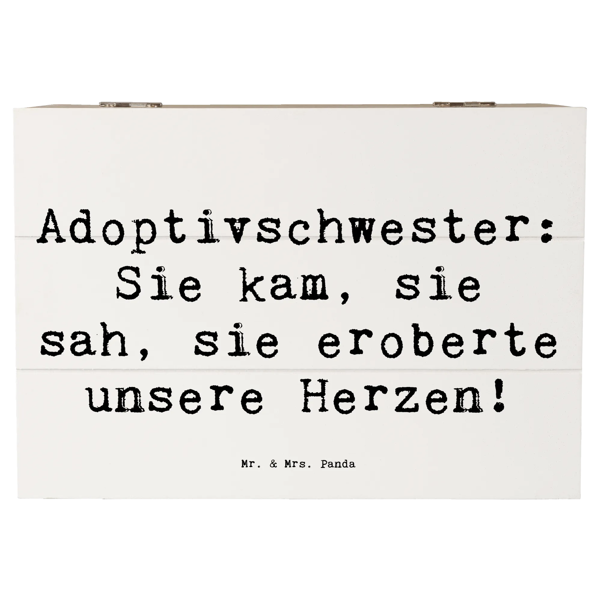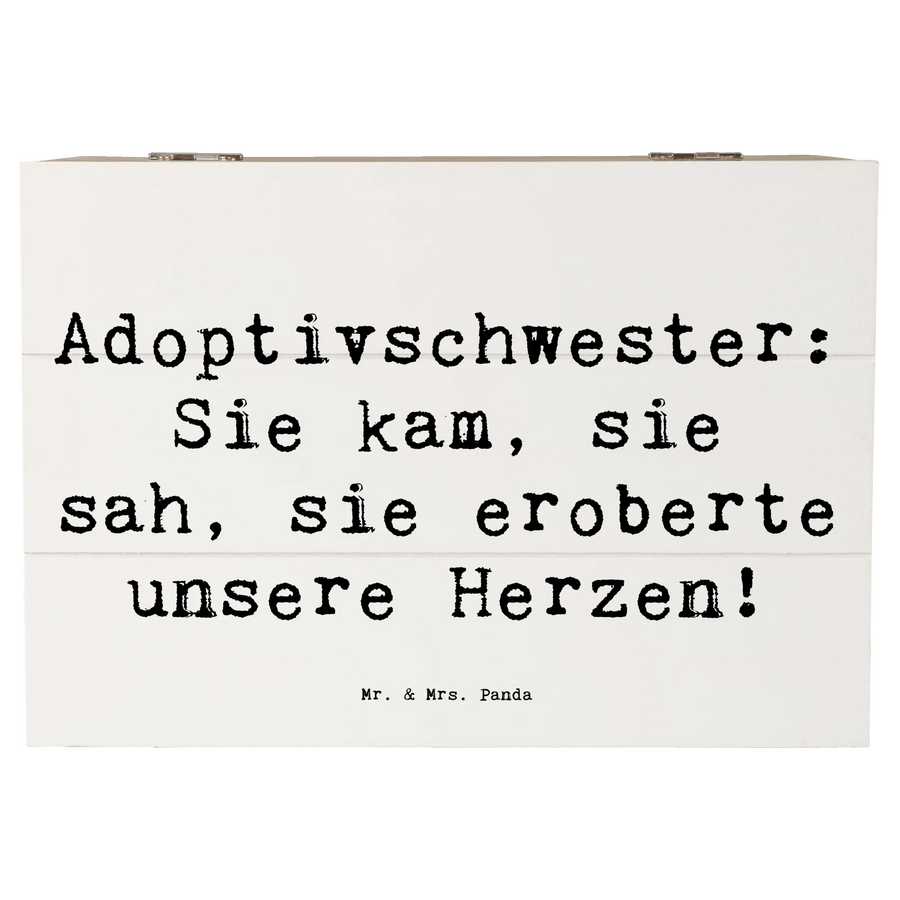 Die wunderschöne Holzkiste von Mr. & Mrs. Panda ist das perfekte Geschenk für Deine Adoptivschwester. Mit dem liebevollen Spruch "Adoptivschwester: Sie kam, sie sah, sie eroberte unsere Herzen!" feierst Du die besondere Verbindung, die über genetische Bindungen hinausgeht.