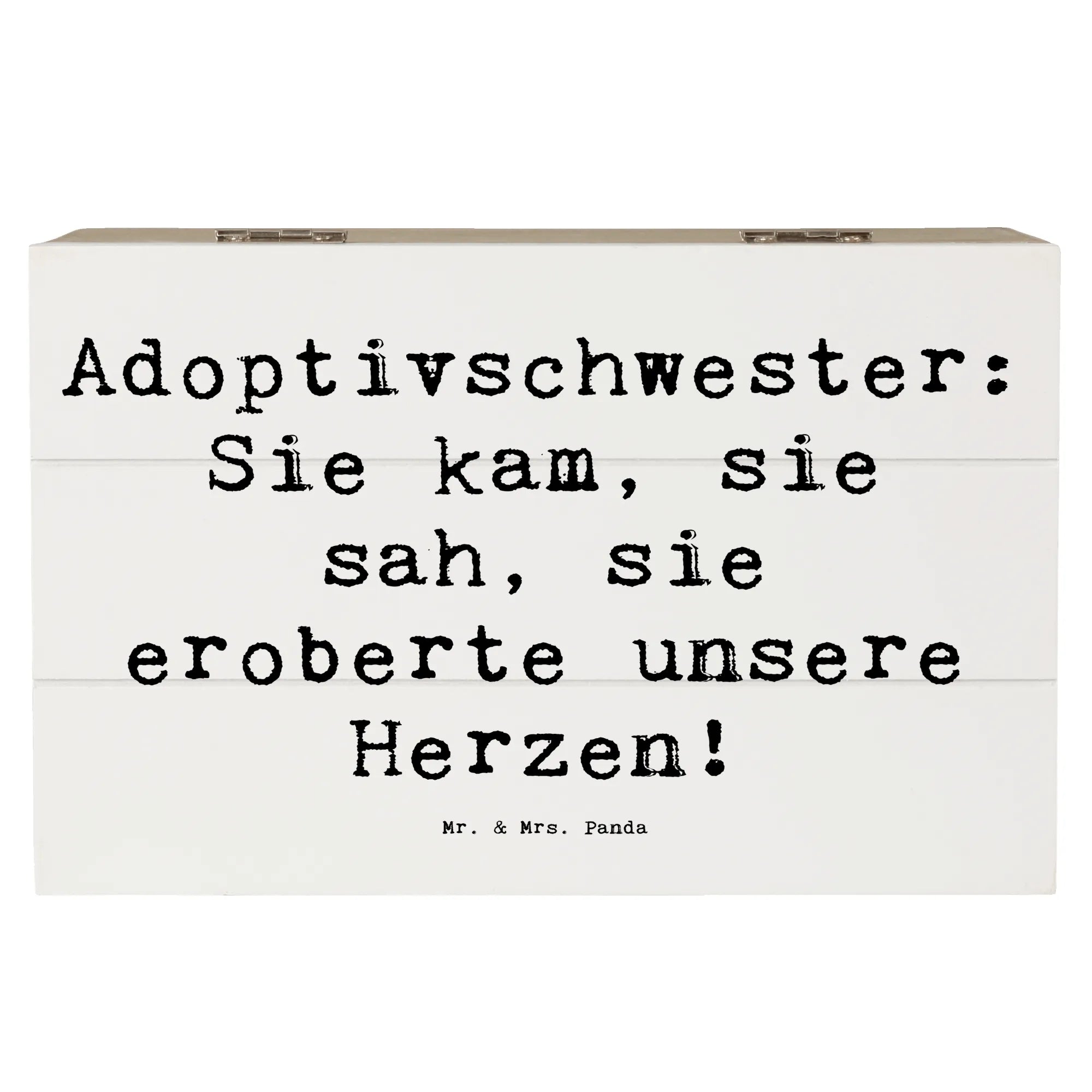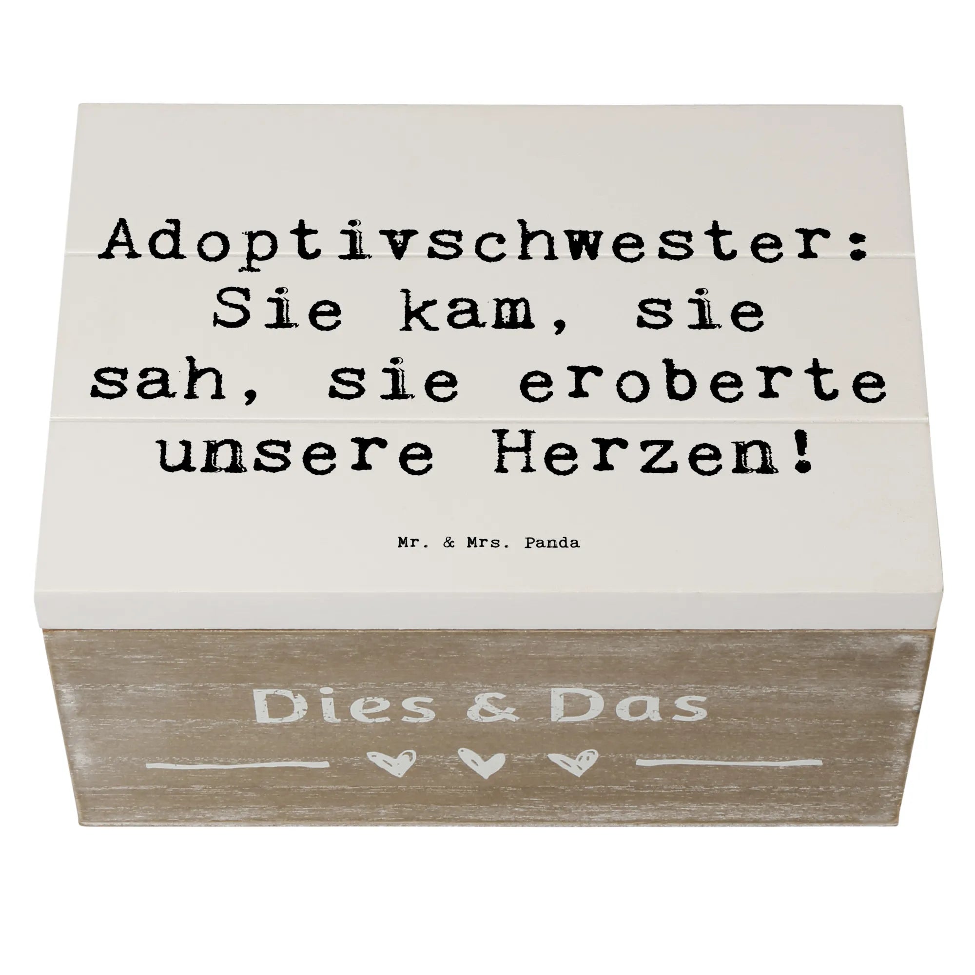 Die wunderschöne Holzkiste von Mr. & Mrs. Panda mit einem liebevollen Motiv für Adoptivschwestern ist das perfekte Geschenk für jeden Anlass.