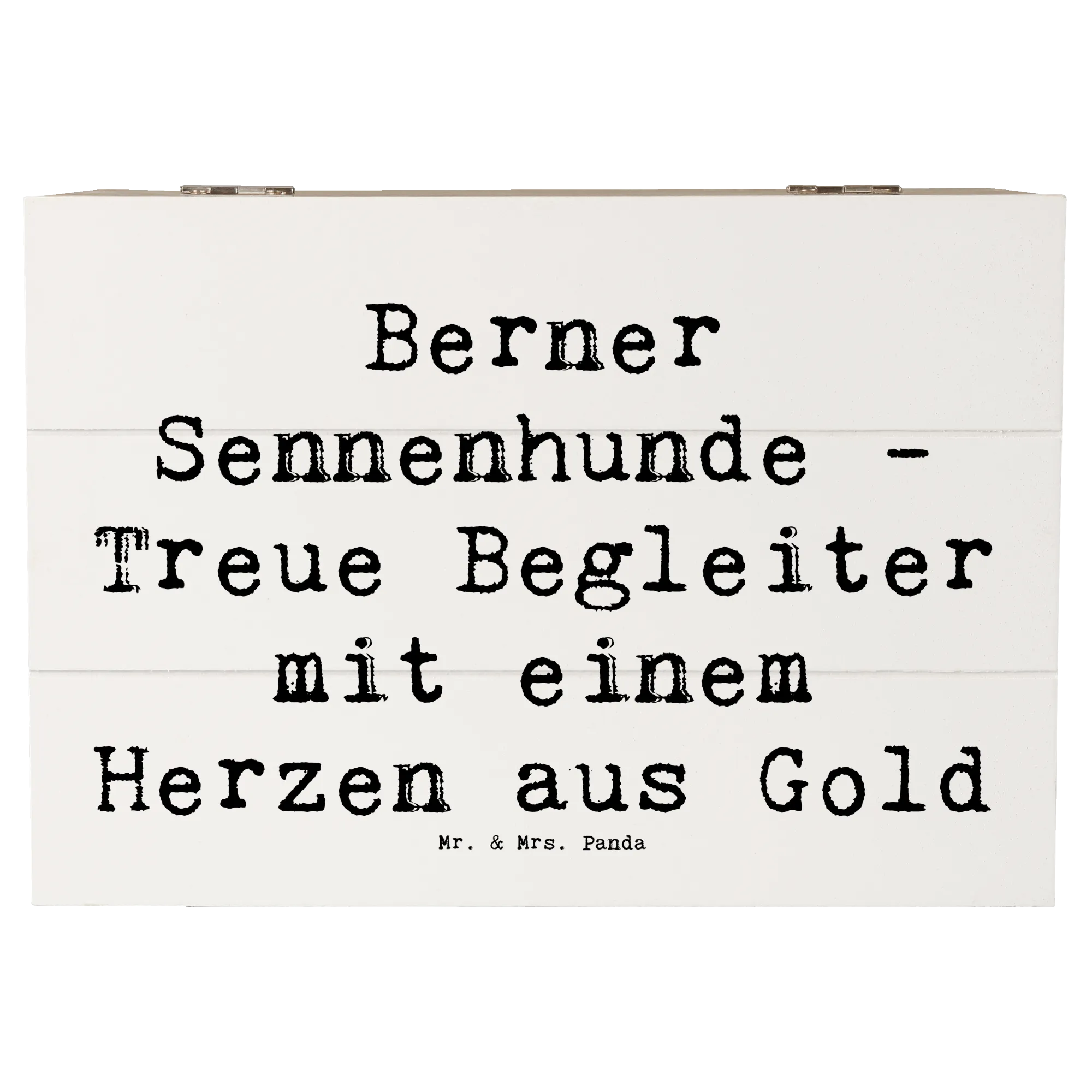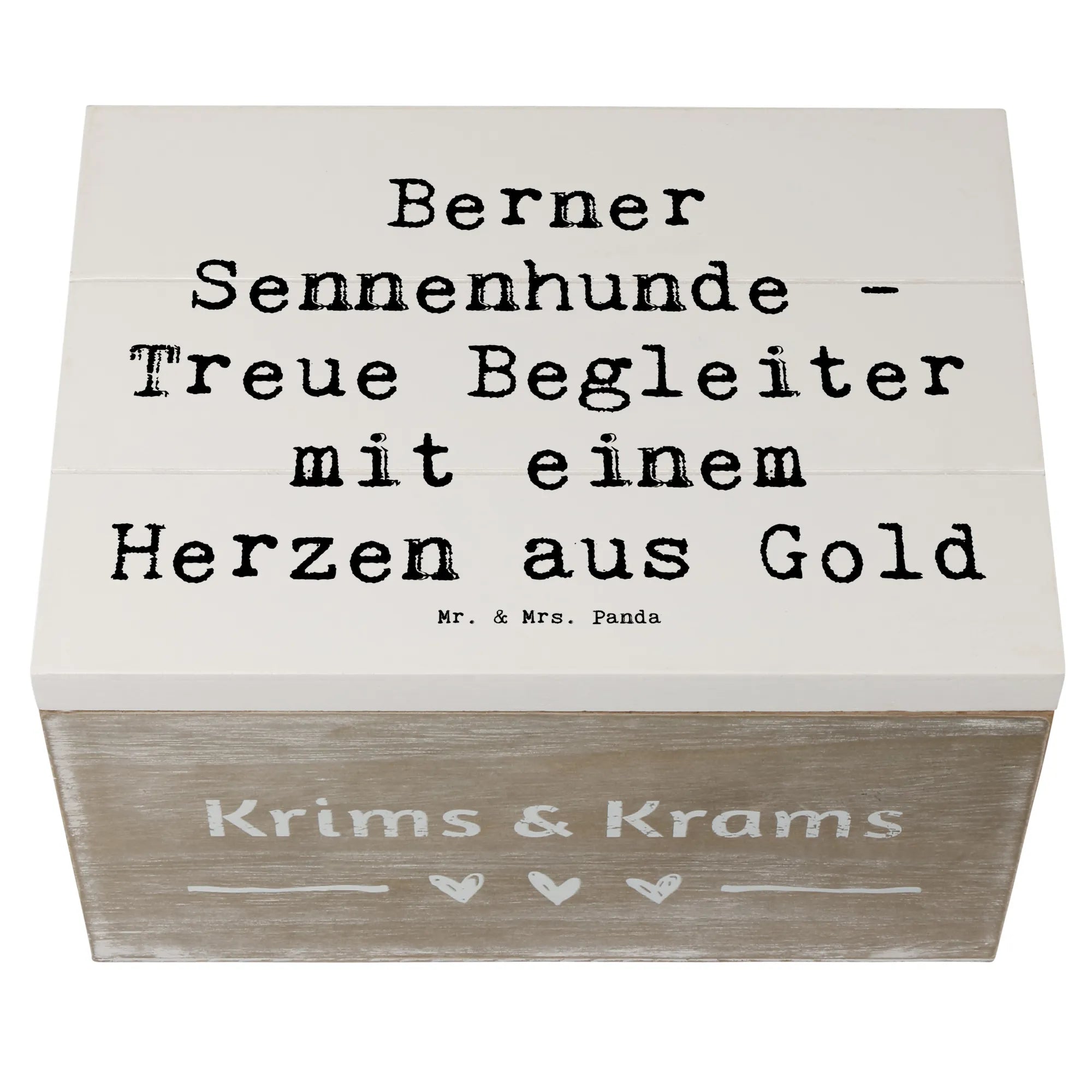 Die wunderschöne Holzkiste mit dem Motiv "Berner Sennenhund - Treue Begleiter mit einem Herzen aus Gold" von Mr. & Mrs. Panda ist das perfekte Geschenk für jeden Hundefan! Diese liebevoll gestaltete Erinnerungsbox eignet sich hervorragend als Aufbewahrungsort für all deine wertvollen Schätze und besonderen Erinnerungen. Egal ob Fotos, Kindheitserinnerungen, Geschenke zur Kommunion oder Konfirmation - diese Kiste bietet genug Platz für alles, was deinem Herzen nahe ist.