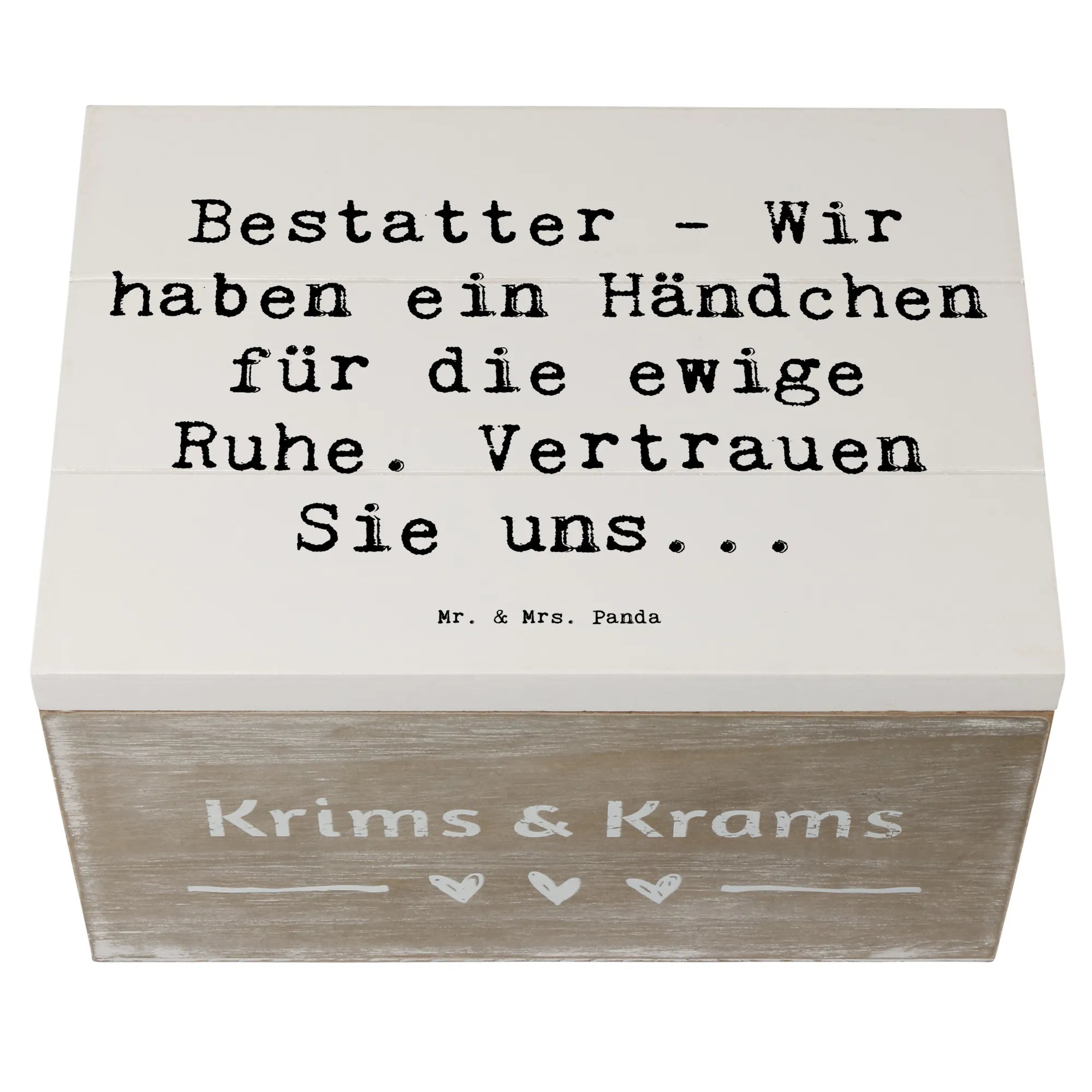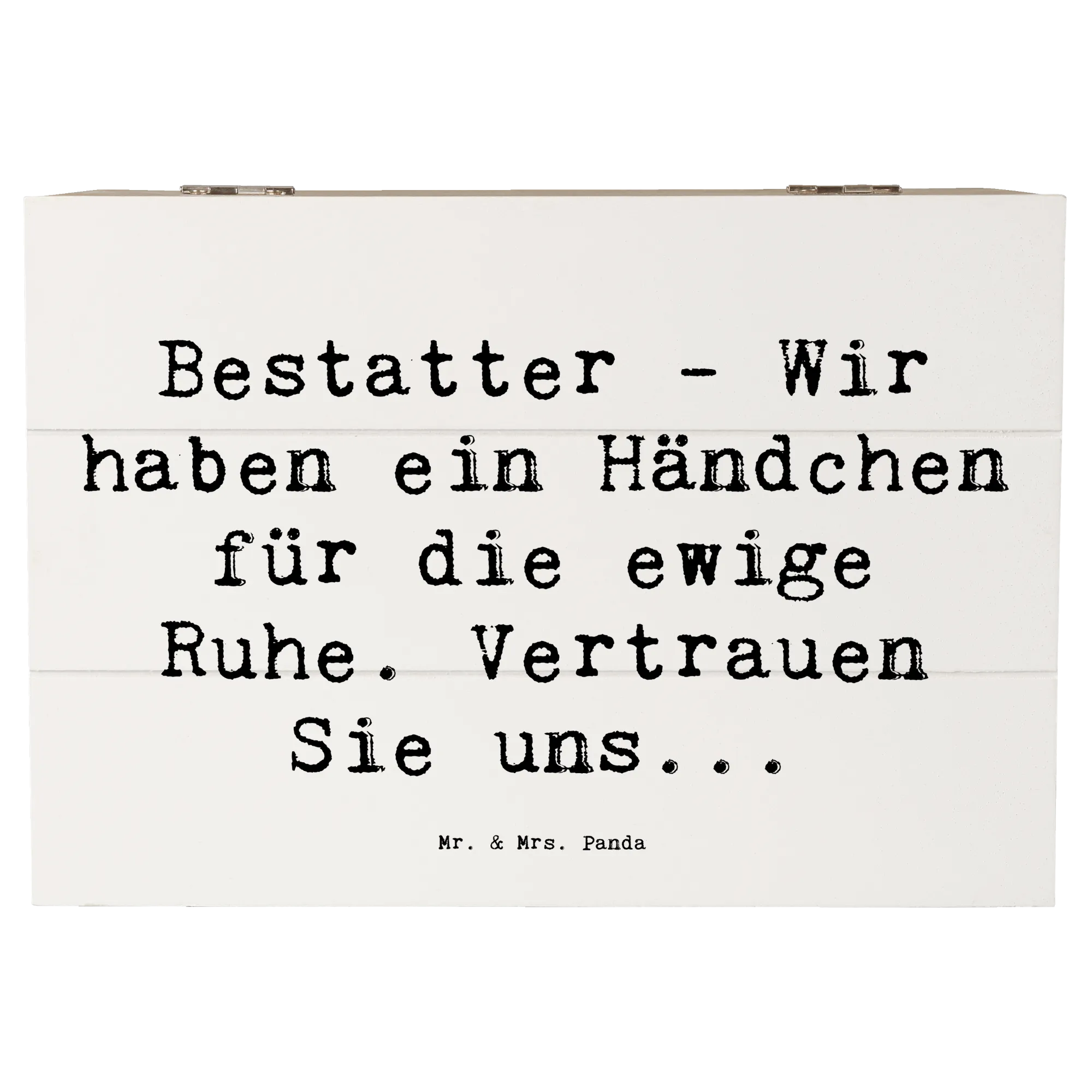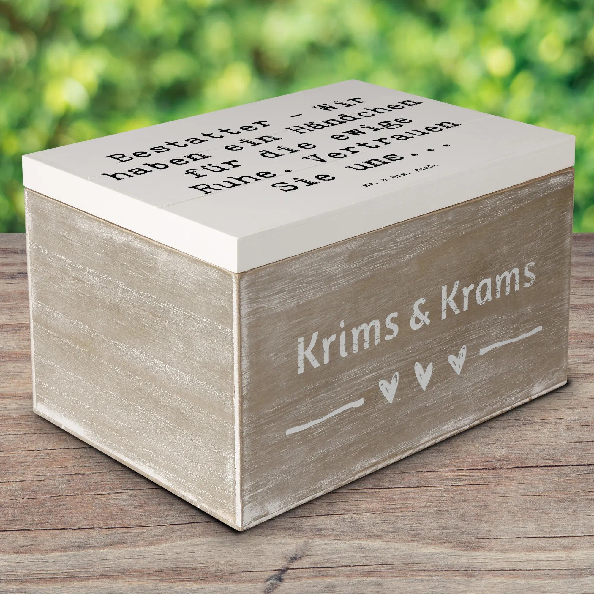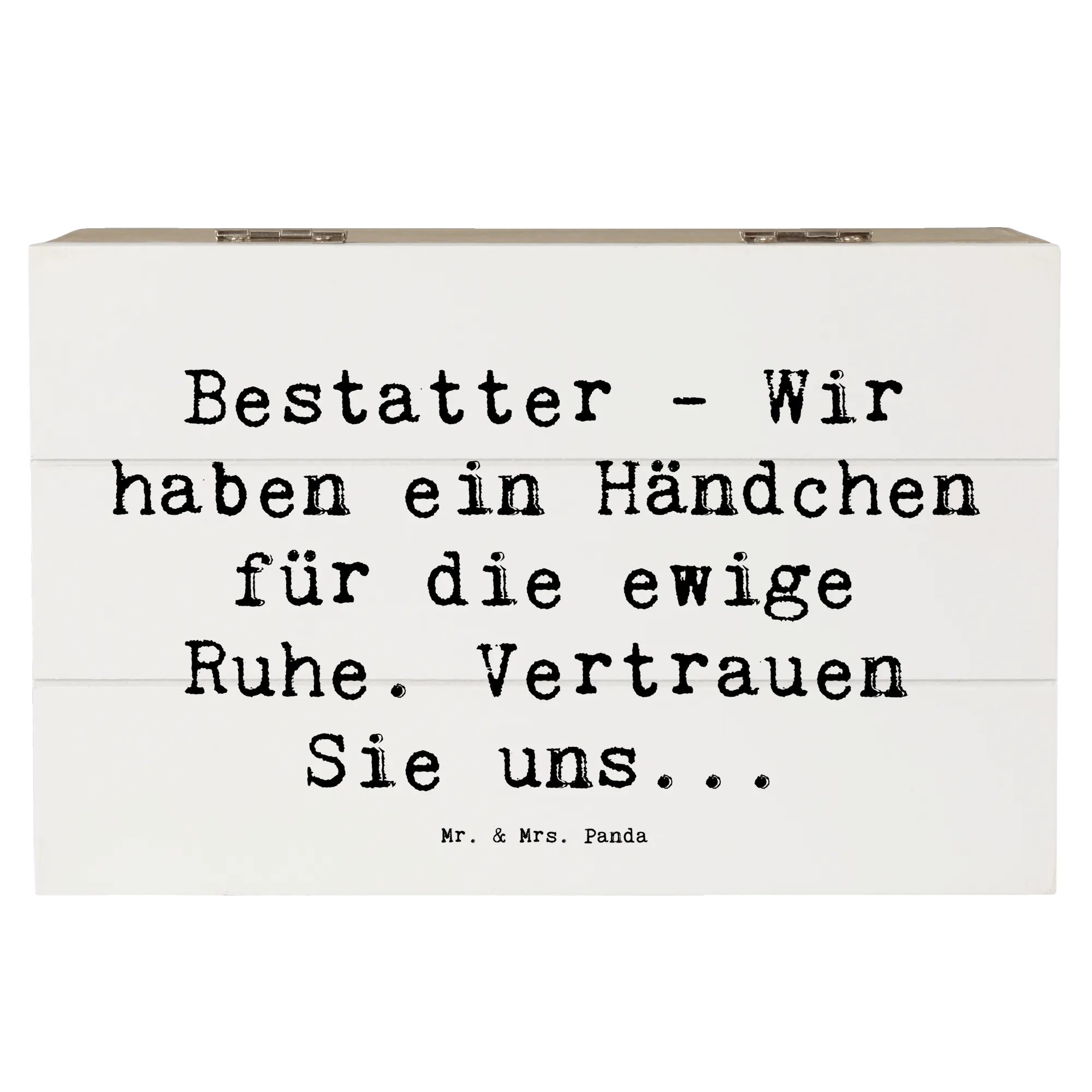 Holzkiste Spruch Bestatter - Wir haben ein Händchen für die ewige Ruhe. Vertrauen Sie uns... - 22 x 15 cm - Weiß