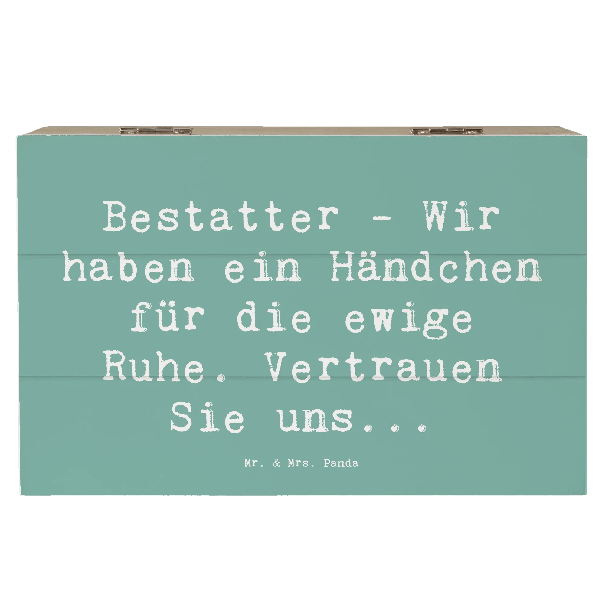 Die kreative Kollektion von Mr. & Mrs. Panda bietet dir eine Vielzahl an Produkten, die mit Liebe und Fantasie gestaltet sind. Schenke diese Holzkiste einem Bestatter als Dankeschön oder zur Erinnerung an den ersten Job, den er oder sie gemacht hat. Sie ist in mehreren Größen erhältlich und mit einem feuchten Tuch ganz einfach zu pflegen.