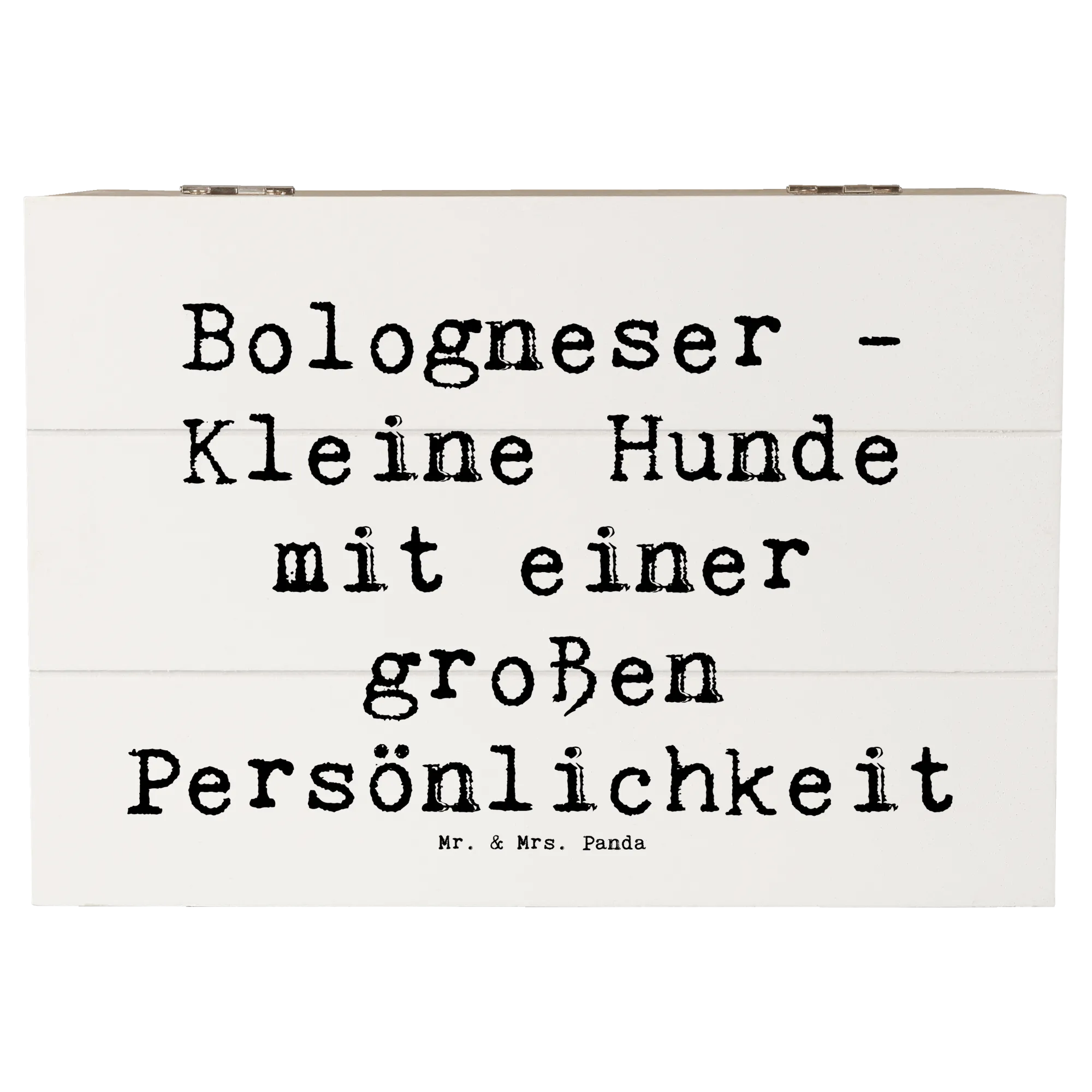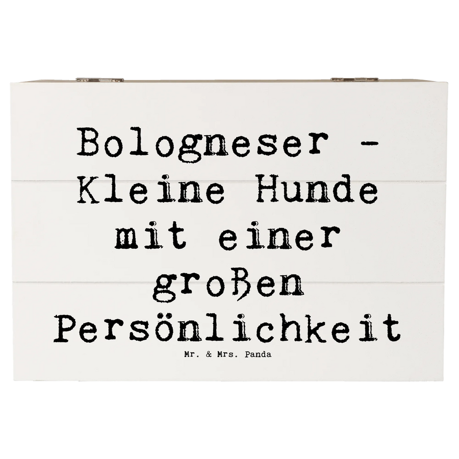 Die wunderschöne Holzkiste von Mr. & Mrs. Panda mit dem zauberhaften Motiv "Bologneser - Kleine Hunde mit einer großen Persönlichkeit" ist das perfekte Geschenk für alle Hundefans und bietet eine liebevolle Möglichkeit, Erinnerungen zu bewahren.