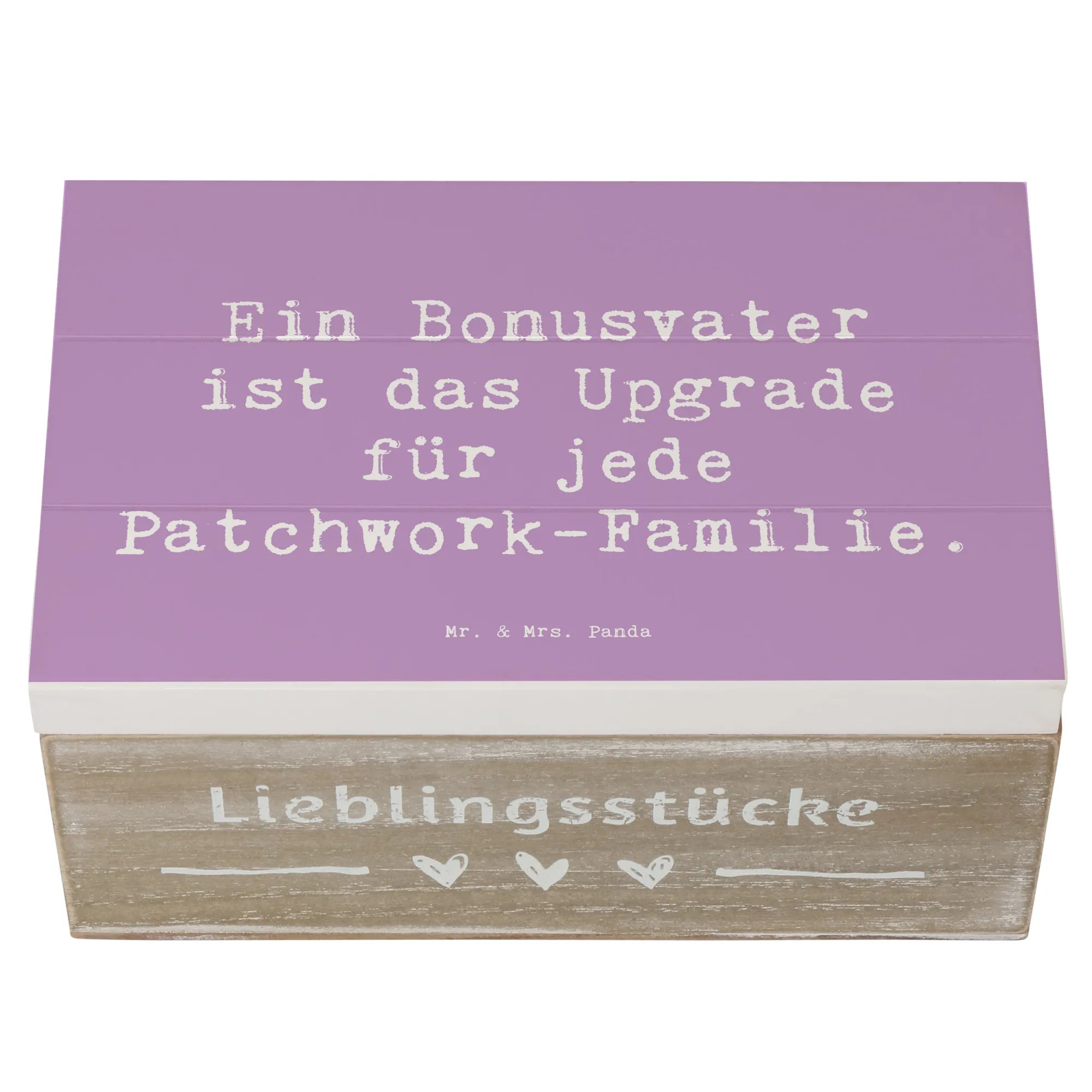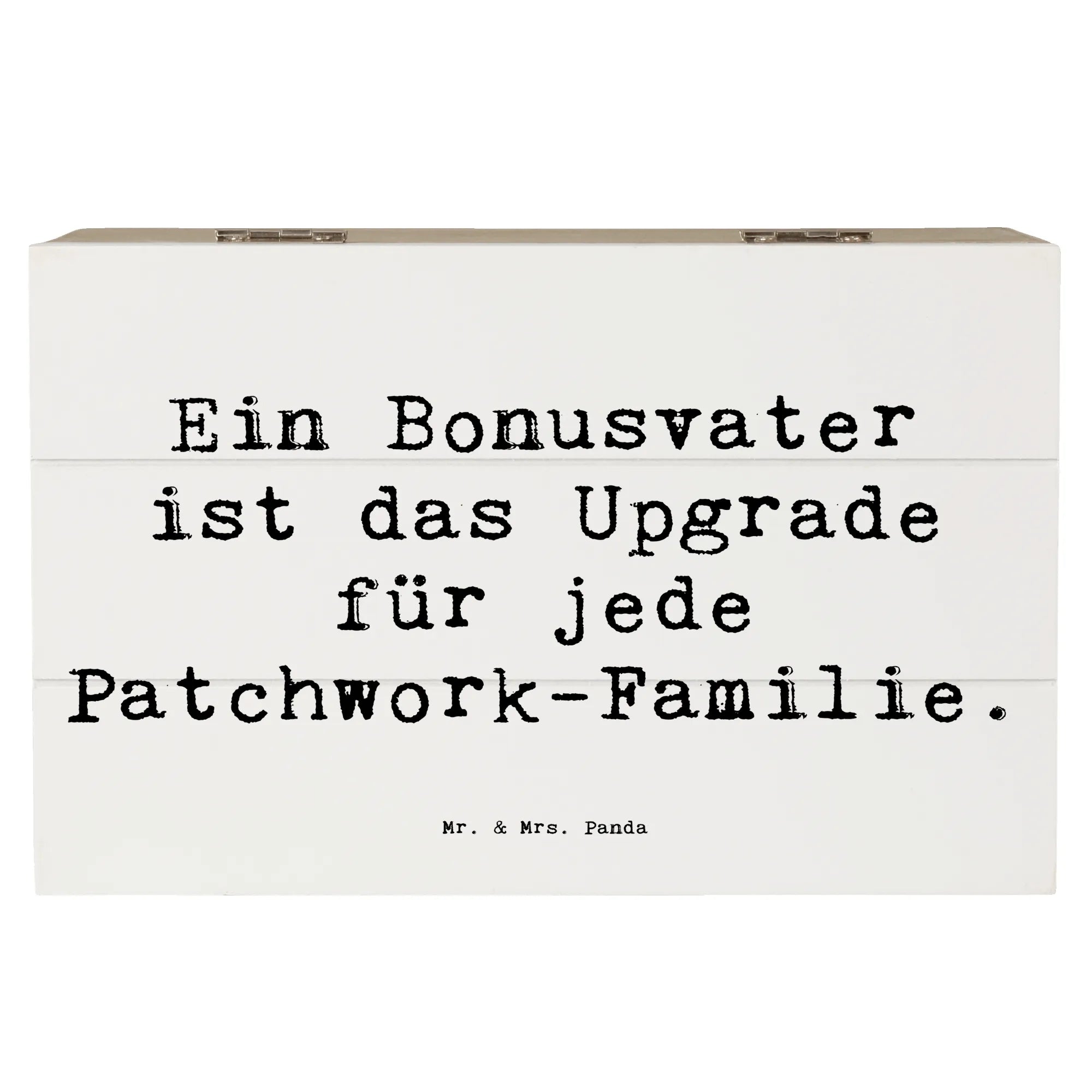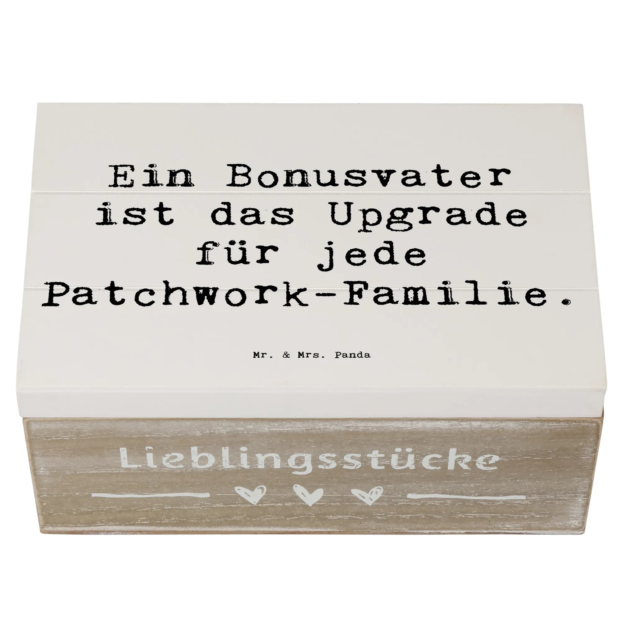 Die Holzkiste von Mr. & Mrs. Panda ist das perfekte Geschenk für alle Bonusväter, die in einer Patchwork-Familie eine besondere Rolle spielen.