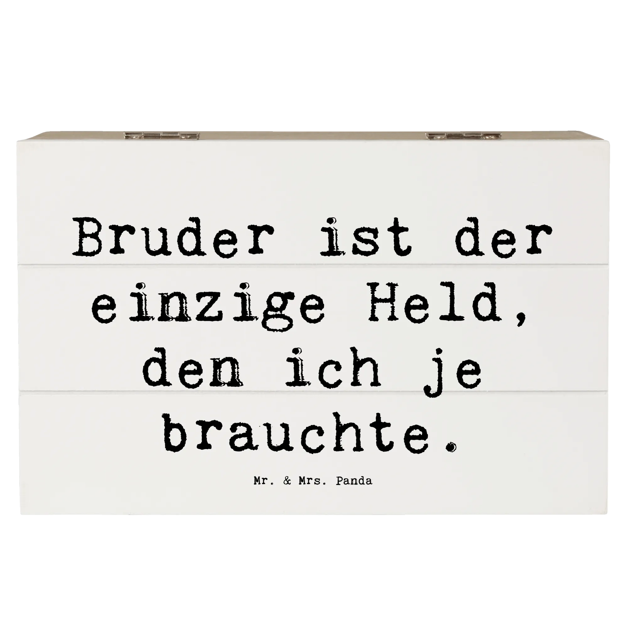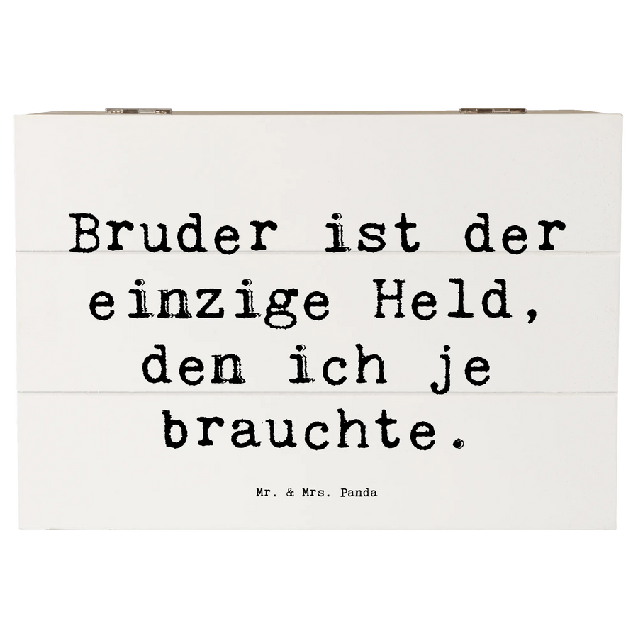 Diese wunderschöne Holzkiste von Mr. & Mrs. Panda ist das perfekte Geschenk für Brüder und Geschwister. Sie ist nicht nur eine Box, sondern eine Schatzkiste voller Erinnerungen und liebevoller Momente. Die besondere Aufschrift "Bruder ist der einzige Held, den ich je brauchte" spricht aus, was viele von uns für ihren Bruder empfinden. Egal, ob als Geburtstagsgeschenk oder zur Feier einer besonderen Gelegenheit – diese Erinnerungskiste ist der ideale Aufbewahrungsort für Fotos, kleine Schätze und wertvolle Andenken an gemeinsame Erlebnisse.