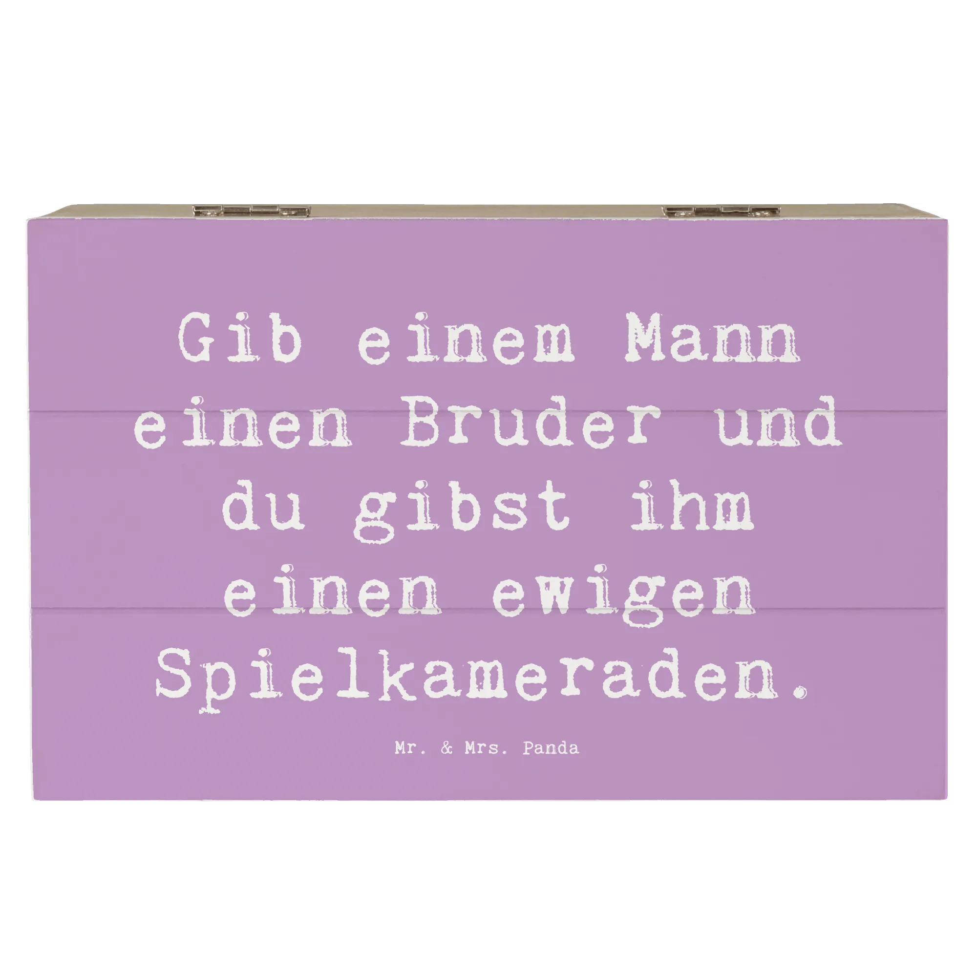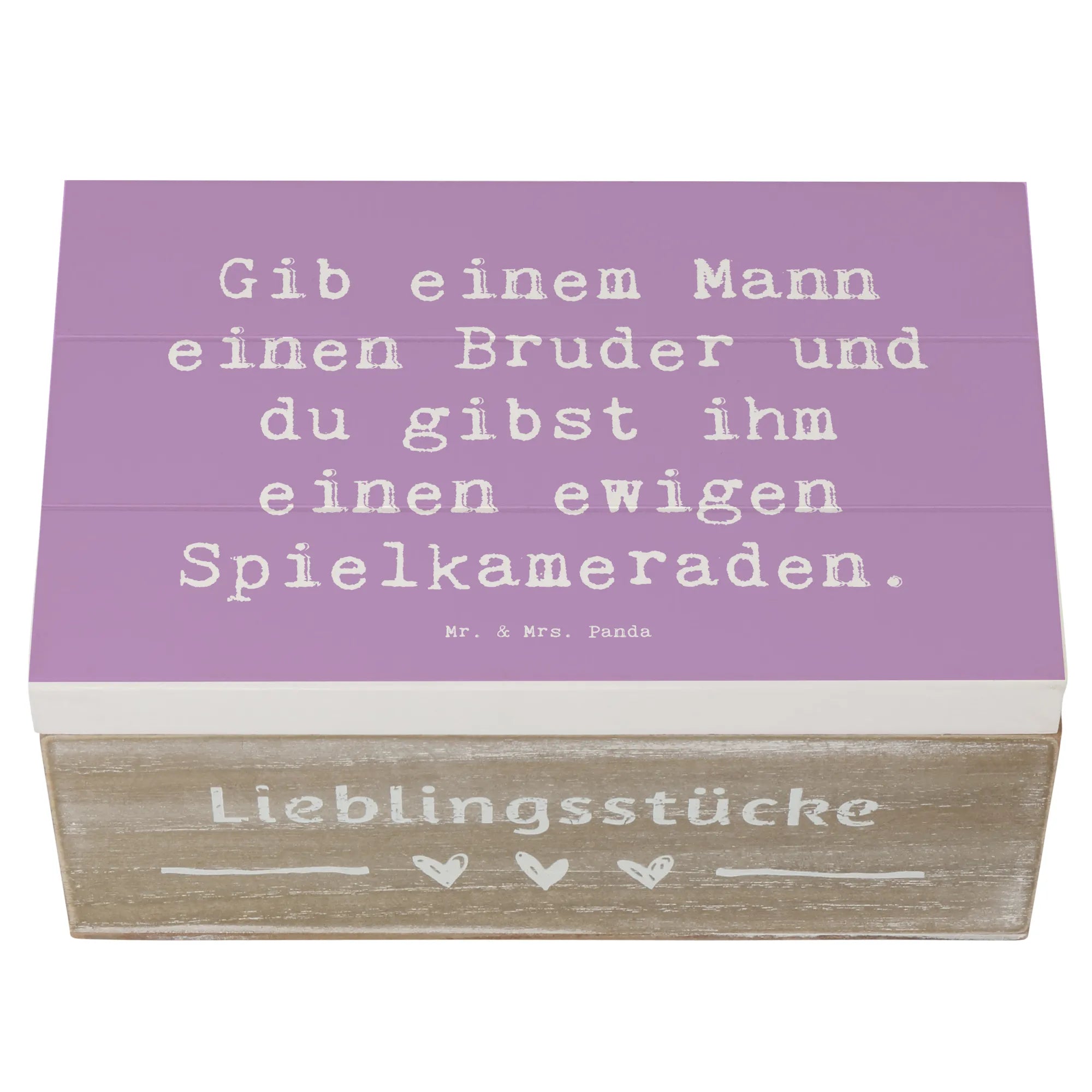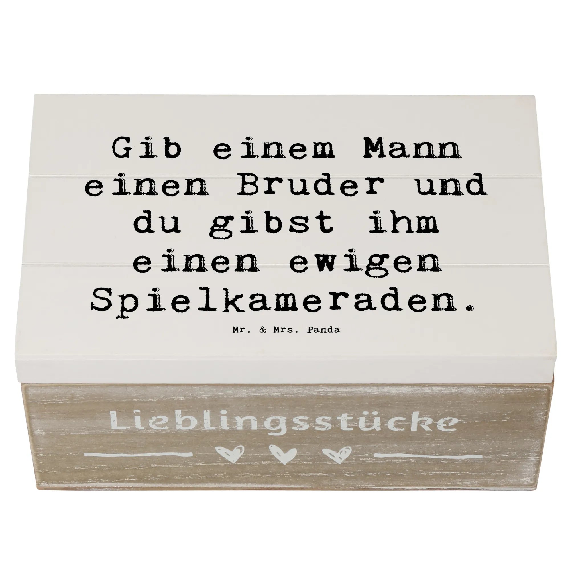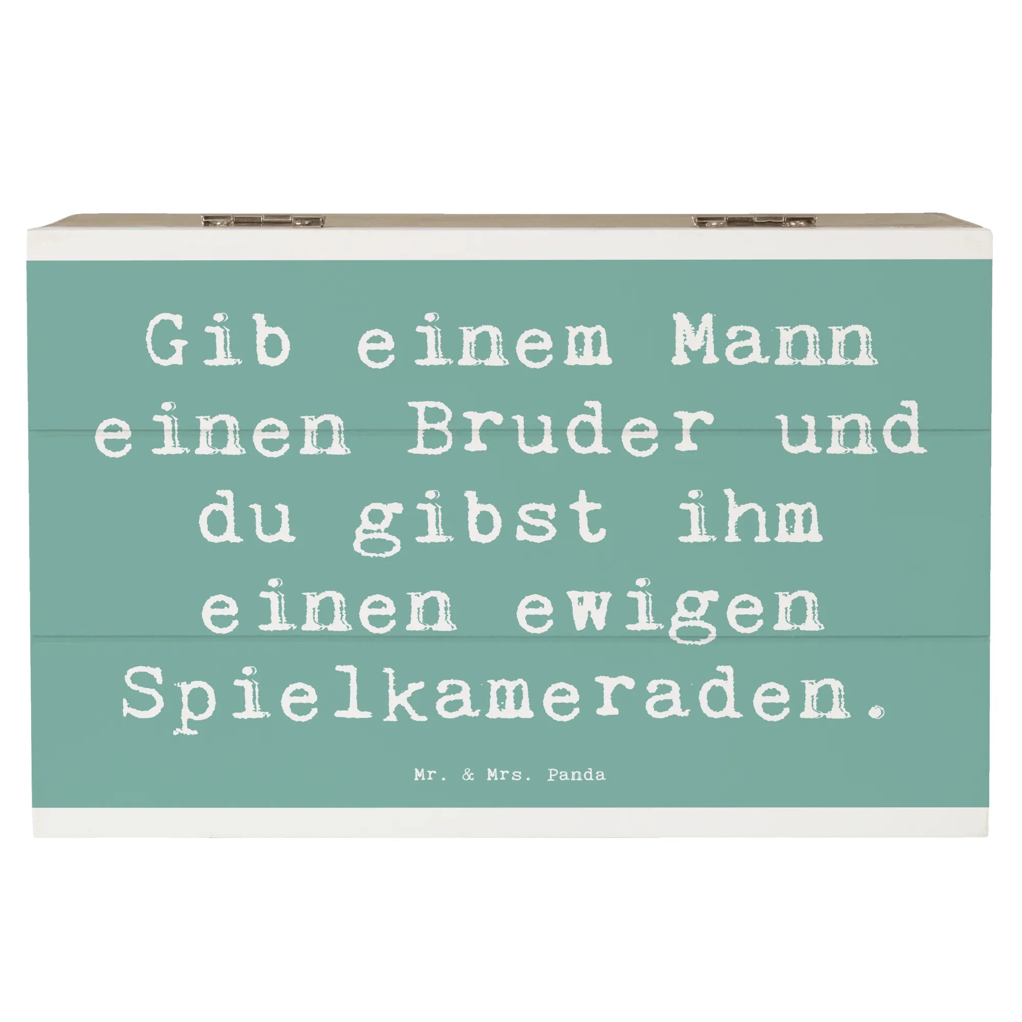 Der Spruch auf der Kiste "Gib einem Mann einen Bruder und du gibst ihm einen ewigen Spielkameraden" spricht Bände über die einzigartige Beziehung, die Geschwister miteinander teilen. Brüder sind oft die ersten Freunde, die Du hast, und stellen in vielen Fällen lebenslange Begleiter dar. In jeder Familie hat der Bruder seine ganz eigene Rolle – sei es als großer Beschützer, als gleichaltriger Spielkamerad oder als jüngerer Stern, dem alle den Rücken stärken. Diese besonderen Dynamiken und die Liebe, die Brüder miteinander teilen, spiegeln sich in jedem Detail dieser Kiste wider.
