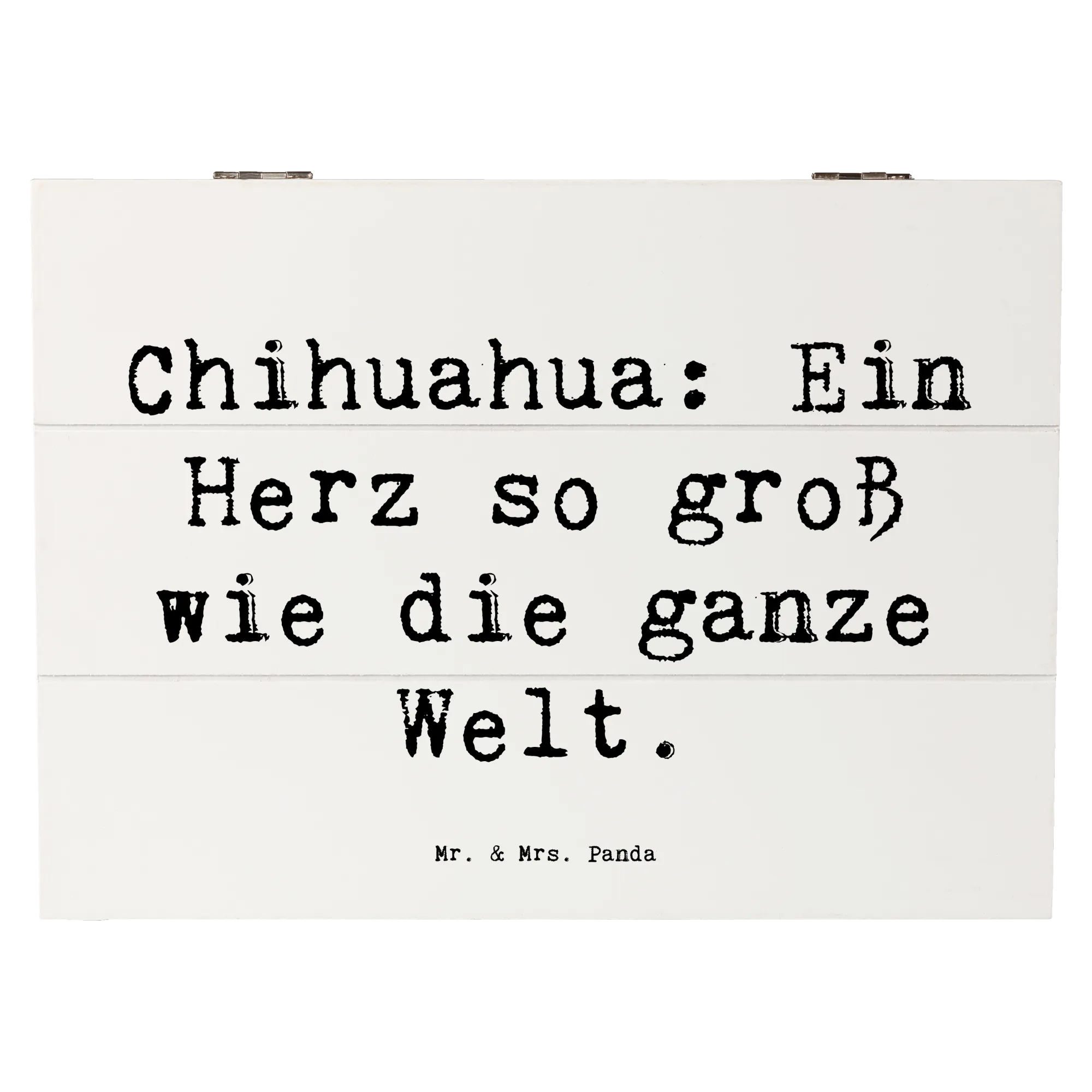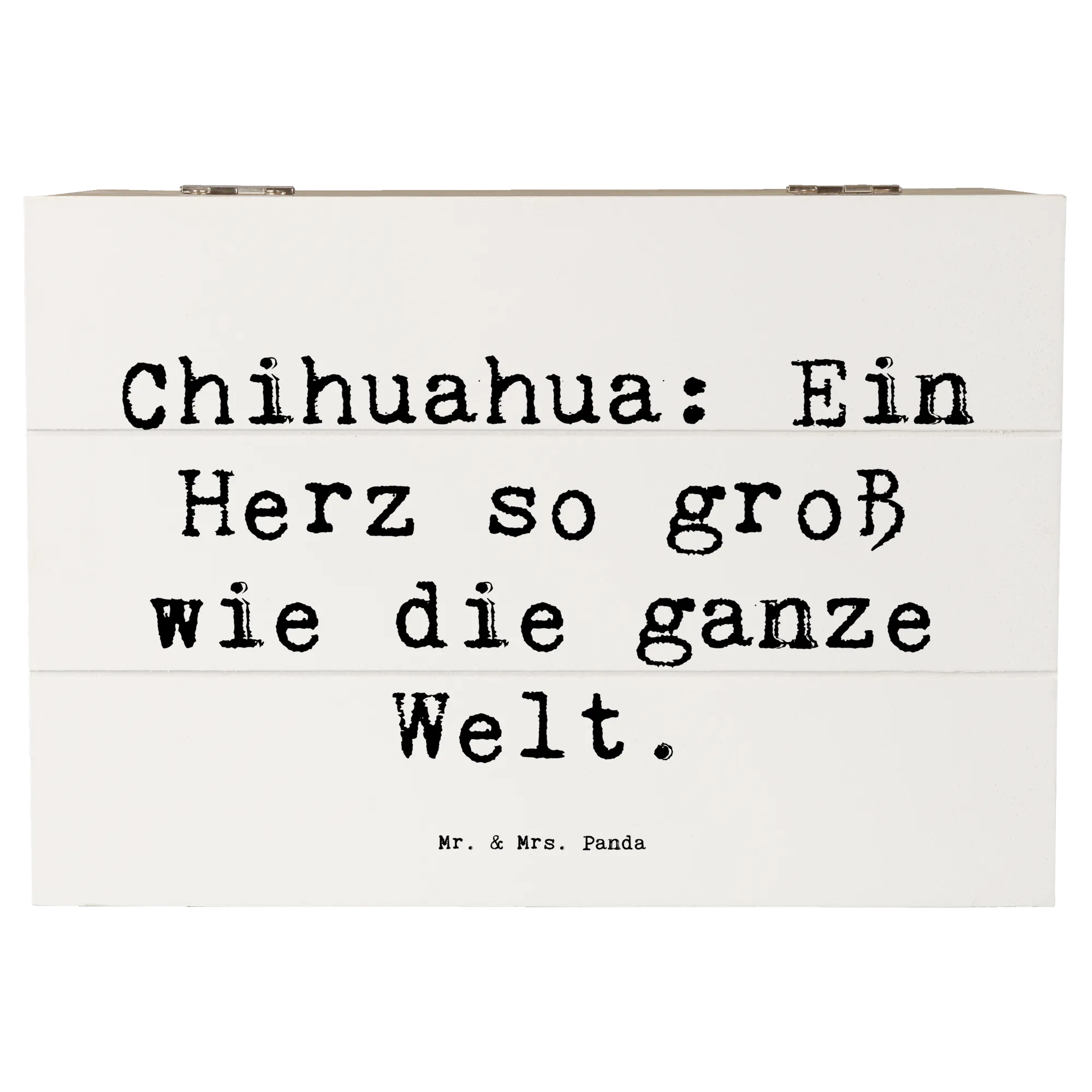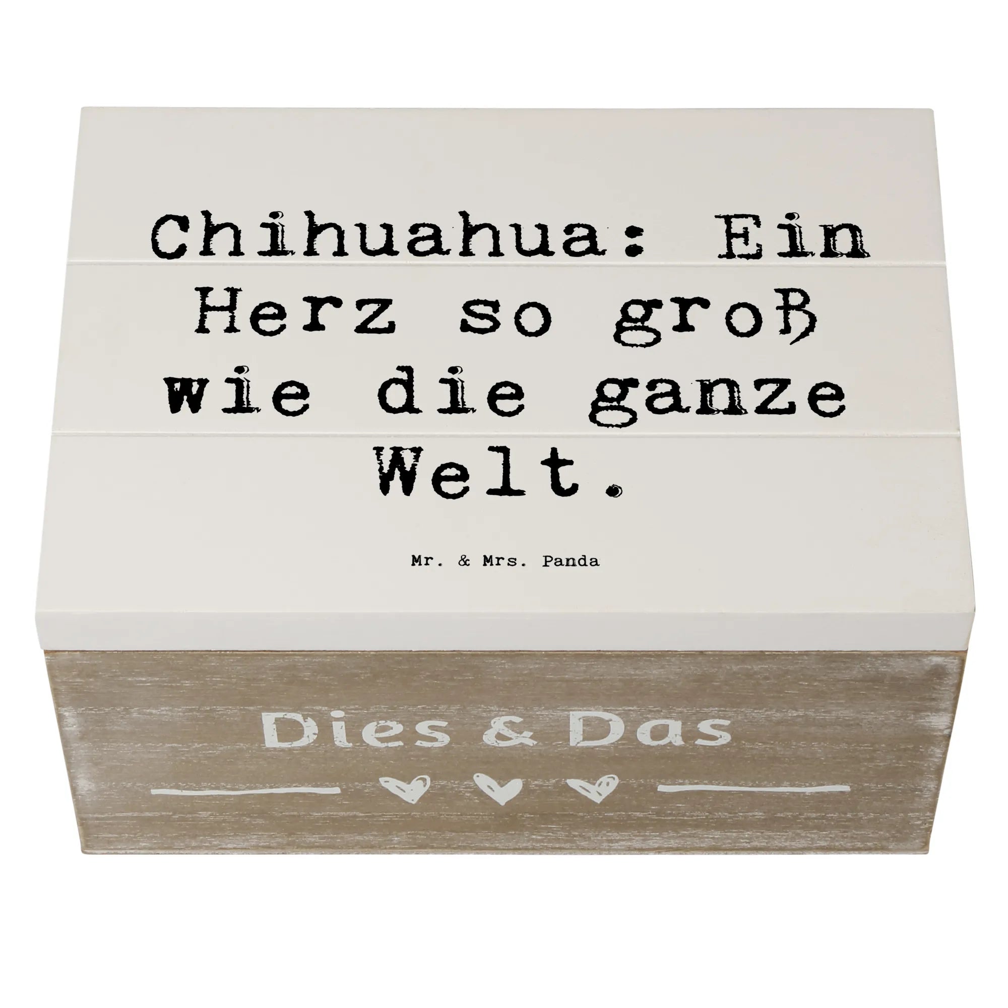Entdecke die zauberhafte Holzkiste von Mr. & Mrs. Panda, bedruckt mit dem liebevollen Chihuahua-Motiv und dem wundervollen Spruch "Chihuahua: Ein Herz so groß wie die ganze Welt". Diese besondere Erinnerungskiste ist nicht nur ein wunderschöner Blickfang, sondern auch ein idealer Aufbewahrungsort für all deine wertvollen Schätze.