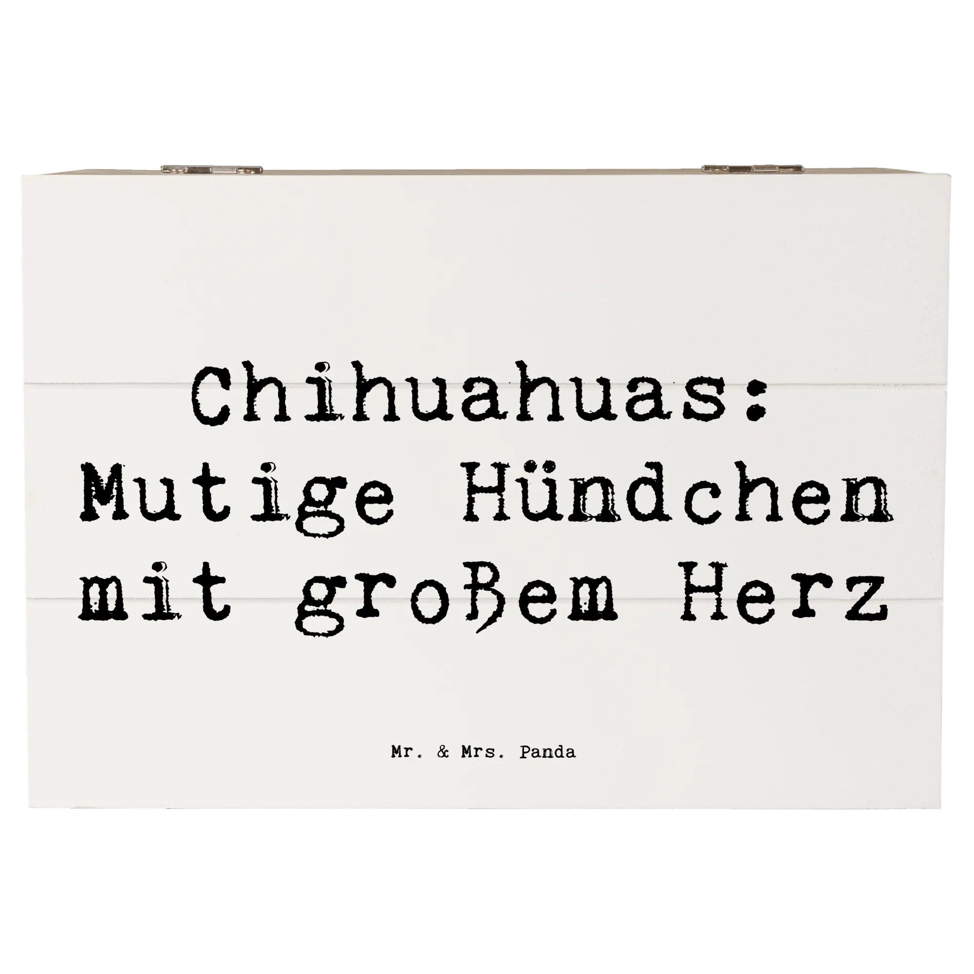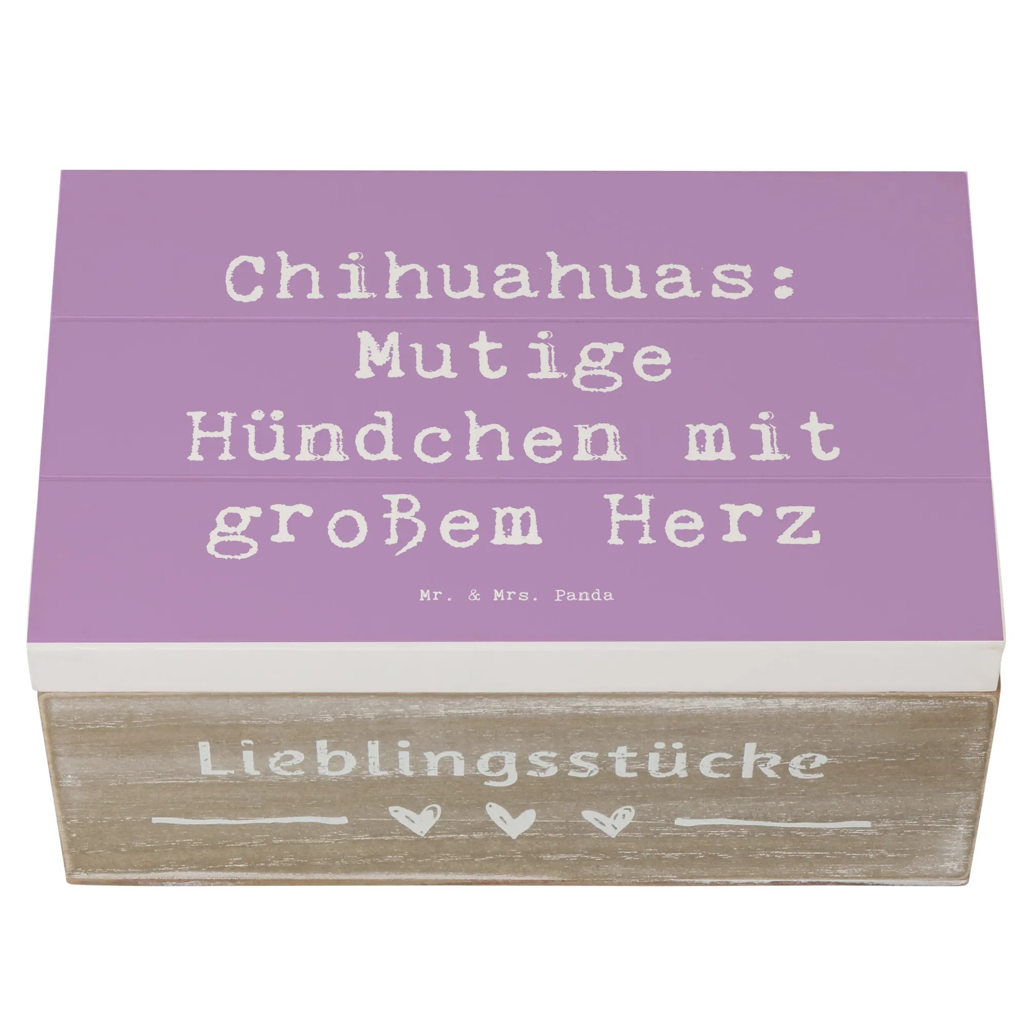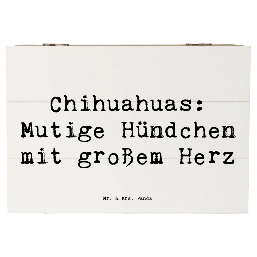 Diese wunderschöne Holzkiste von Mr. & Mrs. Panda ist das perfekte Geschenk für alle Chihuahua-Liebhaber! Mit dem liebevoll gestalteten Motiv "Chihuahuas: Mutige Hündchen mit großem Herz" bringt sie Freude in jedes Zuhause.