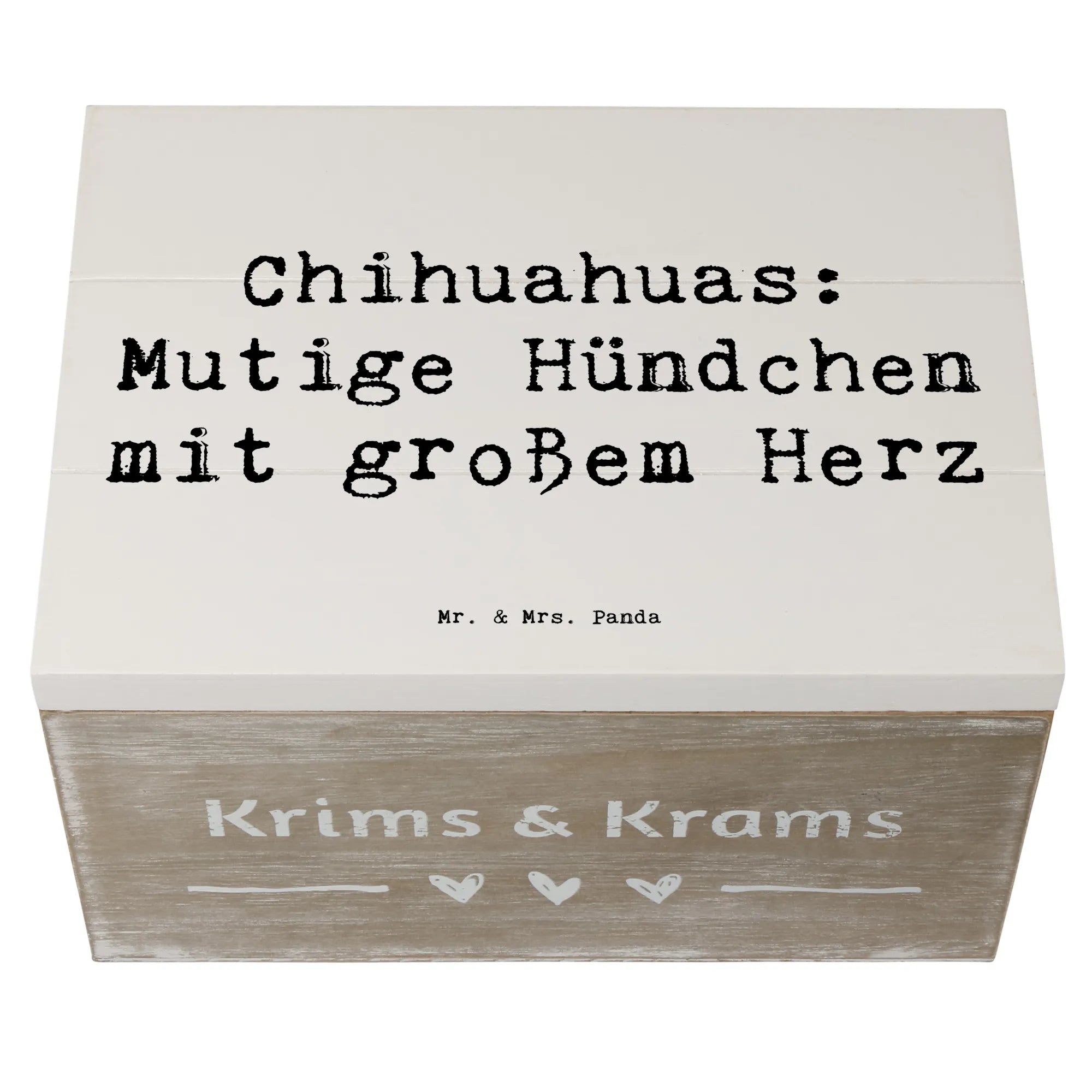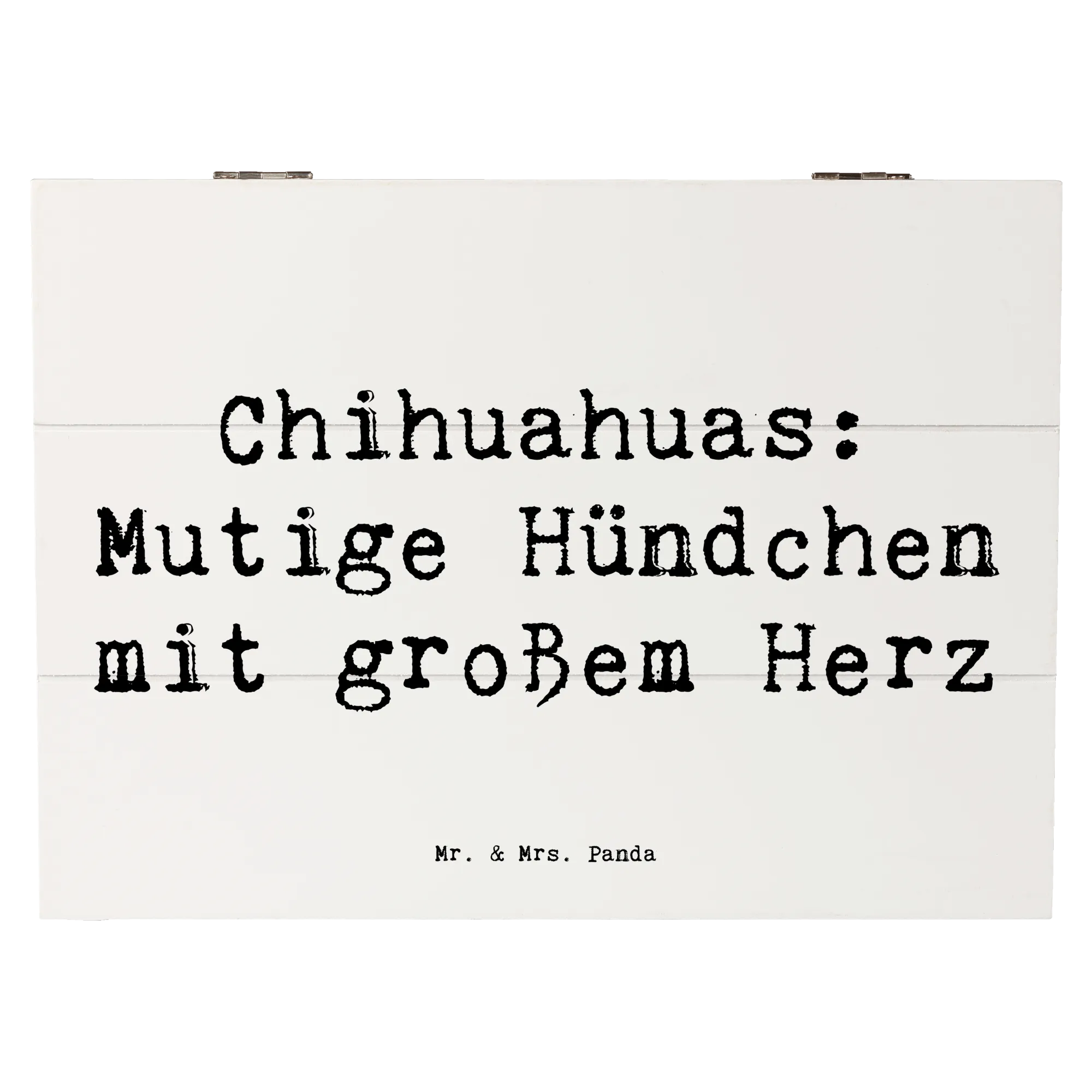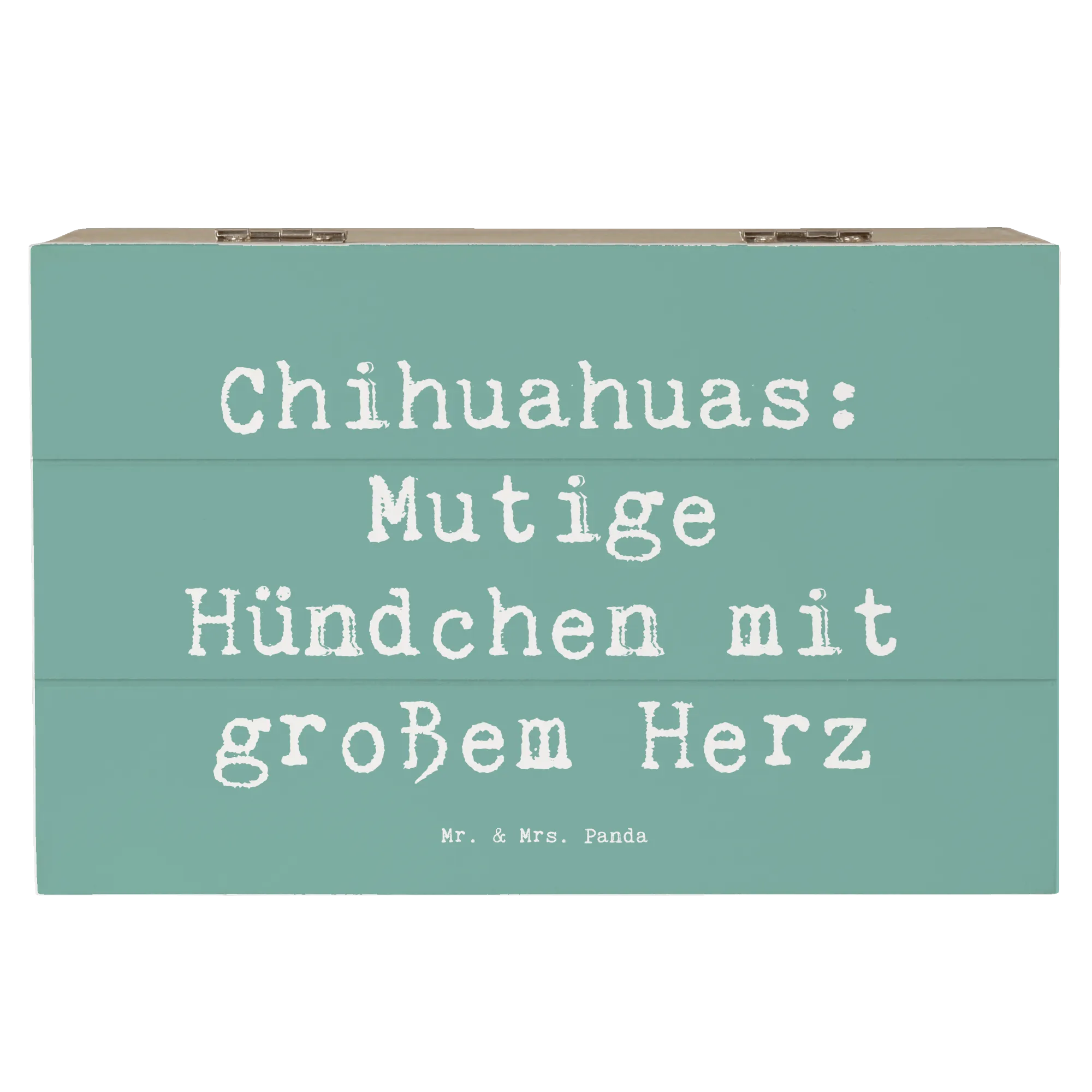 Diese wunderschöne Holzkiste von Mr. & Mrs. Panda ist das perfekte Geschenk für alle Chihuahua-Liebhaber! Mit dem liebevoll gestalteten Motiv "Chihuahuas: Mutige Hündchen mit großem Herz" bringt sie Freude in jedes Zuhause.