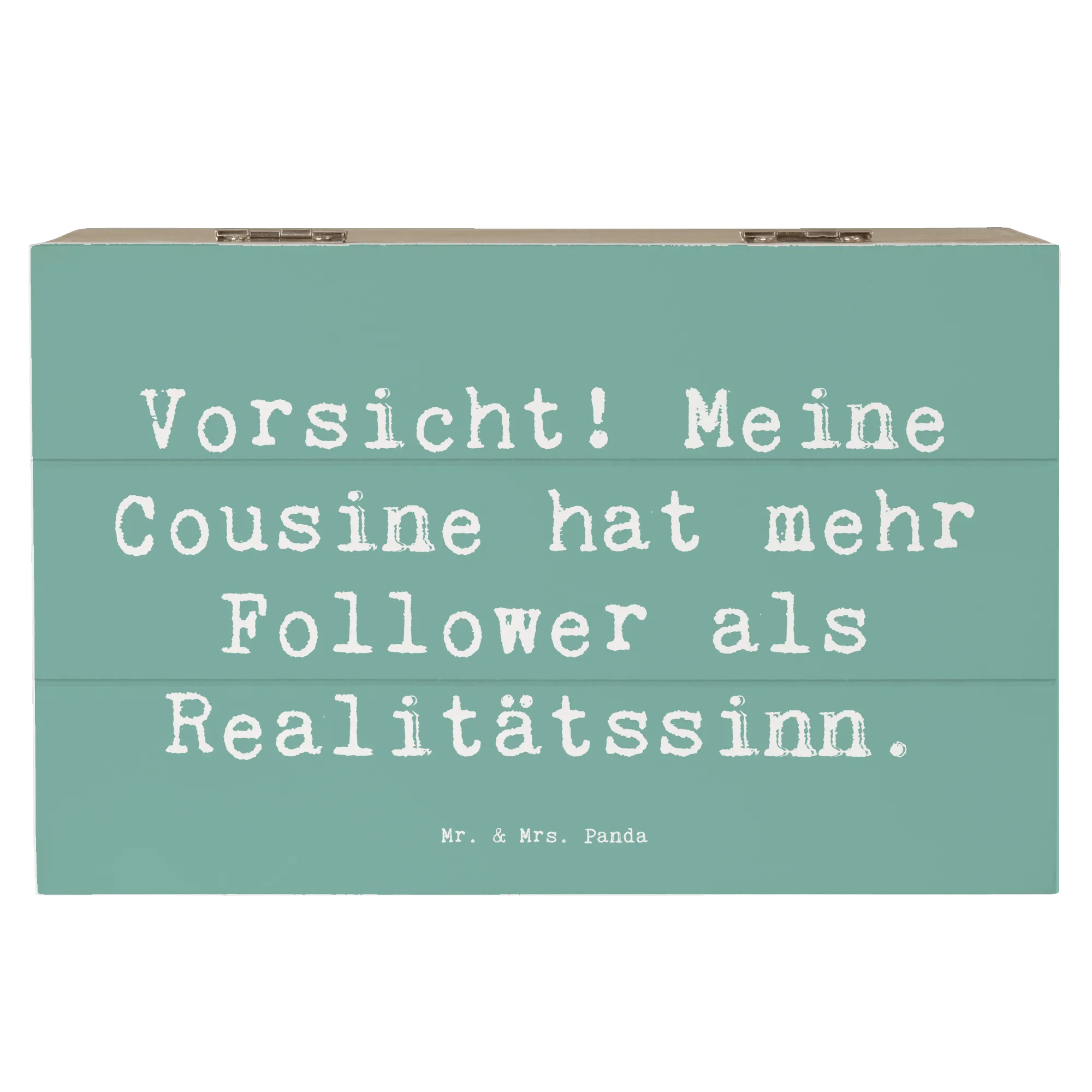 Eine wunderschöne Holzkiste von Mr. & Mrs. Panda – liebevoll gestaltet und mit einem frechen Spruch, der sofort sympathisch macht: Vorsicht! Meine Cousine hat mehr Follower als Realitätssinn. Diese Holzkiste ist das perfekte Geschenk für Cousins und Cousinen, die Humor, Familie und Erinnerungen schätzen.