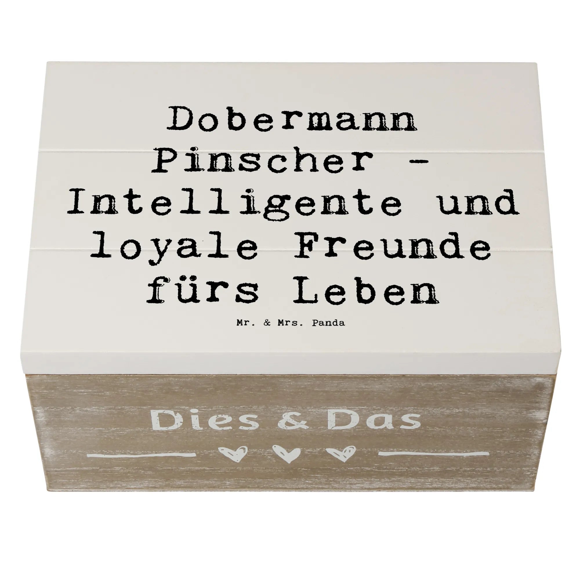 Die wunderschöne Holzkiste von Mr. & Mrs. Panda mit dem Motiv des Dobermann Pinschers ist das perfekte Geschenk für alle Hundefans und Hundehalter. Diese Erinnerungskiste ist nicht nur ein fantastisches Aufbewahrungsort für all deine Schätze und Erinnerungen, sondern auch ein stilvolles Deko-Element in deinem Zuhause.
