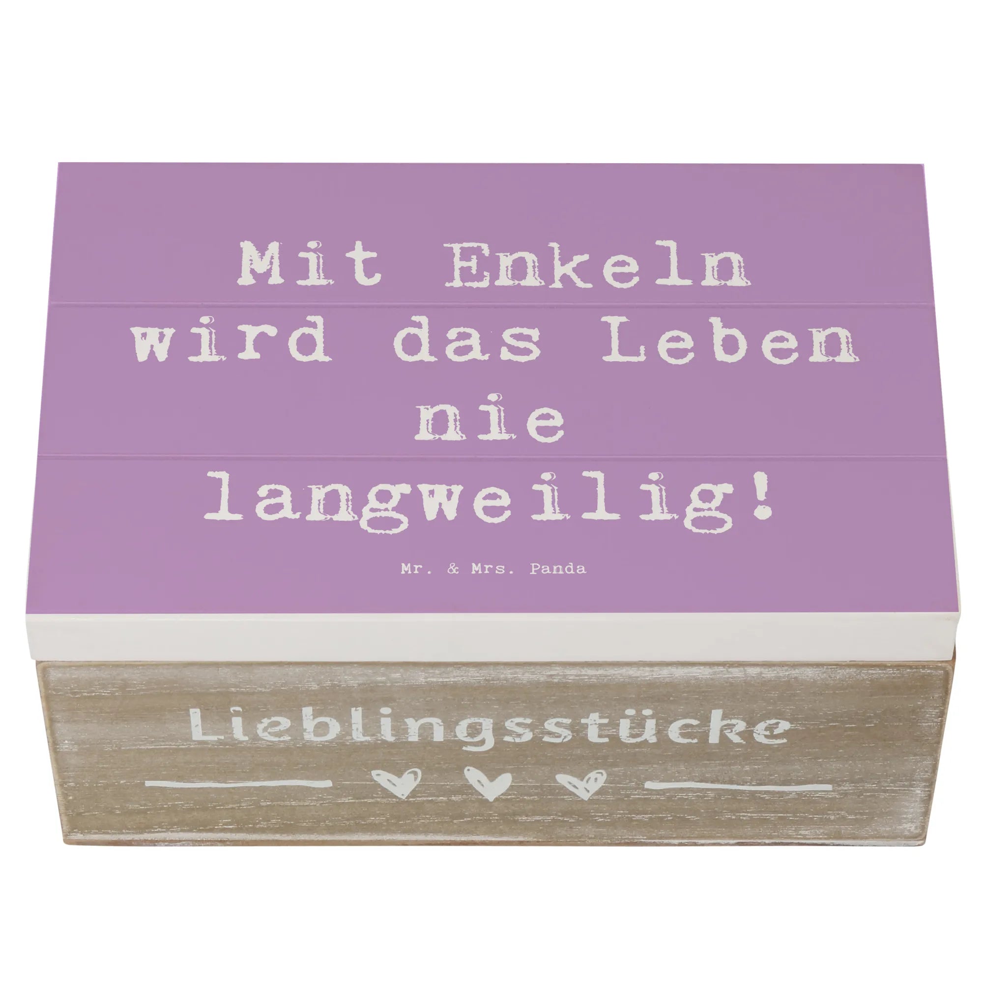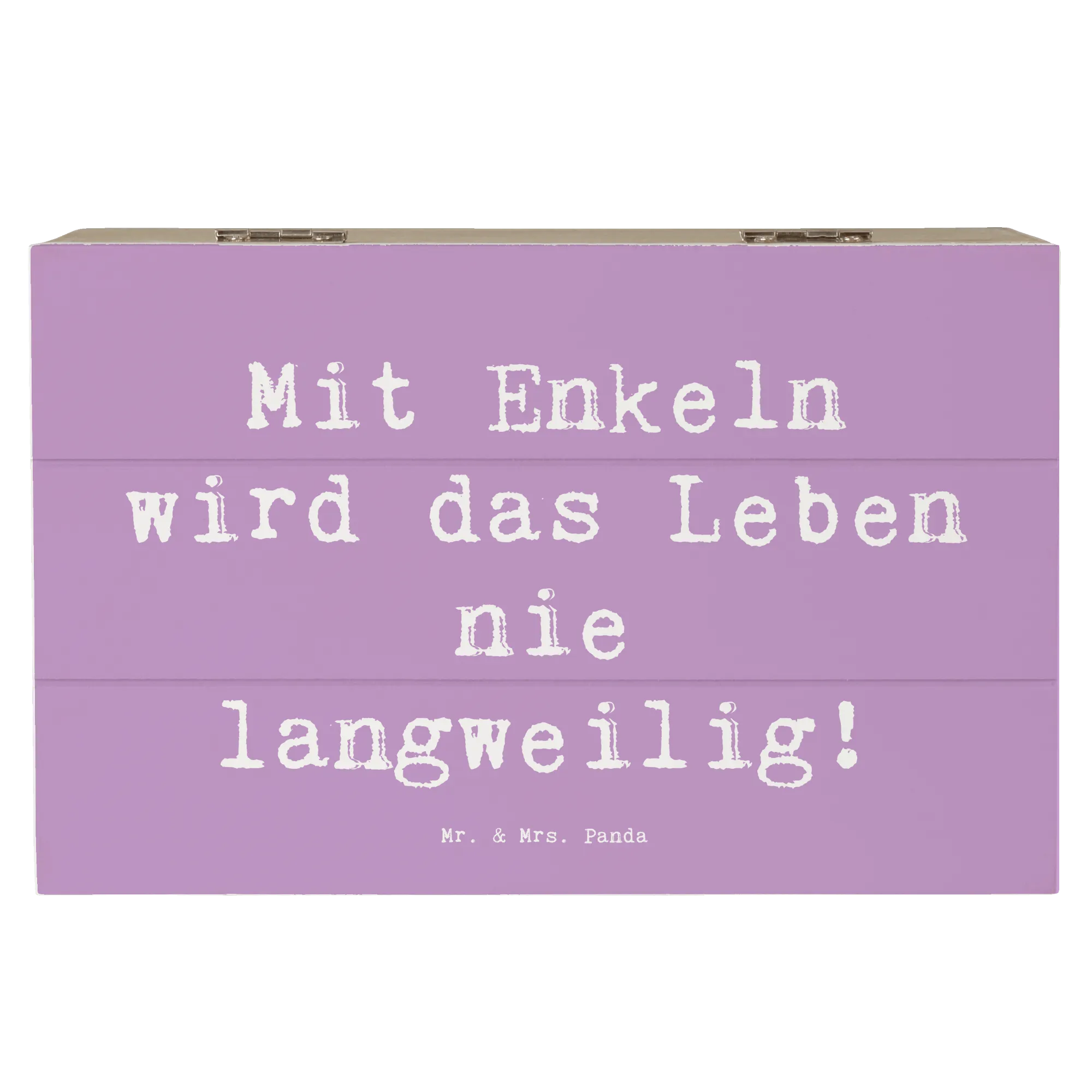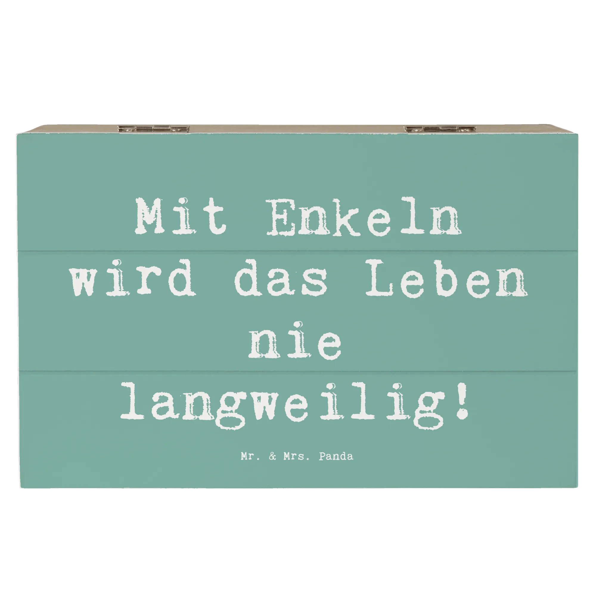 Die wunderschöne Holzkiste von Mr. & Mrs. Panda ist das perfekte Geschenk für alle Großeltern, die die besonderen Momente mit ihren Enkelkindern festhalten möchten. Sie ist nicht nur eine praktische Aufbewahrungsbox, sondern auch eine Erinnerungskiste, die mit Liebe gestaltet wurde. Der coole Spruch "Mit Enkeln wird das Leben nie langweilig!" bringt festliche Freude und macht diese Kiste zum idealen Ort, um all die wertvollen Schätze und Erinnerungen zu sammeln, die das Familienleben so bereichern.