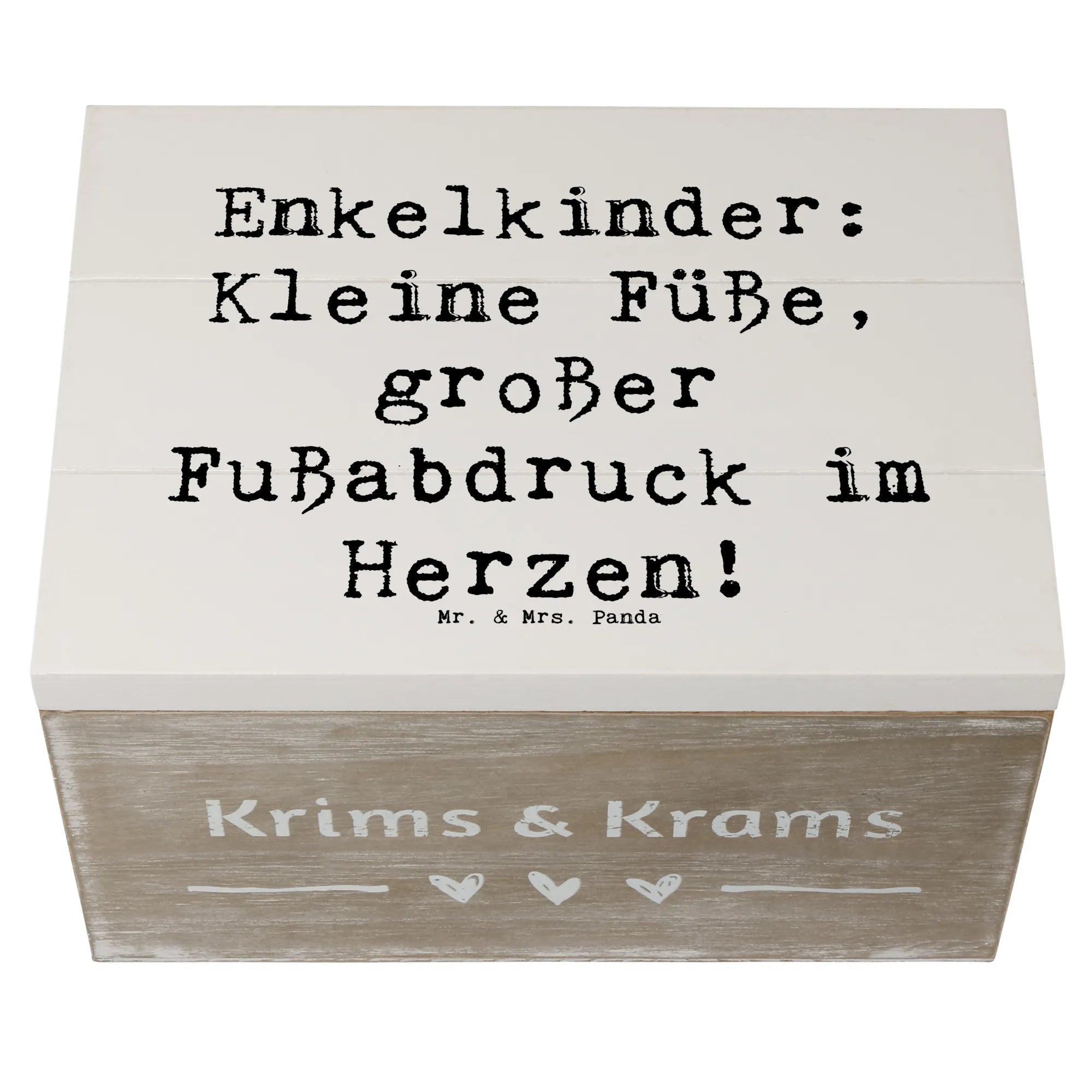 Die wunderschöne Holzkiste von Mr. & Mrs. Panda, bedruckt mit dem liebevollen Spruch 'Enkelkinder: Kleine Füße, großer Fußabdruck im Herzen!', ist das perfekte Geschenk für alle Großeltern. Mit den Maßen 180 mm x 250 mm x 150 mm bietet diese stabile Schatulle ausreichend Platz für all die kostbaren Erinnerungen an die Enkelkinder. Ob Fotos, kleine Spielzeuge oder besondere Geschenke – diese Erinnerungskiste ist der ideale Aufbewahrungsort für all die Schätze, die das Herz erwärmen.