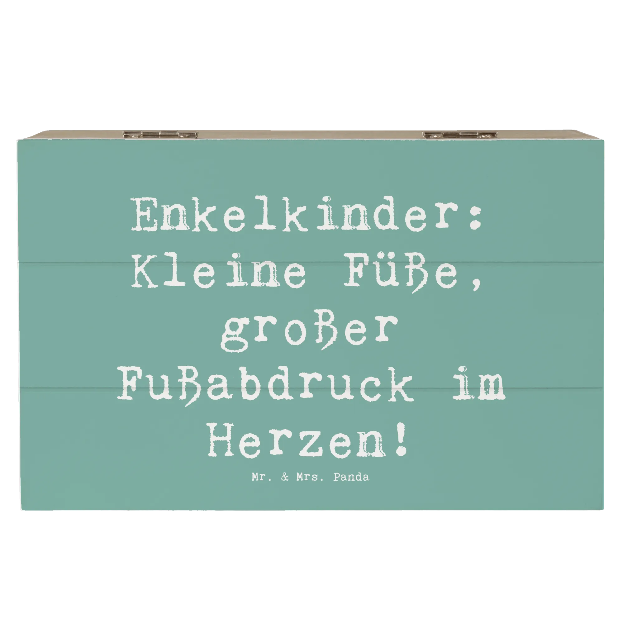Die Holzschatulle von Mr. & Mrs. Panda ist das perfekte Geschenk für Großeltern, die die besonderen Momente mit ihren Enkelkindern bewahren möchten. Mit dem liebevollen Spruch 'Enkelkinder: Kleine Füße, großer Fußabdruck im Herzen!' wird diese Holzkiste zu einer treuen Begleiterin in jedem Haushalt. Sie bietet Platz für kleine Schätze, Erinnerungen und herzliche Botschaften, die über Generationen hinweg weitergegeben werden können.