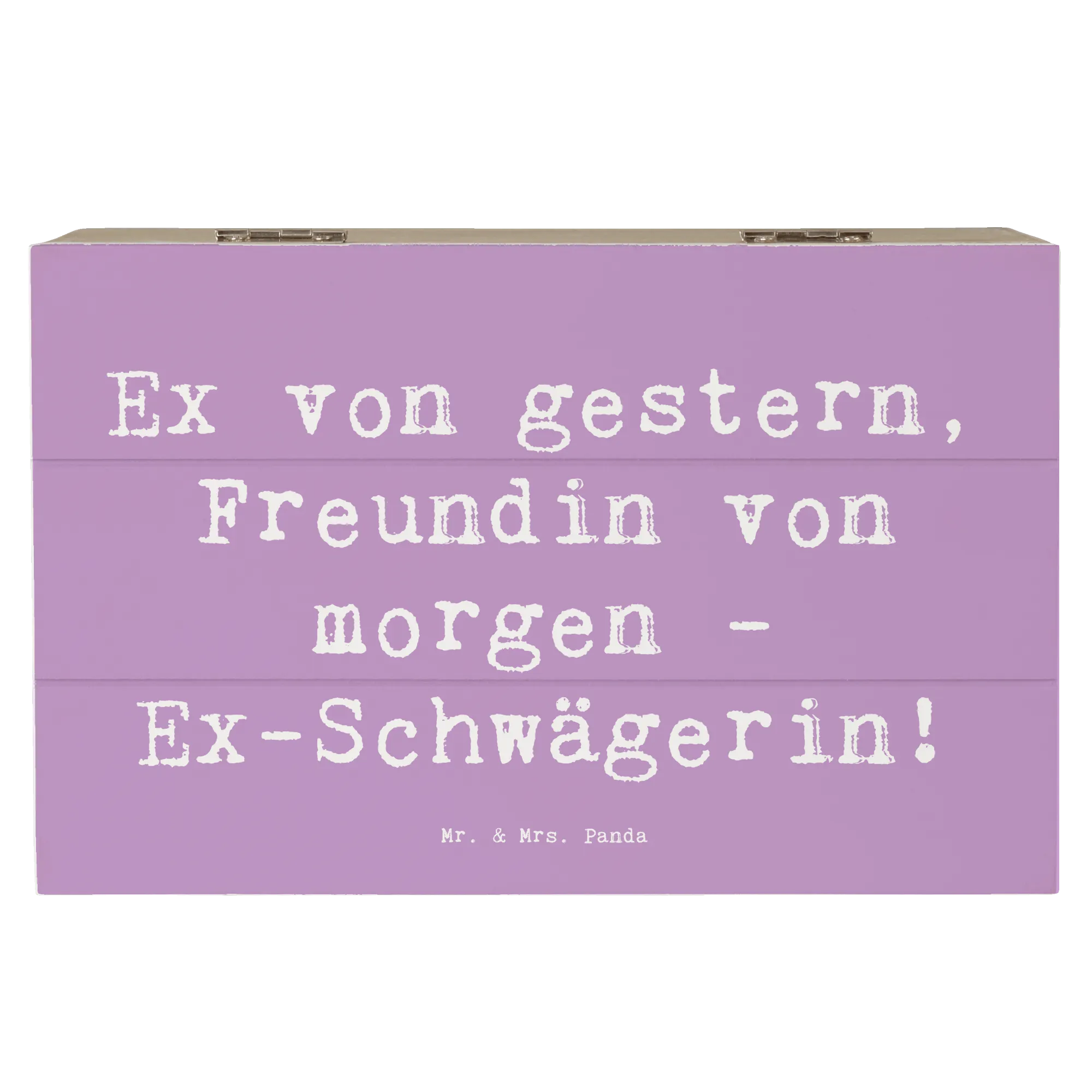 Die Beziehung zu einer Ex-Schwägerin kann manchmal kompliziert, oft aber auch sehr wertvoll sein. Diese Holzkiste, bedruckt mit dem Slogan "Ex von gestern, Freundin von morgen - Ex-Schwägerin!", schafft eine liebevolle Verbindung und würdigt die Rolle, die sie in eurer Familiendynamik spielt. Sie ist ideal, um Erinnerungen an gemeinsame Familienfeiern, Fotos oder kleine Geschenke zu bewahren – eine wunderschöne Erinnerungskiste, die inspirierende Momente einfängt.