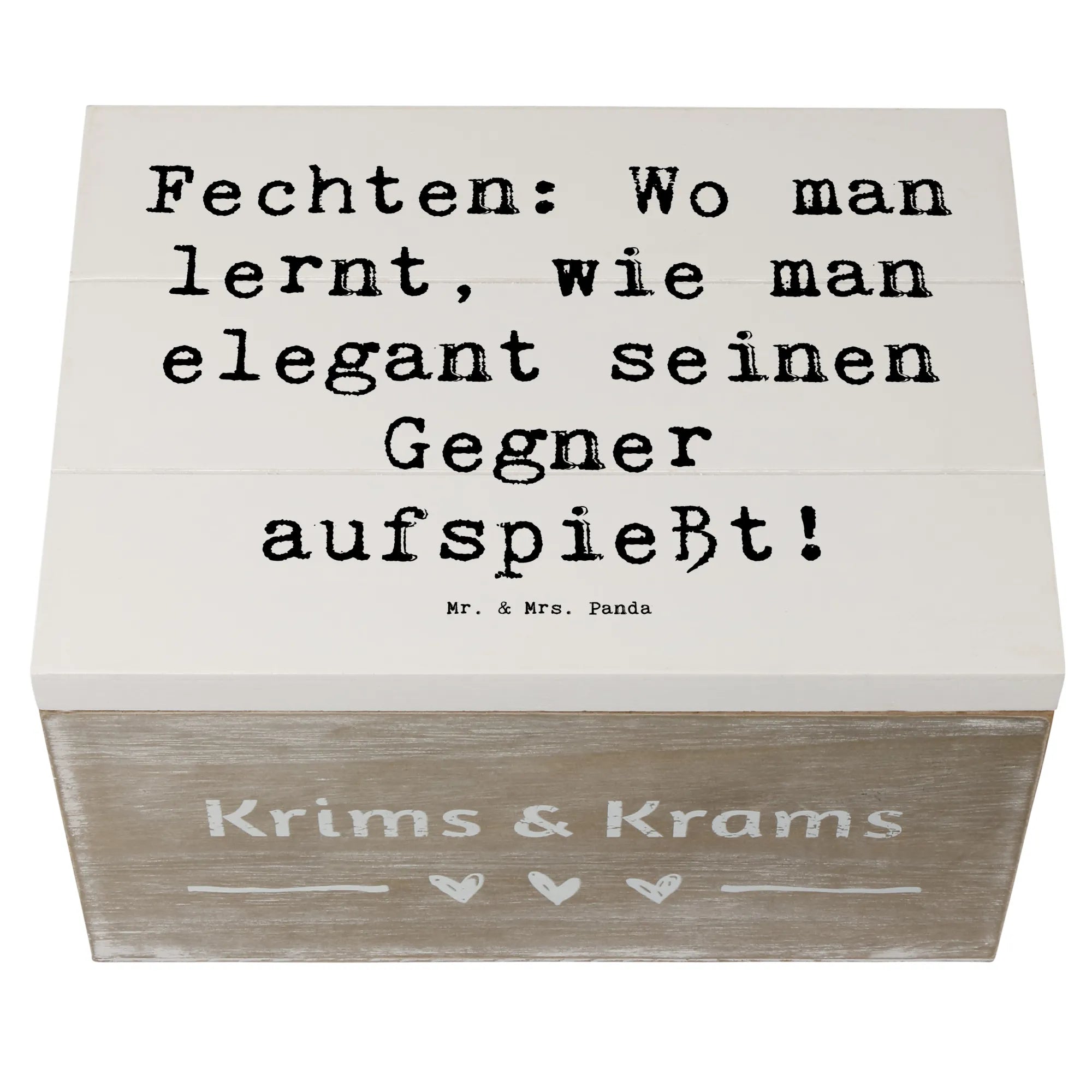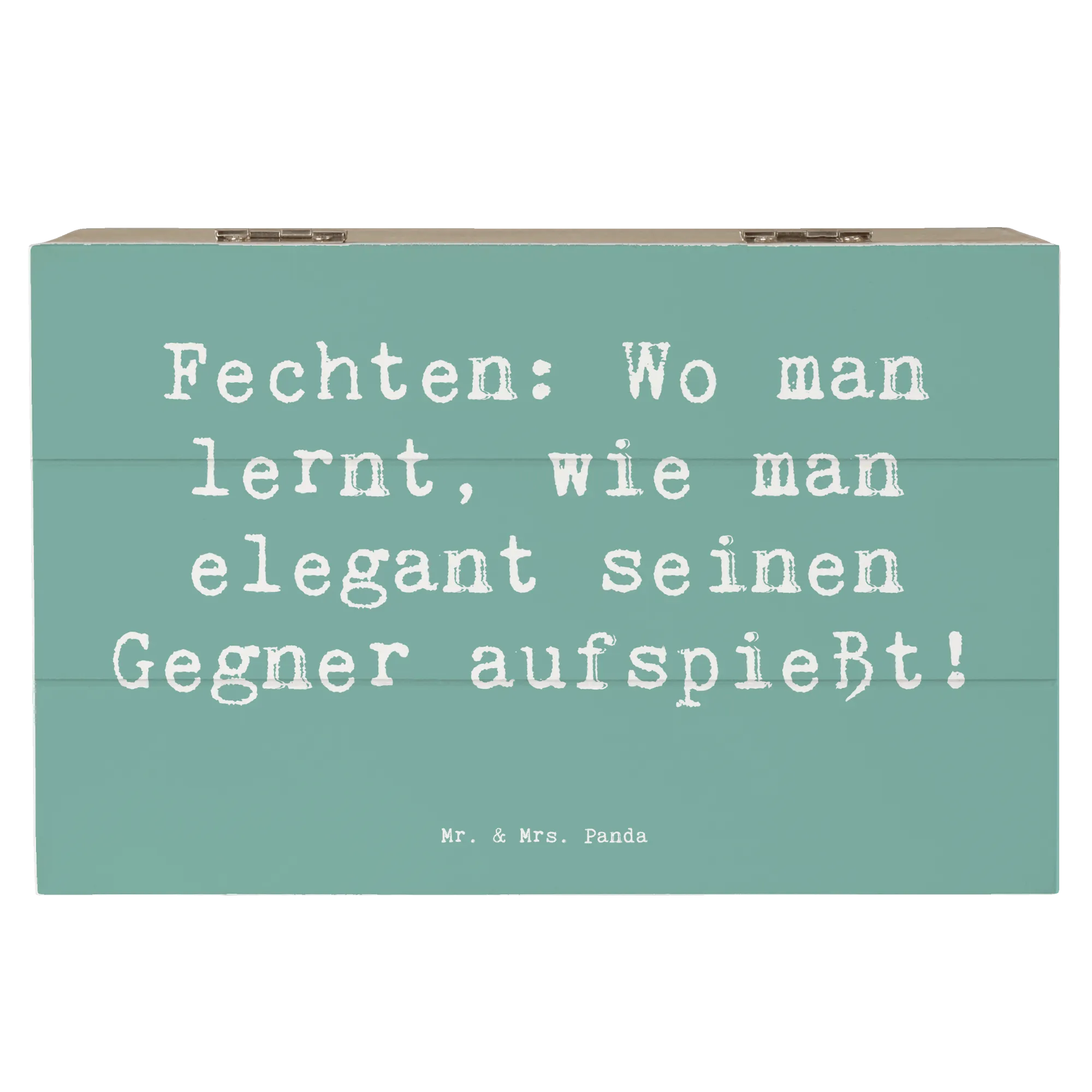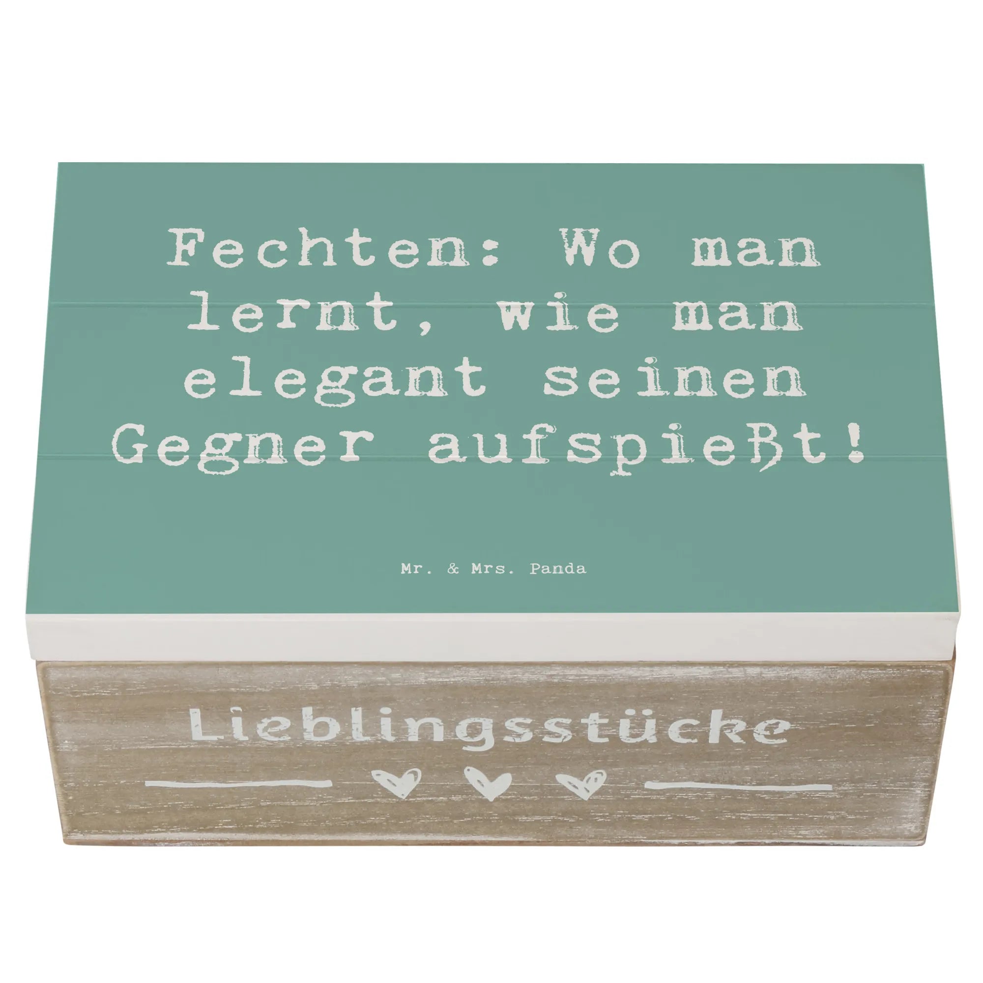 Mit ihrem ansprechenden Design und dem liebevoll gestalteten Spruch "Fechten: Wo man lernt, wie man elegant seinen Gegner aufspießt!" zieht sie alle Blicke auf sich. Diese Erinnerungskiste ist nicht nur ein echter Hingucker, sondern auch äußerst praktisch.