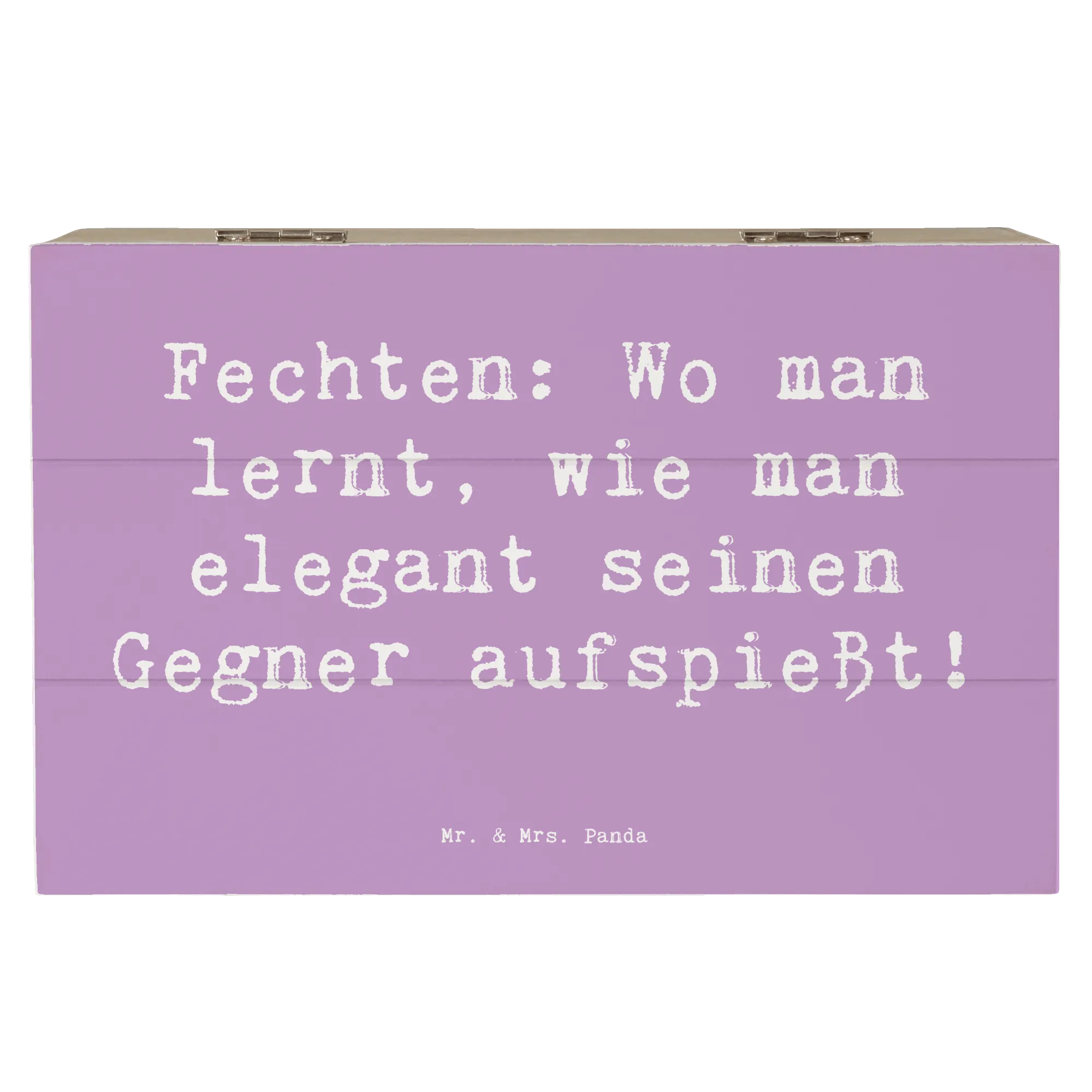 Eine wunderschöne Holzkiste von Mr. & Mrs. Panda – bedruckt mit dem frechen Spruch „Fechten: Wo man lernt, wie man elegant seinen Gegner aufspießt!“ aus unserer liebevollen Sportarten-Kollektion. Diese Holzkiste ist das ideale Geschenk für Fechter, Trainer und alle Sportbegeisterten, die Humor und Leidenschaft verbinden möchten.