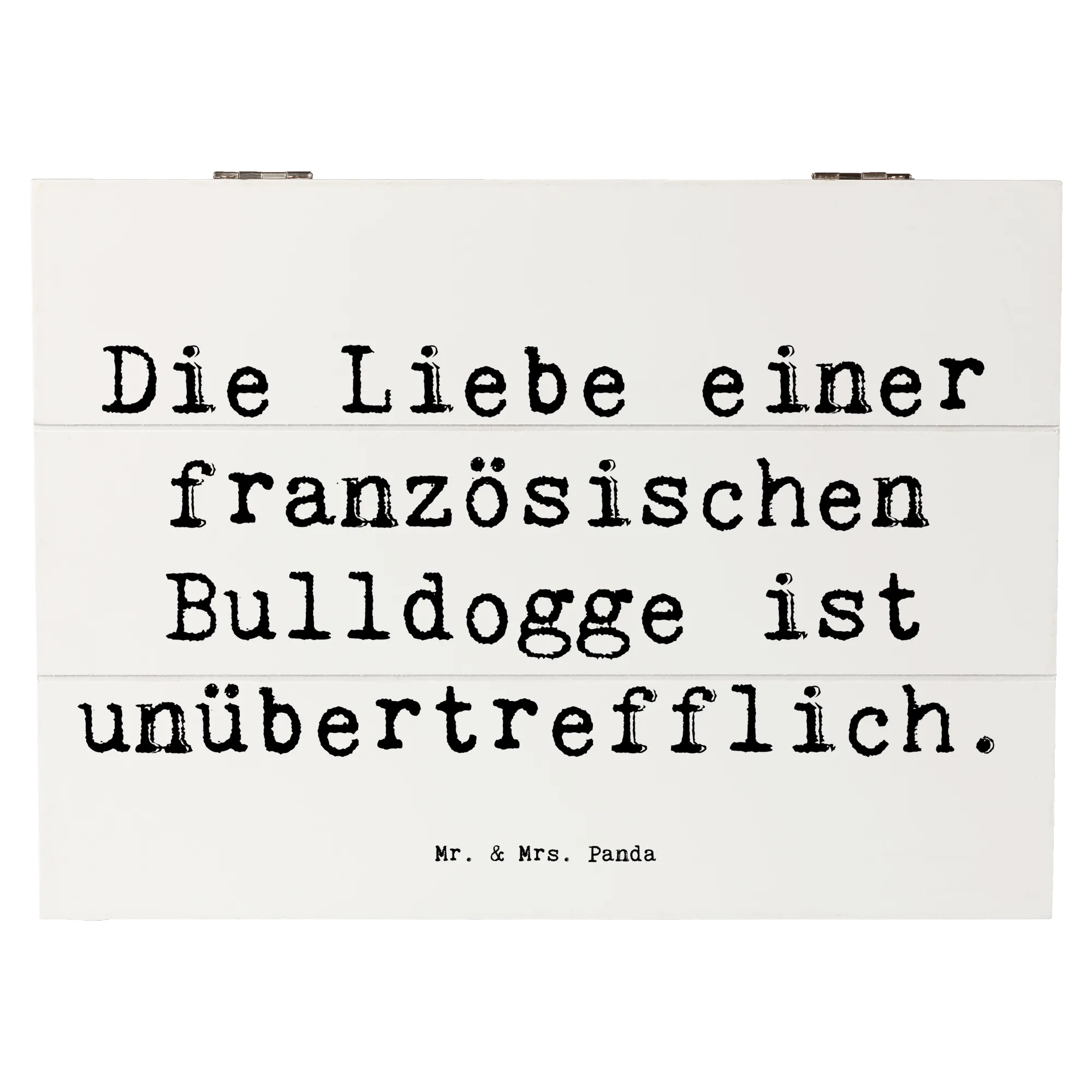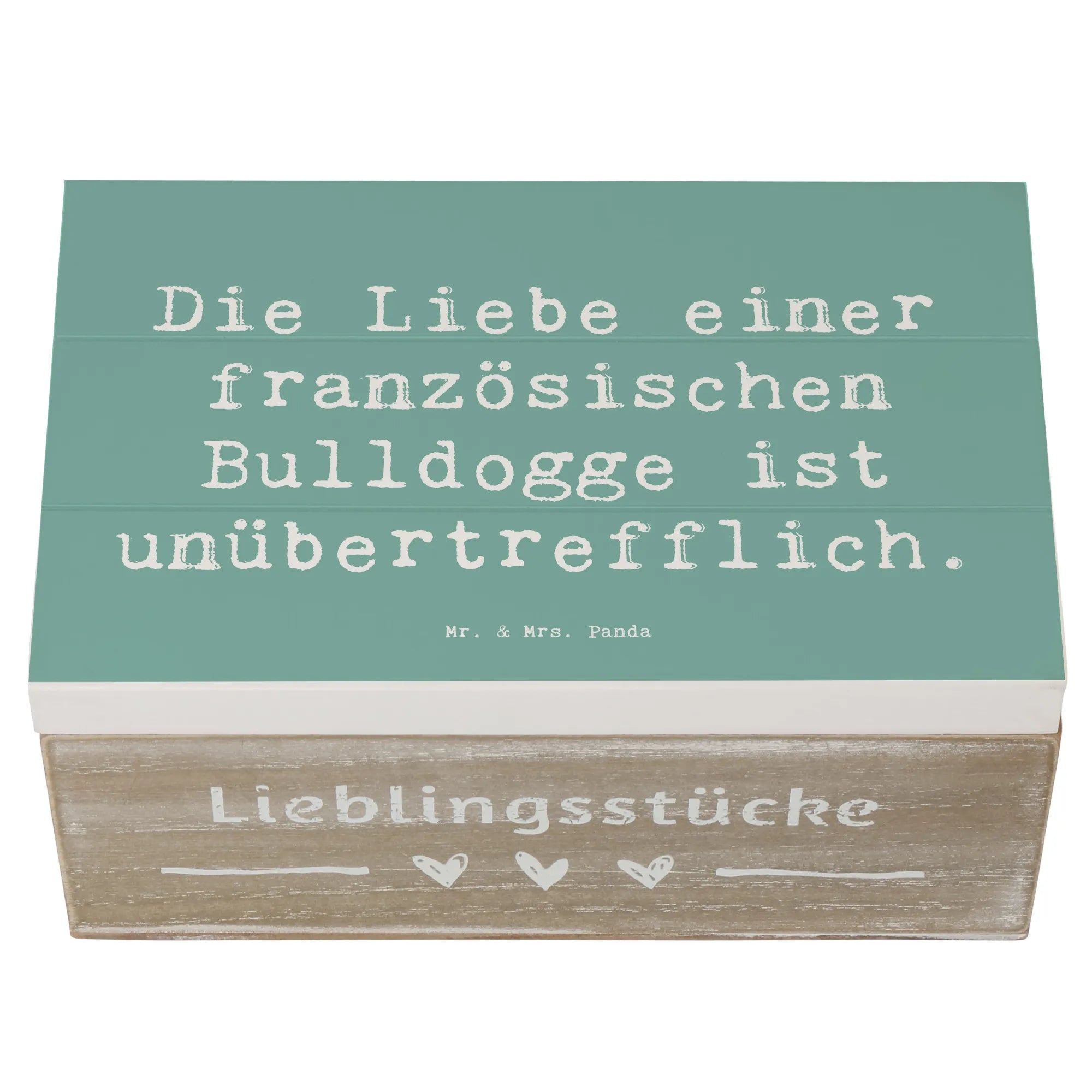 Der liebevolle Spruch "Die Liebe einer französischen Bulldogge ist unübertrefflich" bringt ein Lächeln auf jedes Gesicht und macht diese Kiste zu einem ganz besonderen Geschenk für Hundefans.