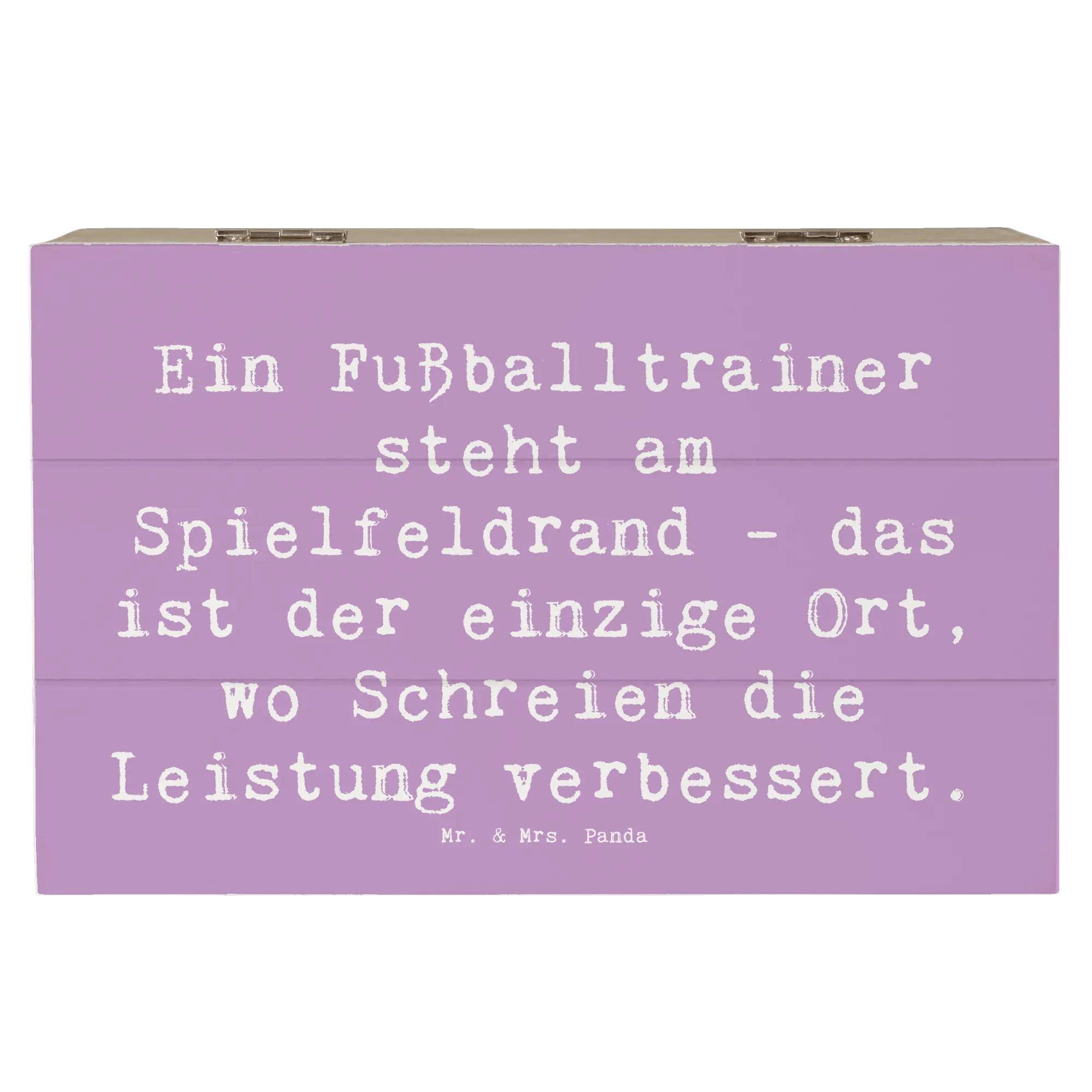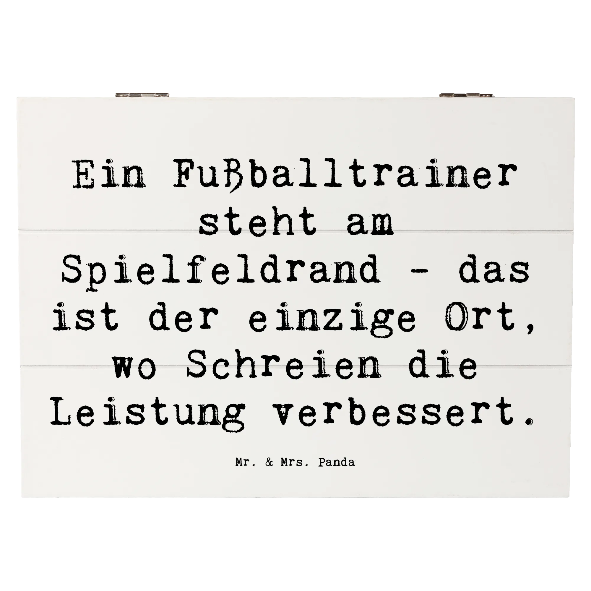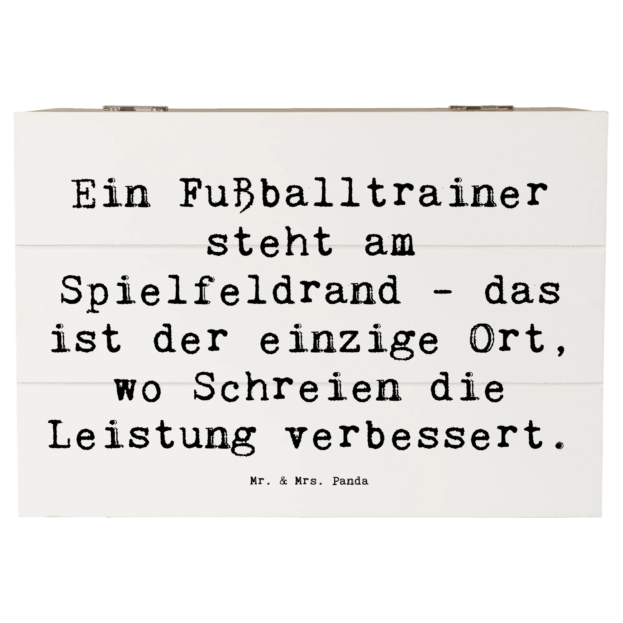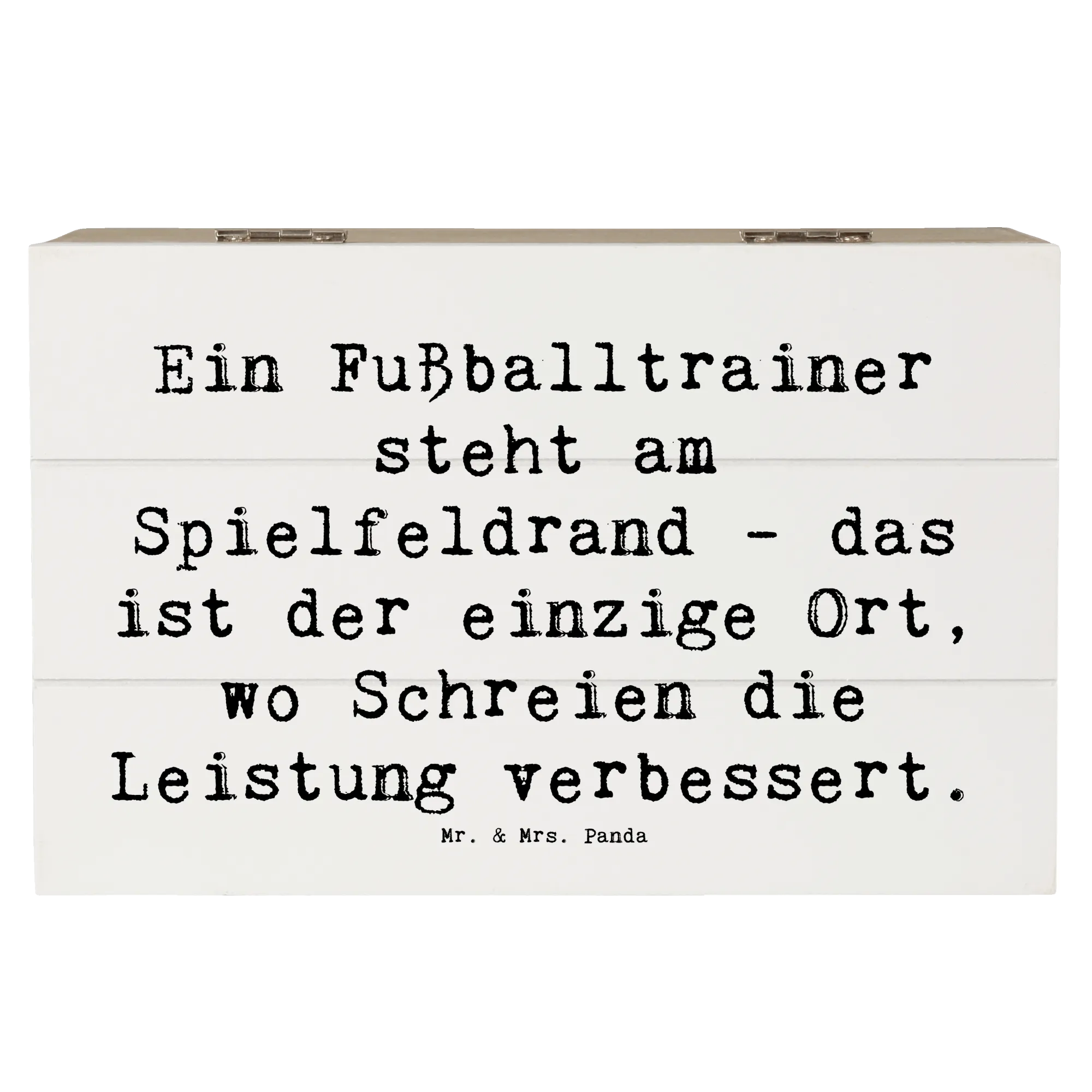 Entdecke die niedliche Holzkiste von Mr. & Mrs. Panda, die für jeden Fußballtrainer ein perfektes Accessoire ist! Mit dem liebevollen Spruch 'Ein Fußballtrainer steht am Spielfeldrand - das ist der einzige Ort, wo Schreien die Leistung verbessert.' ist diese Kiste nicht nur ein praktisches Aufbewahrungsobjekt, sondern auch eine wunderbare Möglichkeit, Erinnerungen zu bewahren.