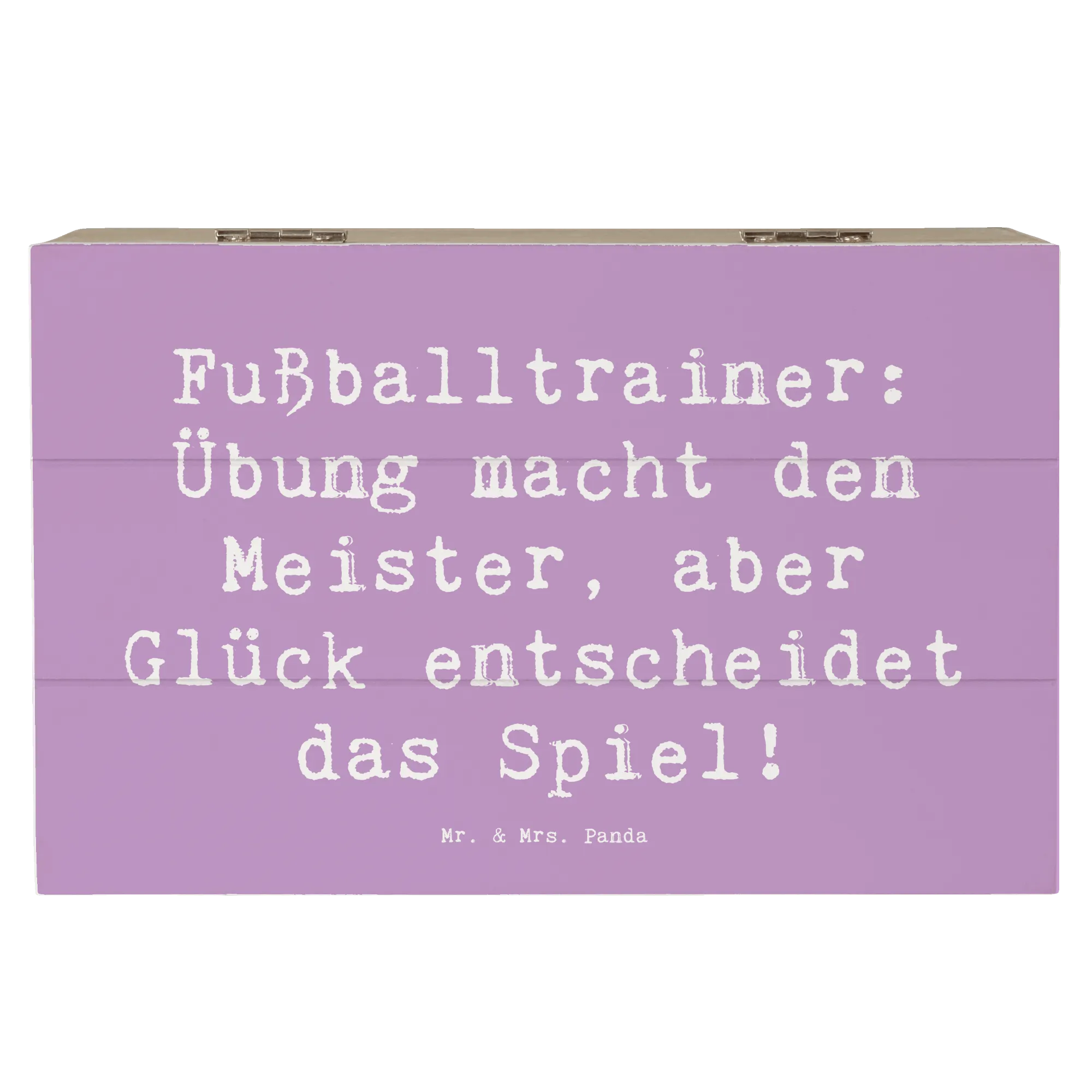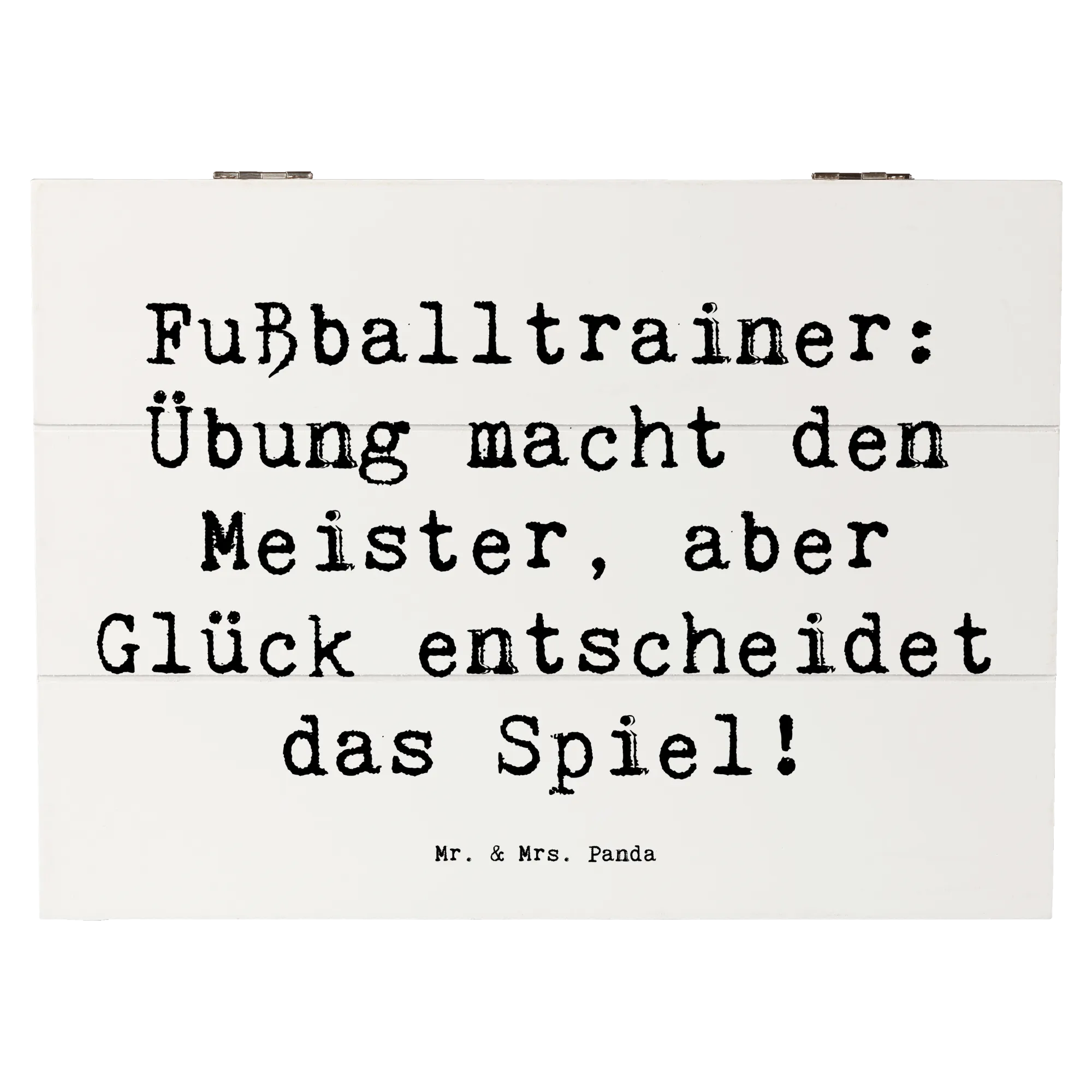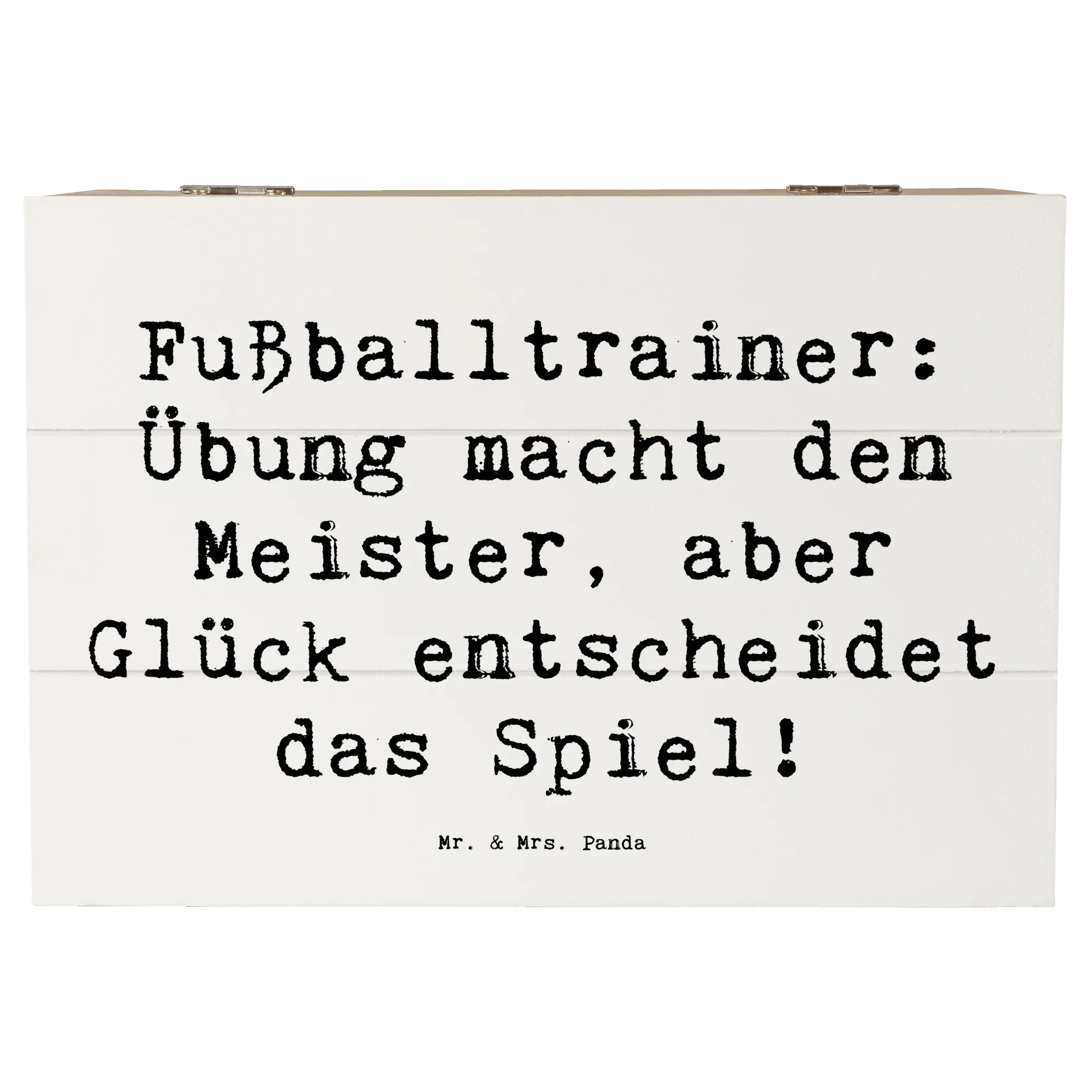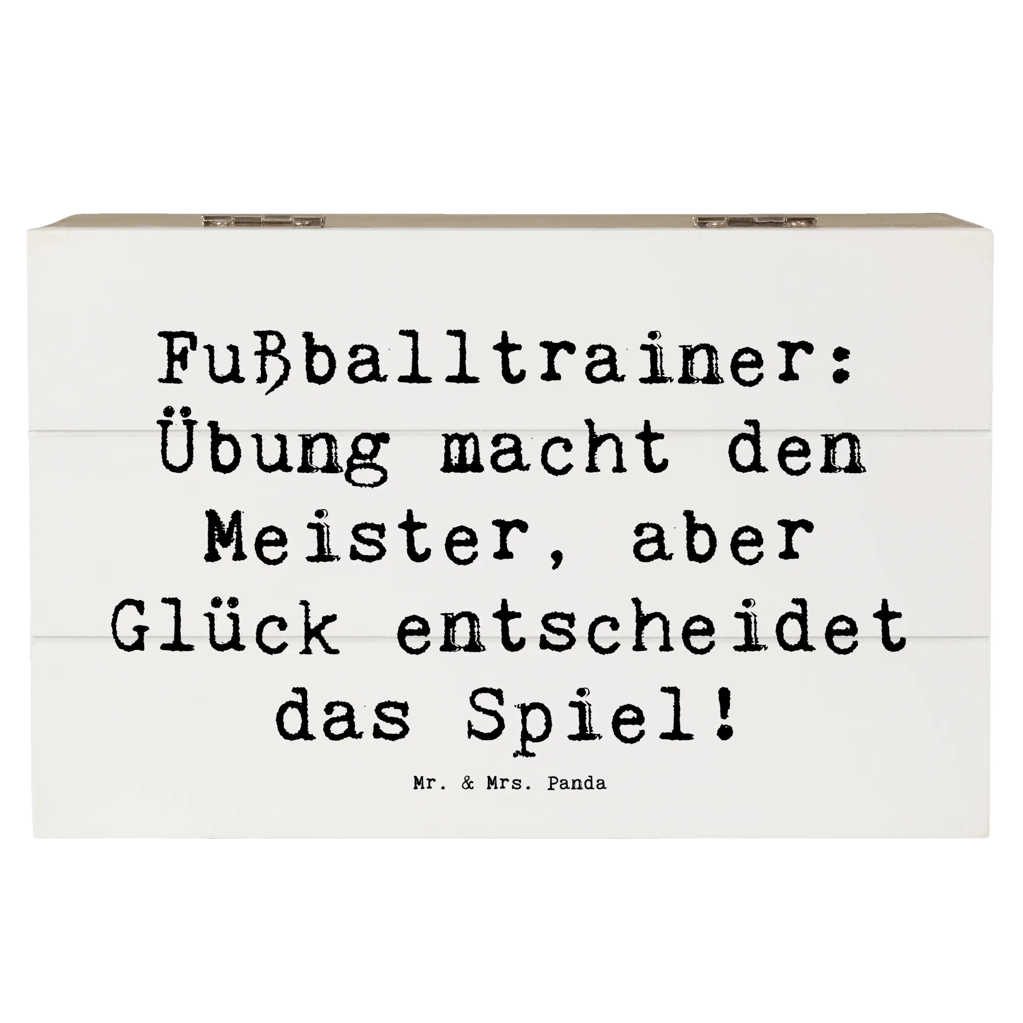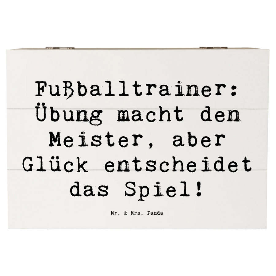 Die Holzkiste "Fußballtrainer" von Mr. & Mrs. Panda ist das perfekte Geschenk für jeden Fußballbegeisterten und Trainer. 😊 Mit dem motivierenden Spruch "Übung macht den Meister, aber Glück entscheidet das Spiel!" bietet diese Kiste nicht nur eine süße Botschaft, sondern auch einen praktischen Stauraum für Erinnerungen und persönliche Schätze.